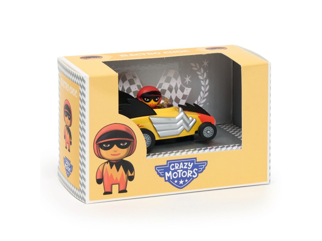 Crazy motors Electro Choc Elektronická iskra na kolesách: Electro Choc pre rýchle mestské misieCrazy Motors Electro Choc je zberateľské kovové autíčko z kolekcie Crazy Motors, ktoré má vlastného šoféra a originálny „charakter“. Vyzerá ako technologický pretekár – pripravený na rýchle mestské úniky.Vďaka gumovým pneumatikám a odpruženiu jazdí hladko a príjemne sa drží v ruke.Rýchly prehľad odporúčaný vek: od 3 rokov materiál: kovové autíčko + plastové detaily mierka: 1:43 rozvíja: fantáziu, jemnú motoriku, rozprávanie príbehov v balení: 1 autíčko s pevne uchytenou figúrkou vodiča rozmery autíčka: 4,7 × 7,4 × 3,7 cm rozmery balenia: 12 × 8 × 6 cmPrečo si ho deti zamilujú každý model má vlastný štýl – ideálne na zbieranie aj kombinovanie kovové prevedenie pôsobí pevne a vydrží aj živšie hranie autíčko sa dobre kotúľa a „pruží“ – deti baví skúšať rýchlosť aj manévre ideálne do „sci‑fi“ hier: polícia, laboratórium, tajné misieObsah balenia 1× kovové autíčko s plastovými detailmi 1× figúrka vodiča (pevne uchytená v aute)Technické parametre kolieska: gumové pneumatiky jazda: odpruženie (pruženie) mierka: 1:43 rozmery autíčka: 4,7 × 7,4 × 3,7 cm rozmery balenia: 12 × 8 × 6 cmDodatočné parametre