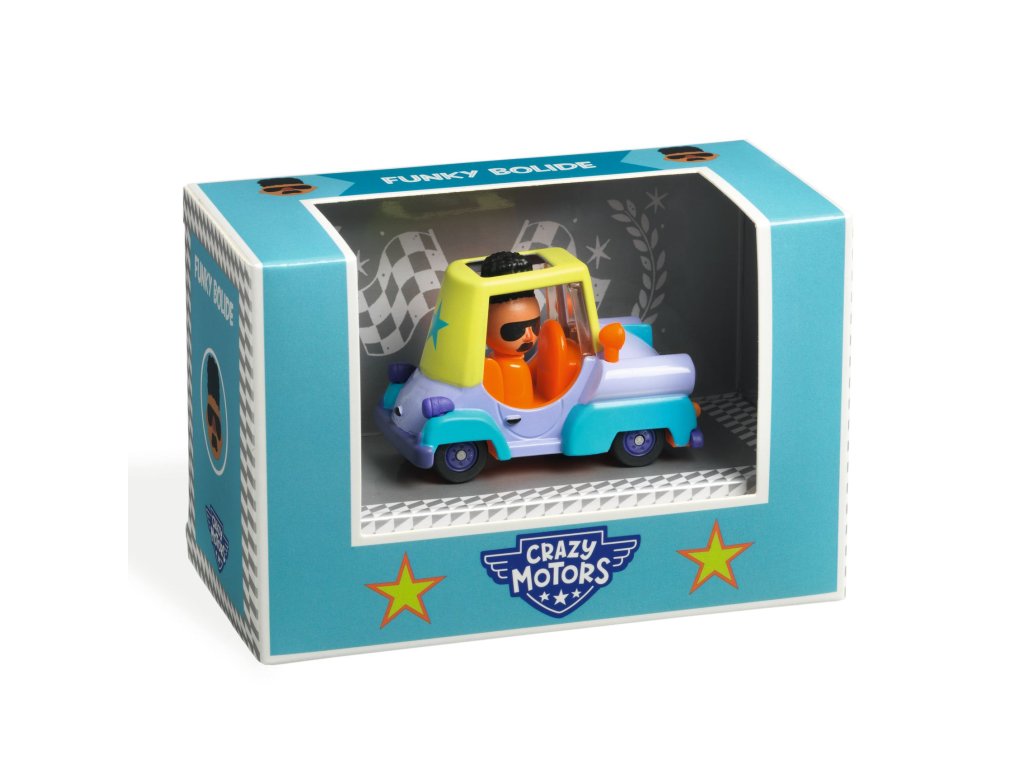 Crazy Motors Funky Bolide Funky nálada na dráhe: autíčko, ktoré prináša rytmus do pretekovCrazy Motors Funky Bolide je zberateľské kovové autíčko z kolekcie Crazy Motors, ktoré má vlastného šoféra a originálny „charakter“. Funky štýl je cítiť na prvý pohľad – autíčko pôsobí, akoby do pretekov prinieslo hudbu a dobrú náladu.Deti na ňom milujú „cool“ vzhľad a to, že v hre vie byť vtipným hrdinom aj rýchlym pretekárom. Vďaka gumovým pneumatikám a odpruženiu jazdí hladko a príjemne sa drží v ruke.Rýchly prehľad odporúčaný vek: od 3 rokov materiál: kovové autíčko + plastové detaily mierka: 1:43 rozvíja: fantáziu, jemnú motoriku, rozprávanie príbehov v balení: 1 autíčko s pevne uchytenou figúrkou vodiča rozmery autíčka: 6 × 4,2 × 3,9 cm rozmery balenia: 12 × 8 × 6 cmPrečo si ho deti zamilujú každý model má vlastný štýl – ideálne na zbieranie aj kombinovanie kovové prevedenie pôsobí pevne a vydrží aj živšie hranie autíčko sa dobre kotúľa a „pruží“ – deti baví skúšať rýchlosť aj manévre výrazná „funky“ osobnosť – super ako darček aj ako doplnok zbierkyObsah balenia 1× kovové autíčko s plastovými detailmi 1× figúrka vodiča (pevne uchytená v aute)Technické parametre kolieska: gumové pneumatiky jazda: odpruženie (pruženie) mierka: 1:43 rozmery autíčka: 6 × 4,2 × 3,9 cm rozmery balenia: 12 × 8 × 6 cmDodatočné parametre