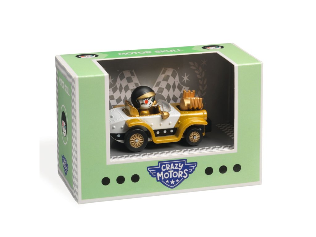 Crazy Motors - Motor Skull Mestské autíčko s figúrkou Moto Lebka je napoly kostlivec a napoly človek. Jeho poznávacím znakom je skenovacie oko, ktorým premeriava okolie. Vidí každú prekážku a prekvapenie je pre neho cudzie slovo. Figúrka sa nedá vybrať z auta, dá sa jej otáčať hlavou, aby mala ostatných pod dohľadom. Konštrukcia auta je kovová, odolná proti nárazom. S pôsobivými aj bláznivými líniami karosérie sa prelínajú nápadné detaily z plastu. Šialený dizajn dotvára metalíza. Podvozok má mäkké perovanie na hladkú jazdu a hojdavý efekt a gumené pneumatiky na úžasné manévre.Crazy Motors - Uletené autíčka je kolekcia s plnými obrátkami pre všetkých milovníkov originálnych autíčok a pretekov. Obsahuje pretekárske delá aj mestské vozidlá a doplnky, ktoré vám umožnia úplne sa ponoriť do tejto nenormálnej kolekcie. Vznikla z myšlienky vytvoriť pretekárov a vodičov a následne jedinečné autá, ktoré sú výrazom ich výstrednej osobnosti. Tieto zberateľské kúsky zaručene potešia! Balené v lepenkovej škatuľke s okienkom z priehľadnej fólie.Obsah: 1 autíčko + 1 figúrka (prilepená).Rozmery: 7 x 4 x 3,7 cm.Dodatočné parametre