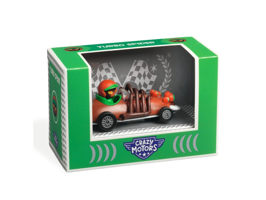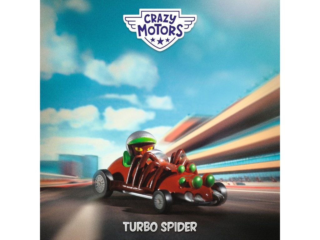Crazy Motors Turbo Spider Pavúčia rýchlosť: Turbo Spider a jeho odvážne detaily pre malých pretekárovCrazy Motors Turbo Spider je zberateľské kovové autíčko z kolekcie Crazy Motors, ktoré má vlastného šoféra a originálny „charakter“. Pavúčia inšpirácia je vidieť na farbách aj detailoch – trochu „príšerka“, trochu pretekár.Skvelé pre deti, ktoré majú rady autá s charakterom a neboja sa odvážnejších motívov. Vďaka gumovým pneumatikám a odpruženiu jazdí hladko a príjemne sa drží v ruke.Rýchly prehľad odporúčaný vek: od 3 rokov materiál: kovové autíčko + plastové detaily mierka: 1:43 rozvíja: fantáziu, jemnú motoriku, rozprávanie príbehov v balení: 1 autíčko s pevne uchytenou figúrkou vodiča rozmery autíčka: 5 × 8,2 × 3,7 cm rozmery balenia: 12 × 8 × 6 cmPrečo si ho deti zamilujú každý model má vlastný štýl – ideálne na zbieranie aj kombinovanie kovové prevedenie pôsobí pevne a vydrží aj živšie hranie autíčko sa dobre kotúľa a „pruží“ – deti baví skúšať rýchlosť aj manévre „pavúčie“ detaily robia z každej jazdy malú dobrodružnú výpravuObsah balenia 1× kovové autíčko s plastovými detailmi 1× figúrka vodiča (pevne uchytená v aute)Technické parametre kolieska: gumové pneumatiky jazda: odpruženie (pruženie) mierka: 1:43 rozmery autíčka: 5 × 8,2 × 3,7 cm rozmery balenia: 12 × 8 × 6 cmDodatočné parametre