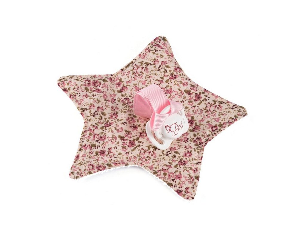 Pýtate sa, ako vybrať doplnky, ktoré zatraktívnia hru s bábikami? Cumlík pre bábiku z jedinečnej kolekcie Martina Asia 3712006 je ideálny na uspávanie vášho milovaného bábätka s výškou od 36 do 46 cm . Je pripevnený svetloružovou stuhou na jemnú, bavlnenú látku v tvare pôvabnej hviezdičky. Vrchnú časť zdobí farebná lúka, spodná časť je z bieleho na dotyk príjemného froté.