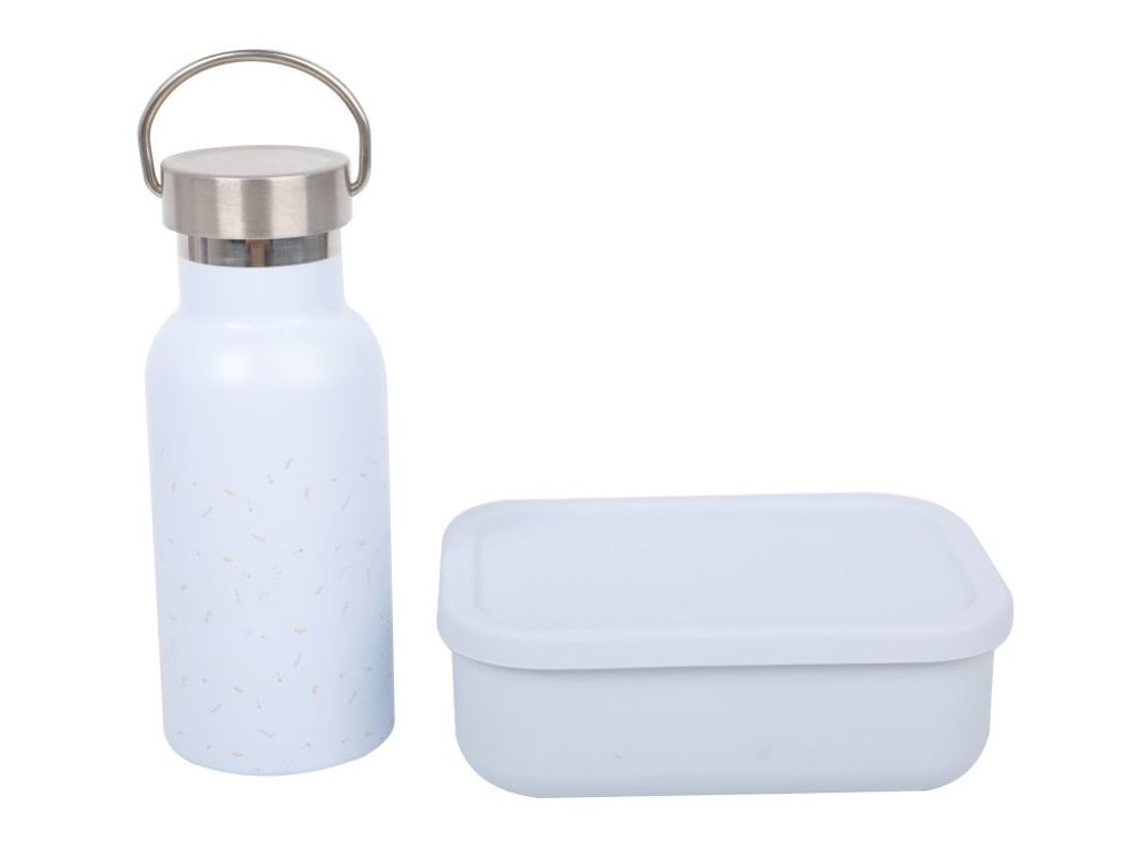 Značka eliNeli prináša do detského sveta moderný dizajn v spojení s moderným európskym štýlom inšpirovaným nemeckou kvalitou a dizajnom. Prioritou pri výrobe sú prírodné materiály, prírodné drevo, čím podporuje udržateľnosť a bezpečnosť hračiek. Nové výrobky prechádzajú prísnymi bezpečnostnými testami TÜV Rheinland, čo zaisťuje bezpečnú hru deťom a pokoj rodičom. S eliNeli sa deti učia, tvoria a rastú v bezpečnom a podnetnom prostredí, ktoré nielen spĺňa, ale prekonáva ich očakávania. Desiatový set je nevyhnutným doplnkom pre malých školákov. Desiatový box, vyrobený zo zdravotne nezávadného silikónu, s členeným vnútorným priestorom, vám umožní nachystať deťom pestrú desiatu a obľúbené dobroty bez toho, aby sa vzájomne premiešali. Tesniace veko zabráni prípadným nehodám pri prenášaní desiatového boxu v aktovke alebo batohu. Pretože sa nemôže zabúdať na dodržiavanie správneho pitného režimu, je súčasťou desiatového setu nerezová fľaša s veľkým skrutkovacím uzáverom s pútkom, ktorý uľahčí otváranie, zatváranie, pitie, prenášanie aj čistenie. Vďaka neutrálnej pastelovej modrej farbe a decentnému vzoru sú desiatový box a fľaša vhodné pre dievčatká aj chlapcov. Prečo kúpiť tento desiatový set: Odolný materiál - desiatový set je vyrobený z odolných materiálov, nerezovej ocele a zdravotne nezávadného materiálu. Nerezová fľaša - fľaša so skrutkovacím vekom a praktickým pútkom sa jednoducho otvára, zatvára, prenáša aj umýva. Silikónový box - box s členeným vnútorným priestorom a tesniacim vekom je vyrobený z odolného a zdravotne nezávadného silikónu. Členený vnútorný priestor - 2 menšie a 1 väčšia priehradka vám umožnia pripraviť deťom pestrú desiatu. Neutrálne pastelové farby - desiatový set v pastelovej modrej farbe s decentným vzorom je vhodný pre dievčatká aj chlapcov. Vysoké bezpečnostné štandardy - hračka prešla prísnymi nemeckými bezpečnostnými testami TÜV Rheinland, čo zaručuje maximálnu bezpečnosť pre vaše deti. Technické parametre: Rozmer boxu: 17 x 13 x 6 cm. Rozmer fľaše: 18 x 7 x 7 cm. Objem fľaše: 350 ml. Rozmer balenia: 41,5 x 25,5 x 22 cm. Počet kusov v balení: 2 ks. Materiál: nerezová oceľ, silikón. Certifikáty: CE, 2009/48/ES, TÜV Rheinland. Odporúčaný vek: od 3 rokov, 36m+. Viac o produktoch eliNeli nájdete na: https://www.elineli.eu/sk/.Dodatočné parametre