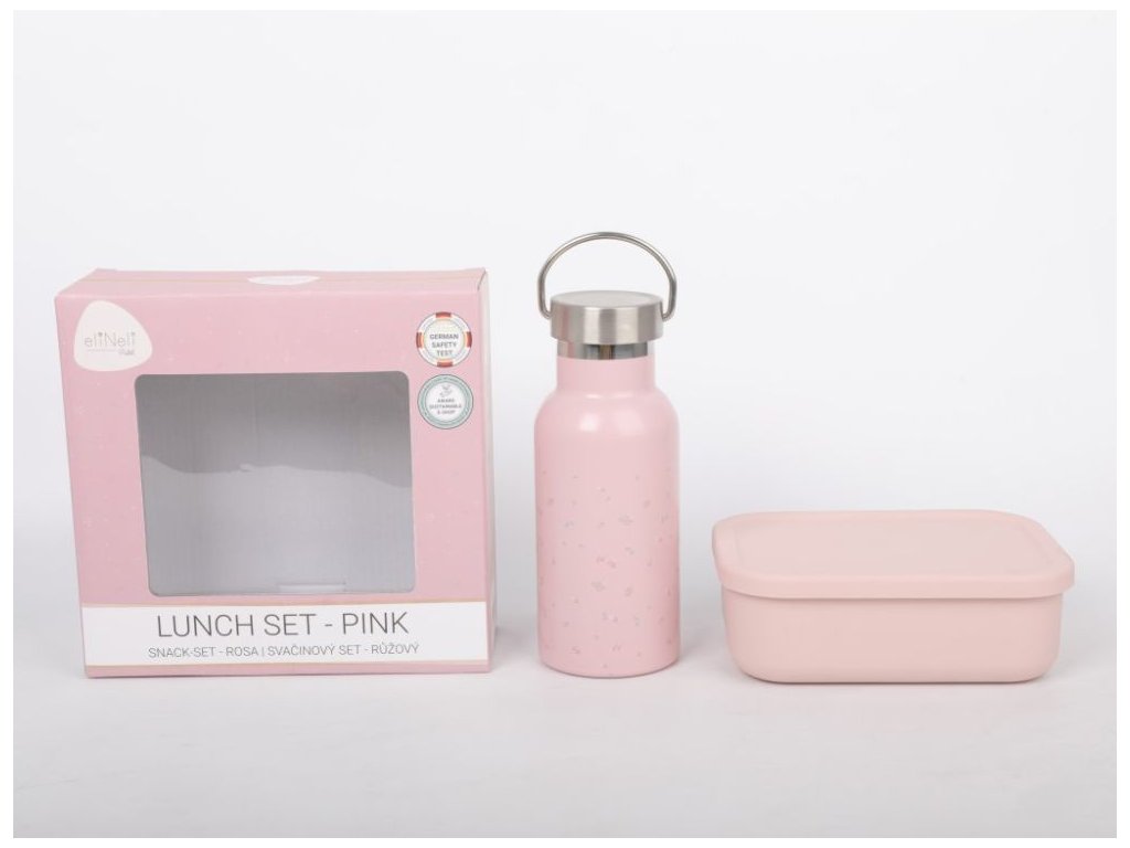 Značka eliNeli prináša do detského sveta moderný dizajn v spojení s moderným európskym štýlom inšpirovaným nemeckou kvalitou a dizajnom. Prioritou pri výrobe sú prírodné materiály, prírodné drevo, čím podporuje udržateľnosť a bezpečnosť hračiek. Nové výrobky prechádzajú prísnymi bezpečnostnými testami TÜV Rheinland, čo zaisťuje bezpečnú hru deťom a pokoj rodičom. S eliNeli sa deti učia, tvoria a rastú v bezpečnom a podnetnom prostredí, ktoré nielen spĺňa, ale prekonáva ich očakávania. Desiatový set je nevyhnutným doplnkom pre malé školáčky. Desiatový box, vyrobený zo zdravotne nezávadného silikónu, s členeným vnútorným priestorom, vám umožní nachystať vášmu dievčatku pestrú desiatu a obľúbené dobroty bez toho, aby sa vzájomne premiešali. Tesniace veko zabráni prípadným nehodám pri prenášaní desiatového boxu v aktovke alebo batohu. Pretože sa nemôže zabúdať na dodržiavanie správneho pitného režimu, je súčasťou desiatového setu nerezová fľaša s veľkým skrutkovacím uzáverom s pútkom, ktorý uľahčí otváranie, zatváranie, pitie, prenášanie aj čistenie. Vďaka pastelovej ružovej farbe a decentnému vzoru sú desiatový box a fľaša vhodné pre dievčatká. Prečo kúpiť tento desiatový set: Odolný materiál - desiatový set je vyrobený z odolných materiálov, nerezovej ocele a zdravotne nezávadného materiálu. Nerezová fľaša - fľaša so skrutkovacím vekom a praktickým pútkom sa jednoducho otvára, zatvára, prenáša aj umýva. Silikónový box - box s členeným vnútorným priestorom a tesniacim vekom je vyrobený z odolného a zdravotne nezávadného silikónu. Členený vnútorný priestor - 2 menšie a 1 väčšia priehradka vám umožnia pripraviť deťom pestrú desiatu. Pre dievčatá - desiatový set v pastelovej ružovej farbe s decentným vzorom je vhodný pre dievčatká. Vysoké bezpečnostné štandardy - hračka prešla prísnymi nemeckými bezpečnostnými testami TÜV Rheinland, čo zaručuje maximálnu bezpečnosť pre vaše deti. Technické parametre: Rozmer boxu: 17 x 13 x 6 cm. Rozmer fľaše: 18 x 7 x 7 cm. Objem fľaše: 350 ml. Rozmer balenia: 41,5 x 25,5 x 22 cm. Počet kusov v balení: 2 ks. Materiál: nerezová oceľ, silikón. Certifikáty: CE, 2009/48/ES, TÜV Rheinland. Odporúčaný vek: od 3 rokov, 36m+. Viac o produktoch eliNeli nájdete na: https://www.elineli.eu/sk/.Dodatočné parametre