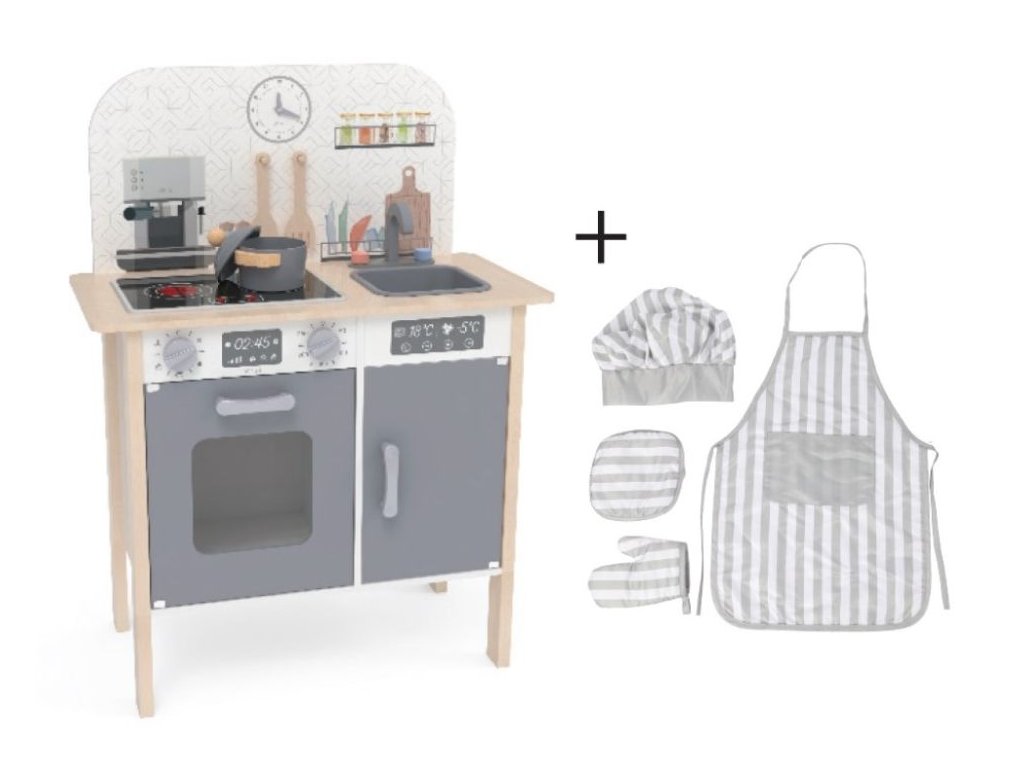 Detská drevená kuchynka Classic s rozšíreným príslušenstvom + textilný set ZADARMO