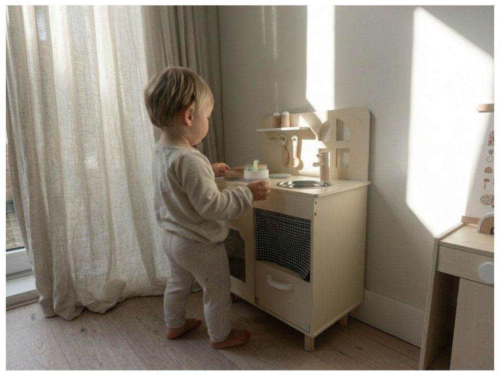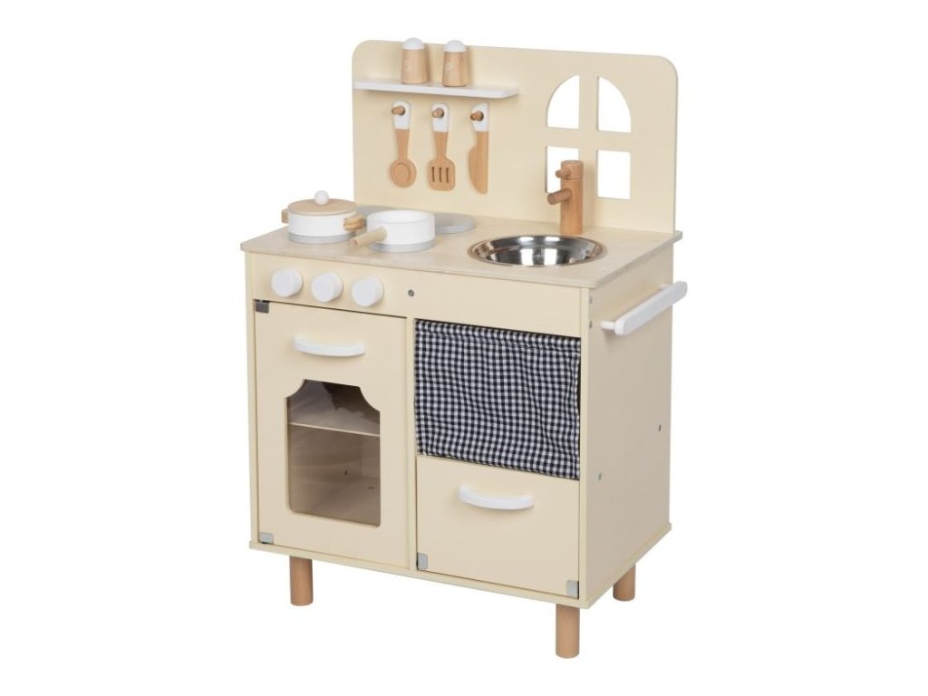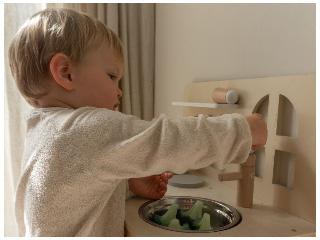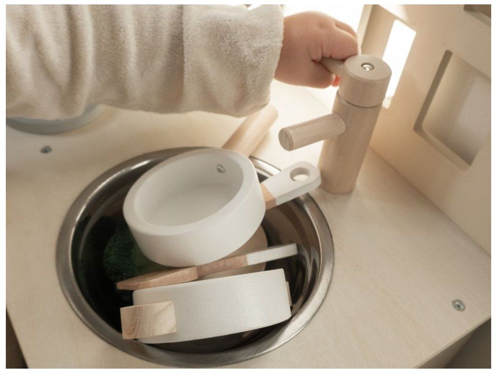 eliNeli je česká značka drevených hračiek a nábytku s jedinečným farebným designom a so zahraničnou výrobou. Produkty eliNeli rozvíjajú kreativitu a pohybový potenciál detí, skvele zapadnú do interiéru a vracajú sa k tradičnému materiálu — k drevu. Unikátna na značke je dizajnová kombinácia prírodných a neskorých letných až jesenných farieb, ktoré sa hodia do minimalistického scandi interiéru, a ktoré inde nenájdete. To všetko za veľmi dostupné ceny. Detská kuchynka drevená je edukatívnou hračkou, ktorá umožní deťom vyskúšať si dospelácke činnosti - varenie, pečenie, umývanie riadu, prípravu pokrmov, bezpečným detským spôsobom. V tejto kuchynke sa deti rýchlo vžijú do role majstra kuchára, budú piecť a variť zo všetkých surovín, čo vo vašej domácnosti nájdu. Nechajte sa prekvapiť originálnymi kombináciami a pokrmami, ktoré vaše dieťatko vymyslí. Súčasťou kuchynky sú základné spotrebiče - rúra na pečenie a sporák s 2 platničkami, nechýba ani drez na riad, úložné priestory, polička, závesná tyč na bočnej strane kuchynky. Kuchynka je vybavená dreveným riadom - hrncom s pokrievkou, panvičkou, koreničkami, vareškou, obracačkou a nožom. Detská kuchynka je originálna svojim dizajnom, okienkom nad drezom. Pri hre v detskej kuchynke deti zdokonaľujú motorické schopnosti, koordináciu očí a rúk, manuálnu zručnosť, rozvíjajú svoju fantáziu a kreativitu, hrajú role, budujú sociálne väzby. Prečo vybrať túto detskú kuchynku: Prírodné materiály - detská kuchynka a príslušenstvo sú vyrobené prevažne z prírodného dreva. Štýlová - krásne farby, jednoduchý dizajn a okienko nad drezom dodávajú detskej kuchynke štýl. Jemné pastelové farby - vďaka jemným farbám je drevená detská kuchynka vhodná do každej detskej izby, hracieho kútika alebo detskej herničky. Spotrebiče a doplnky - detská kuchynka je vybavená základnými spotrebičmi, ktoré neodmysliteľne patria ku každej kuchyni - sporák, rúra na pečenie, drez na riad. Príslušenstvo - v kuchynke nechýba príslušenstvo v podobe hrnca s pokrievkou, panvička, drevená vareška, obracačka a nôž, korenie. Edukatívna hračka - kuchynka umožní deťom vyskúšať si niektorú z dospeláckych činností (varenie, pečenie, ohrievanie, umývanie riadu, servírovanie pokrmov) bezpečným detským spôsobom. Zdokonaľovanie schopností - pri hre v detskej kuchynke deti zdokonaľujú motorické schopnosti, koordináciu očí a rúk, manuálnu zručnosť, rozvíjajú fantáziu a kreativitu, hrajú role, budujú sociálne väzby. Hračka bezpečná pre deti - na náter sa používajú vodou riediteľné laky a farby, netoxické, vhodné a bezpečné pre deti. Technické parametre: Rozmer: 52 x 32,25 x 72,4 cm. Výška pracovnej dosky: 50 cm. Materiál: bukové drevo, borovicové drevo, preglejka, MDF, melamínová doska, kov. Certifikáty: CE, 2009/48/ES, EN 71-1, EN 71-2 a EN 71-3. Odporúčaný vek: od 3 rokov. Viac o produktoch eliNeli nájdete na: https://www.elineli.eu/sk/. Často kladené otázky: Je hračka bezpečná pre deti? Detská drevená kuchynka s okienkom eliNeli je testovaná, vhodná a bezpečná pre deti a vydrží vašim deťom dlho. Spĺňa požiadavky smernice o bezpečnosti hračiek 2009/48/ES a normy o nezávadnosti a bezpečnosti hračiek EN 71-1, 2, 3, kedy sa testujú mechanické a fyzikálne vlastnosti, horľavosť aj migrácia určitých látok. Detskú kuchynku otestoval a Certifikát o zhode (Osvedčenie o zhode - CE) udelil technický a skúšobný ústav. U drevenej detskej kuchynky eliNeli máte istotu, že je hračka pre vaše deti vhodná a bezpečná, je testovaná, na náter sú použité netoxické, zdravotne nezávadné laky a farby.Dodatočné parametre