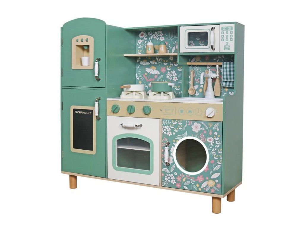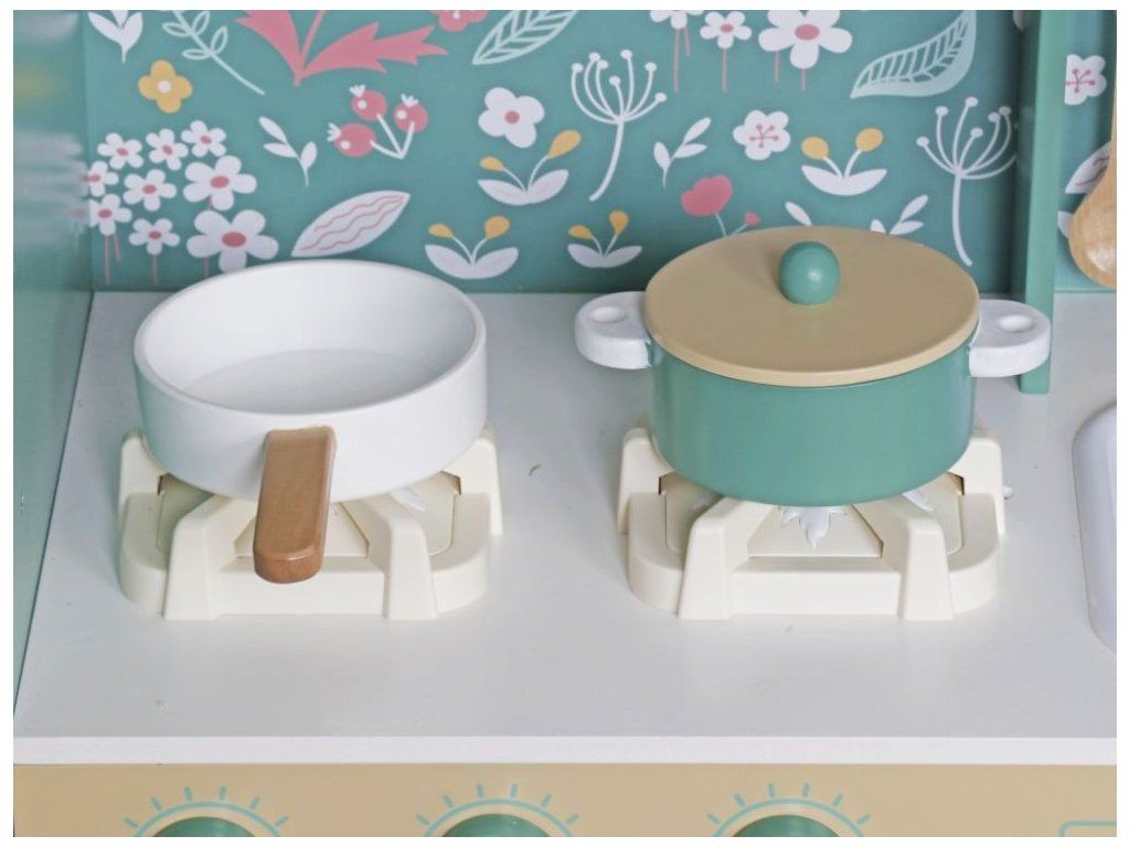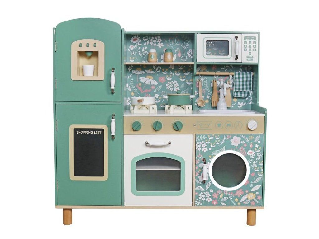 eliNeli je česká značka drevených hračiek a nábytku s jedinečným farebným dizajnom a so zahraničnou výrobou. Produkty eliNeli rozvíjajú kreativitu a pohybový potenciál detí, skvele zapadnú do interiéru a vracajú sa k tradičnému materiálu - k drevu. Unikátna na značke je dizajnová kombinácia prírodných a neskorých letných až jesenných farieb, ktoré sa hodia do minimalistického scandi interiéru a ktoré inde nenájdete. To všetko za veľmi dostupné ceny. Detská drevená kuchynka vo farebnej kombinácii zelenej, hnedej a bielej farby, zdobená kvetmi, okúzli každú malú kuchárku a gazdinku. Elegantný dizajn, zdobené úchyty, množstvo spotrebičov, doplnky, svetelné a zvukové efekty, to všetko zaistí, že hra v kuchynke bude veľkou zábavou, ktorá nebude mať konca. V drevenej kuchynke môžu deti pripravovať pokrmy, variť, piecť a smažiť, ohrievať jedlo, uvariť kávu, umyť riad, oprať špinavú bielizeň, jednoducho vyskúšať si dospelácke činnosti bezpečným detským spôsobom. Reálny nádych celej hre dodajú zvukové a svetelné efekty - sporák svieti a vydáva zvuky. Pri hre s touto edukatívnou hračkou deti zdokonaľujú motorické schopnosti, manuálnu zručnosť, koordináciu očí a rúk, rozvíjajú fantáziu, hrajú role, budujú sociálne väzby. Prečo vybrať túto detskú kuchynku: Prírodné materiály - detská kuchynka a príslušenstvo sú vyrobené prevažne z prírodného dreva. Štýlová - krásne farby, zdobené úchyty a kvetinový vzor dodávajú detskej kuchynke štýl. Neutrálne farby - vďaka zelenej, hnedej a bielej farbe je drevená detská kuchynka vhodná do každej detskej izby, hracieho kútika alebo detskej herničky. Moderné spotrebiče - detská kuchynka je vybavená spotrebičmi, ktoré neodmysliteľne patria ku každej modernej kuchyni - ľadnička, mikrovlnná rúra, kávovar, sporák, rúra na pečenie, práčka, drez na riad. Zvukové a svetelné efekty - reálny nádych hre v kuchynke dodáva sporák, ktorý svieti a vydáva zvuky. Príslušenstvo - súčasťou kuchynky sú farebne zladené doplnky v podobe hrnca s pokrievkou, panvice, hrnčeka, dreveného náčinia, koreničiek a utierky. Edukatívna hračka - kuchynka umožní deťom vyskúšať si niektorú z dospeláckych činností (varenie, pečenie, ohrievanie, umývanie riadu, servírovanie pokrmov, pranie bielizne, prípravu kávy) bezpečným detským spôsobom. Zdokonaľovanie schopností - pri hre v detskej kuchynke deti zdokonaľujú motorické schopnosti, koordináciu očí a rúk, manuálnu zručnosť, rozvíjajú fantáziu a kreativitu, hrajú role, budujú sociálne väzby. Hračka bezpečná pre deti - na náter sa používajú vodou riediteľné laky a farby, netoxické, vhodné a bezpečné pre deti. Technické parametre: Rozmery: 90 x 31 x 91 cm. Materiál: masívne drevo, MDF. Certifikáty: CE, 2009/48/ES, EN 71-1, EN 71-2 a EN 71-3. Odporúčaný vek: od 3 rokov. Viac o produktoch eliNeli nájdete na: https://www.elineli.eu/sk/. Často kladené otázky: Je hračka bezpečná pre deti? Detská drevená kuchynka eliNeli je testovaná, vhodná a bezpečná pre deti a vydrží vašim deťom dlho. Spĺňa požiadavky smernice o bezpečnosti hračiek 2009/48/ES a normy o nezávadnosti a bezpečnosti hračiek EN 71-1, 2, 3, kedy sa testujú mechanické a fyzikálne vlastnosti, horľavosť aj migrácia určitých látok. Detskú kuchynku otestoval a Certifikát o zhode (Osvedčenie o zhode - CE) udelil technický a skúšobný ústav. U drevenej detskej kuchynky eliNeli máte istotu, že je hračka pre vaše deti vhodná a bezpečná, je testovaná, na náter sú použité netoxické, zdravotne nezávadné laky a farby.