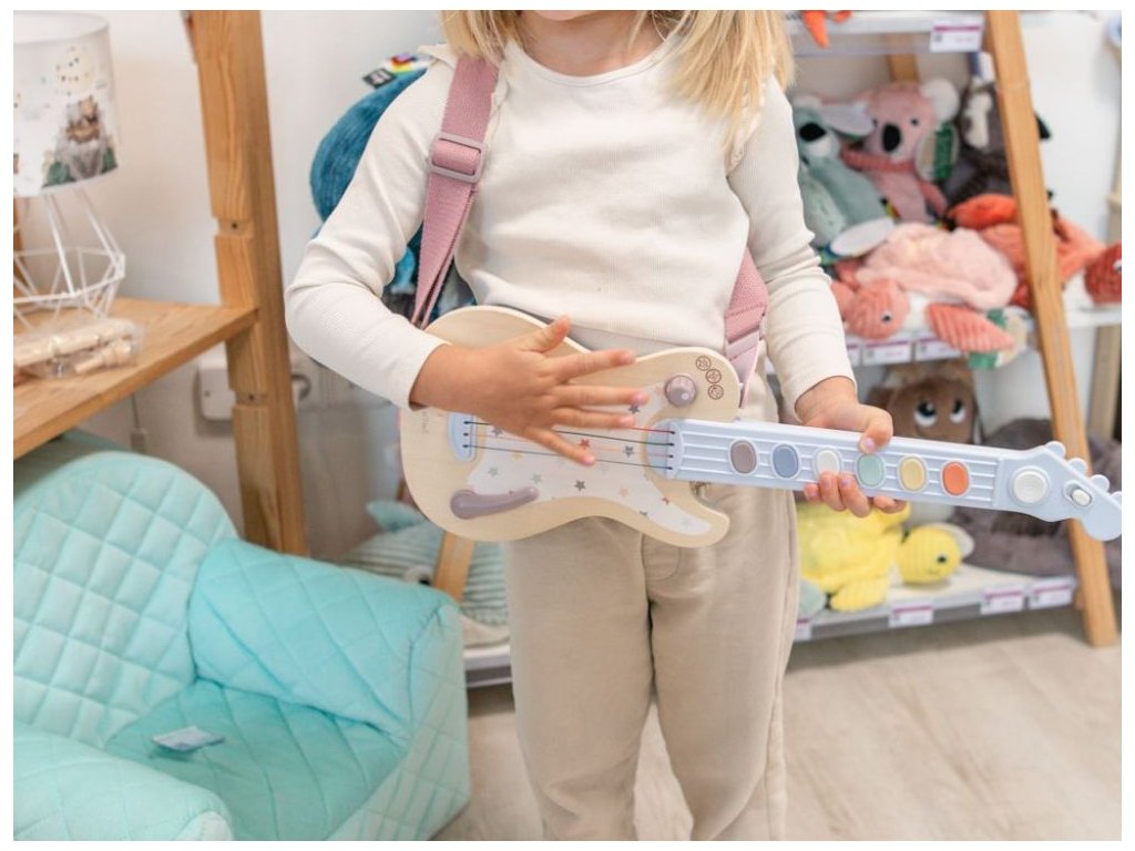 Značka eliNeli prináša do detského sveta moderný dizajn v spojení s moderným európskym štýlom inšpirovaným nemeckou kvalitou a dizajnom. Prioritou pri výrobe sú prírodné materiály, prírodné drevo, čím podporuje udržateľnosť a bezpečnosť hračiek. Nové výrobky prechádzajú prísnymi bezpečnostnými testami TÜV Rheinland, čo zaisťuje bezpečnú hru deťom a pokoj rodičom. S eliNeli sa deti učia, tvoria a rastú v bezpečnom a podnetnom prostredí, ktoré nielen spĺňa, ale prekonáva ich očakávania. Elektrická detská gitara, vyrobená z preglejky a plastu, rozžiari očká každému dievčatku aj chlapcovi. Elektrická gitara premení každé dieťa na rockovú hviezdu, ktorá vám s radosťou usporiada domáci koncert napríklad každý deň. Pomocou farebných tlačidiel stačí vybrať tie správne zvuky na navodenie tej pravej atmosféry. Gitara prebudí lásku k hudbe v každom dieťatku, zoznámi ho so zvukmi, ako vzniká tón, zdokonalí motorické schopnosti, rozvíja sluchové vnímanie, fantáziu a kreativitu, umožňuje deťom hrať role. Vďaka popruhu je gitara jednoducho prenosná. Prečo kúpiť túto gitaru: Prírodný materiál - eliNeli kladie dôraz na výrobu z dreva a prírodných materiálov, čím zaisťuje ekologickú šetrnosť a bezpečnosť hračiek. Škandinávsky štýl - vďaka neutrálnemu farebnému prevedeniu a krásnemu dizajnu je hračka vhodná pre dievčatká aj chlapcov. Farebne neutrálna - neutrálna kombinácia modernej sivej farby s farbou prírodného dreva dodáva detskej elektrickej gitare štýl. Elektrická. Výber zvukov - pomocou farebných tlačidiel si deti vyberú ten pravý zvuk. 3 zvukové módy - pomocou sivého kolieska na tele gitary nastavíte 1 z 3 módov. 1. mód - akordy elektrickej gitary so skresleným zvukom (metalový zvuk), 2. mód - akordy akustickej gitary, 3. mód - rôzne zvukové efekty a zábavné zvuky. Vibrapáka - umožňuje plynule meniť výšku tónov. Rôzne melódie - biele guľaté tlačidlo umožní vybrať niektorú z už hotových melódií. Popruh - praktický popruh uľahčí prenášanie hudobnej hračky. Rozvoj schopností + stimulácia zmyslov - pri hre na gitaru deti rozvíjajú motorické schopnosti, zoznamujú sa so zvukmi, ako vzniká tón, rozvíjajú sluchové vnímanie, fantáziu a kreativitu, hrajú role. Vysoké bezpečnostné štandardy - hračka prešla prísnymi nemeckými bezpečnostnými testami TÜV Rheinland, čo zaručuje maximálnu bezpečnosť pre vaše deti. Hračka bezpečná pre deti - vyrobená prevažne z prírodných materiálov, natretá bezpečnými, netoxickými, vodou riediteľnými farbami. Technické parametre: Rozmer: 53 x 18 x 5,6 cm (výška x šírka x dĺžka). Rozmer balenia: 6,5 x 21 x 55 cm. Hmotnosť: 800 g. Materiál: ABS, preglejka, textília. Certifikáty a normy: CE, 2009/48/ES, TÜV Rheinland, EN 71-1, 2 a 3. Odporúčaný vek: od 3 rokov, 36m+. Viac o produktoch eliNeli nájdete na: https://www.elineli.eu/sk/. Premeňte svoje dieťa na rockovú hviezdu s elektrickou gitarou eliNeli: Často kladené otázky: Je hračka bezpečná pre deti? Elektrická gitara eliNeli je testovaná, vhodná a bezpečná pre deti a vydrží vašim deťom dlho. Hračka prešla prísnymi bezpečnostnými testami TÜV Rheinland. Spĺňa požiadavky smernice o bezpečnosti hračiek 2009/48/ES a normy o nezávadnosti a bezpečnosti hračiek EN 71-1, 2, 3, kedy sa testujú mechanické a fyzikálne vlastnosti, horľavosť aj migrácia určitých látok. Detskú elektrickú gitaru otestoval a Certifikát o zhode (Osvedčenie o zhode - CE) udelil technický a skúšobný ústav. U elektrickej gitary pre deti eliNeli máte istotu, že je hračka pre vaše deti vhodná a bezpečná, je testovaná, na náter sú použité netoxické, zdravotne nezávadné laky a farby.Dodatočné parametre