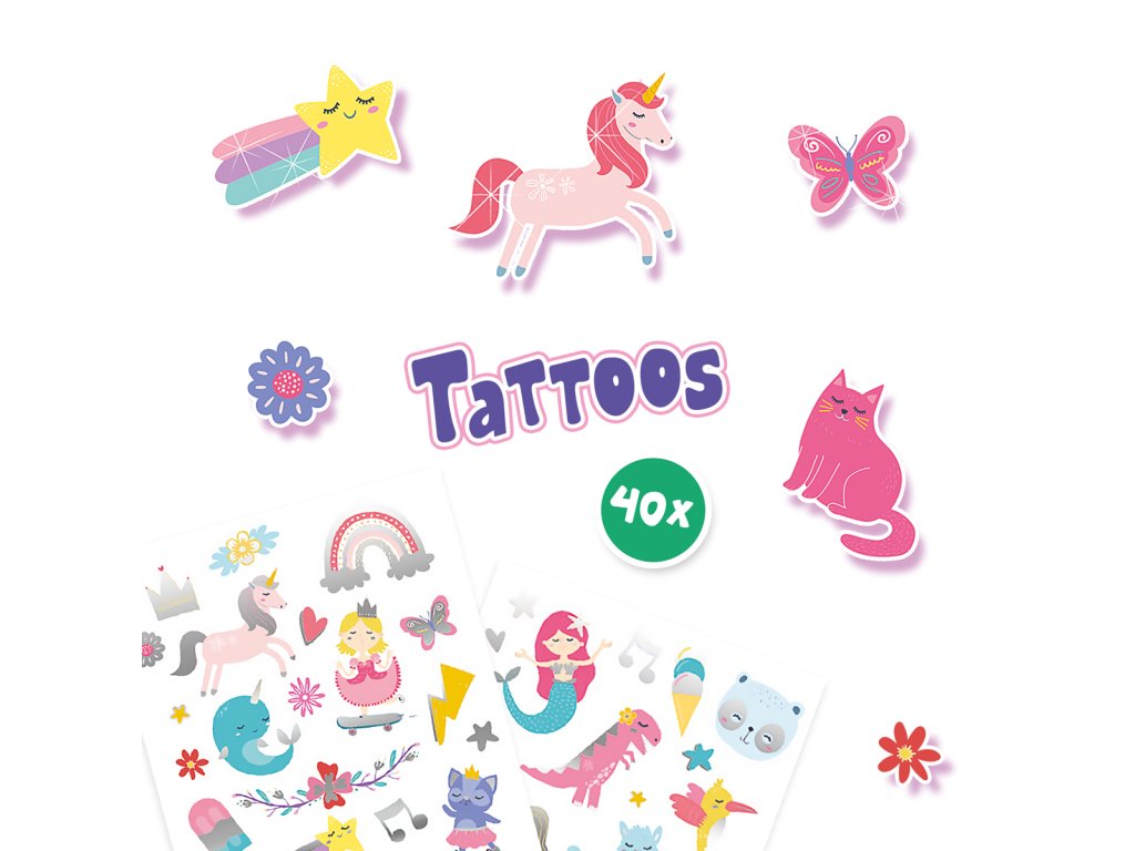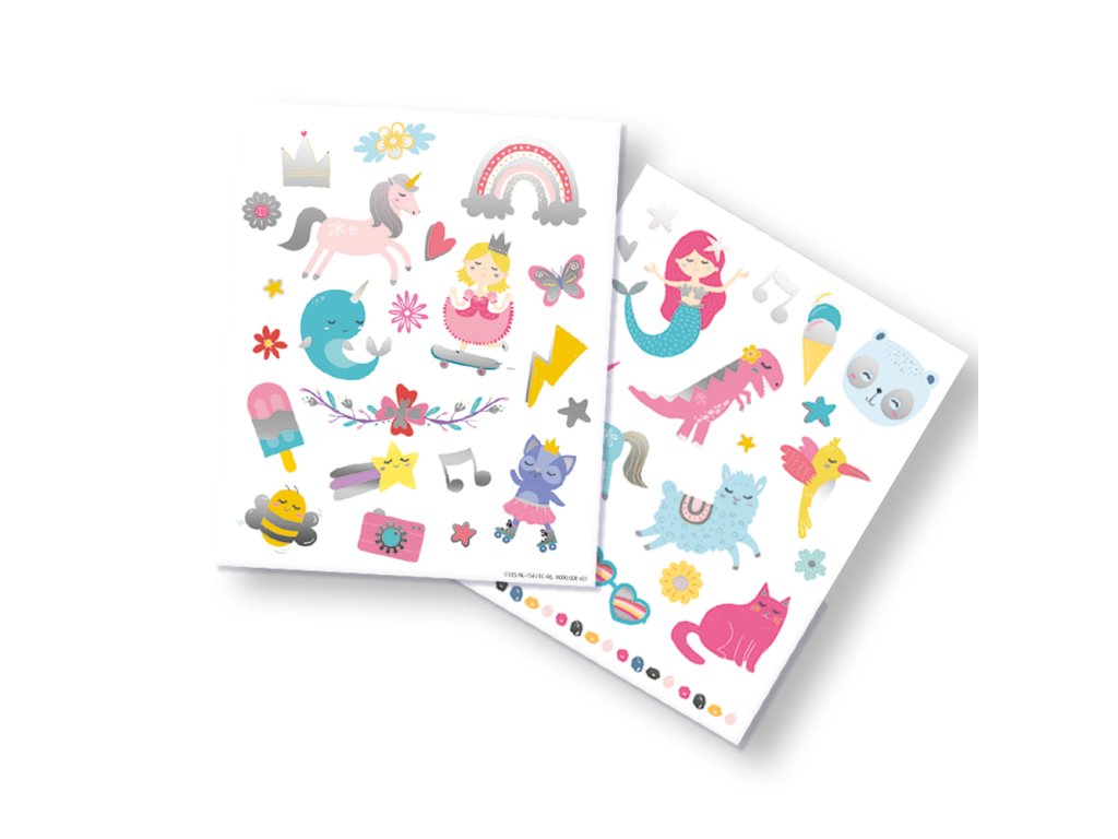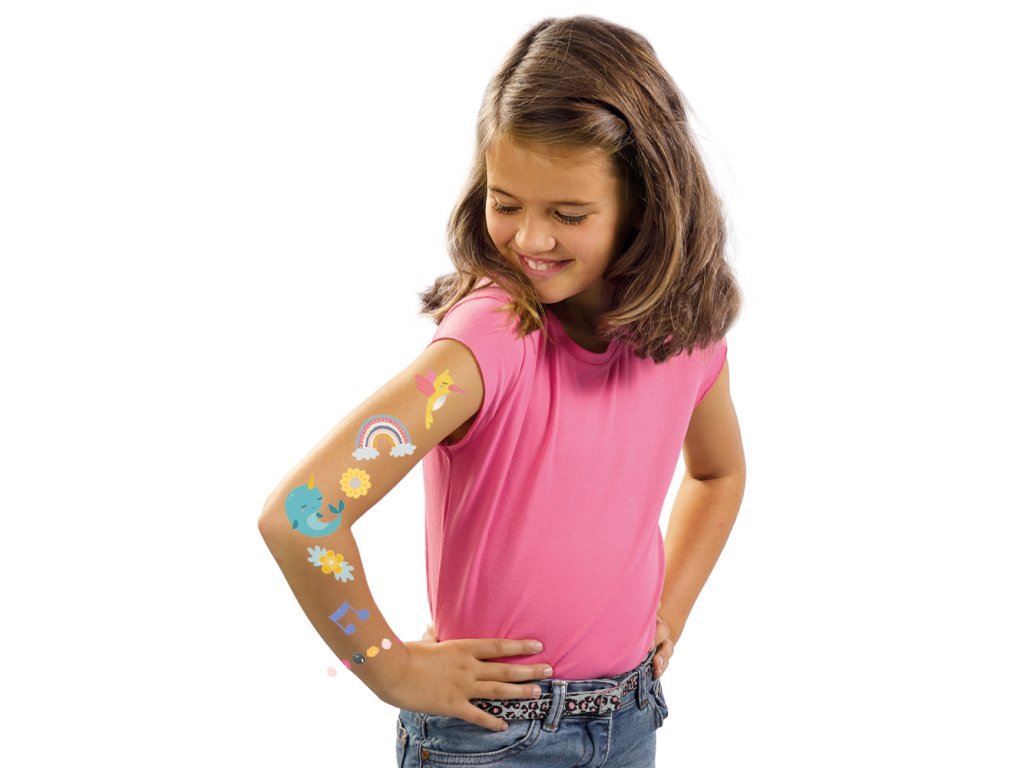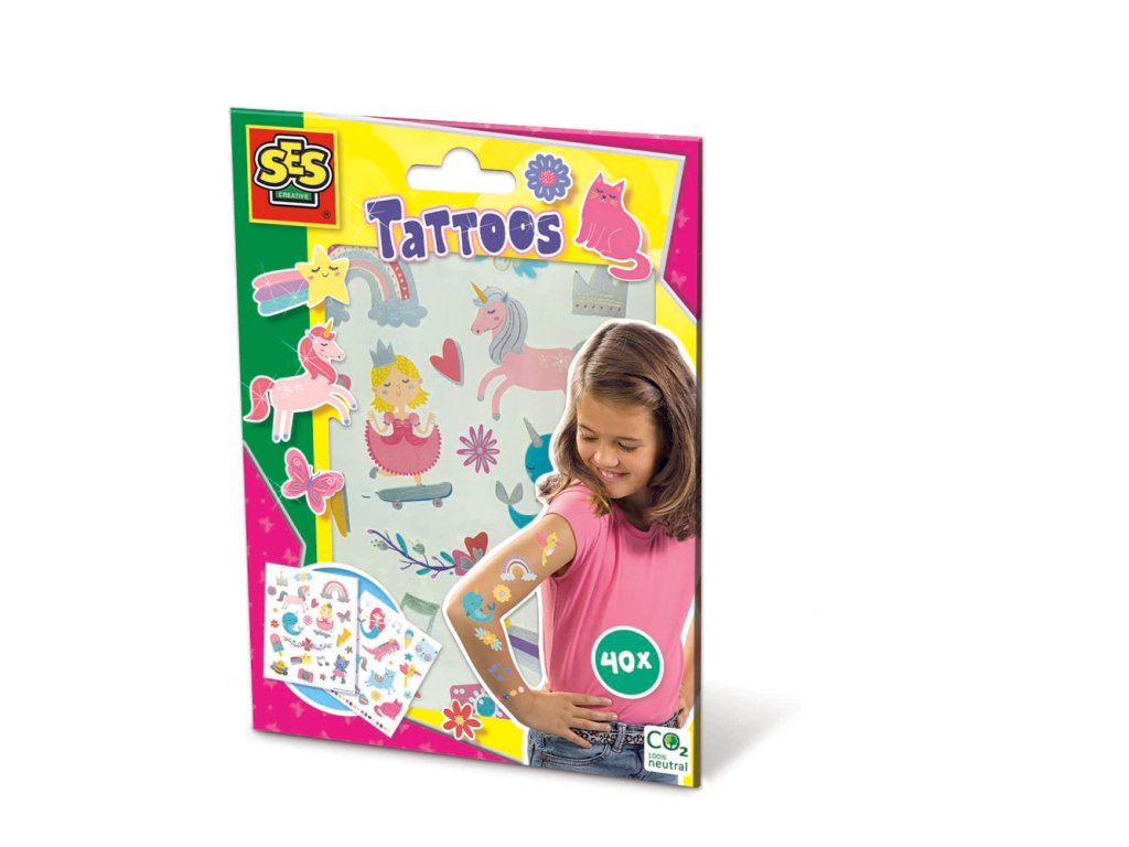 Páni, toto tetovanie SES s metalickým efektom ihneď rozžiari vašu ruku. Vyberáte si princeznú na skateboarde alebo jednorožca? Táto sada obsahuje 40 vtipných a veselých postavičiek. Tetovanie sa ľahko aplikuje aj umýva. Rozmer balenia: 15 x 20 x 0,5 cm. Vek: 3+Dodatočné parametre