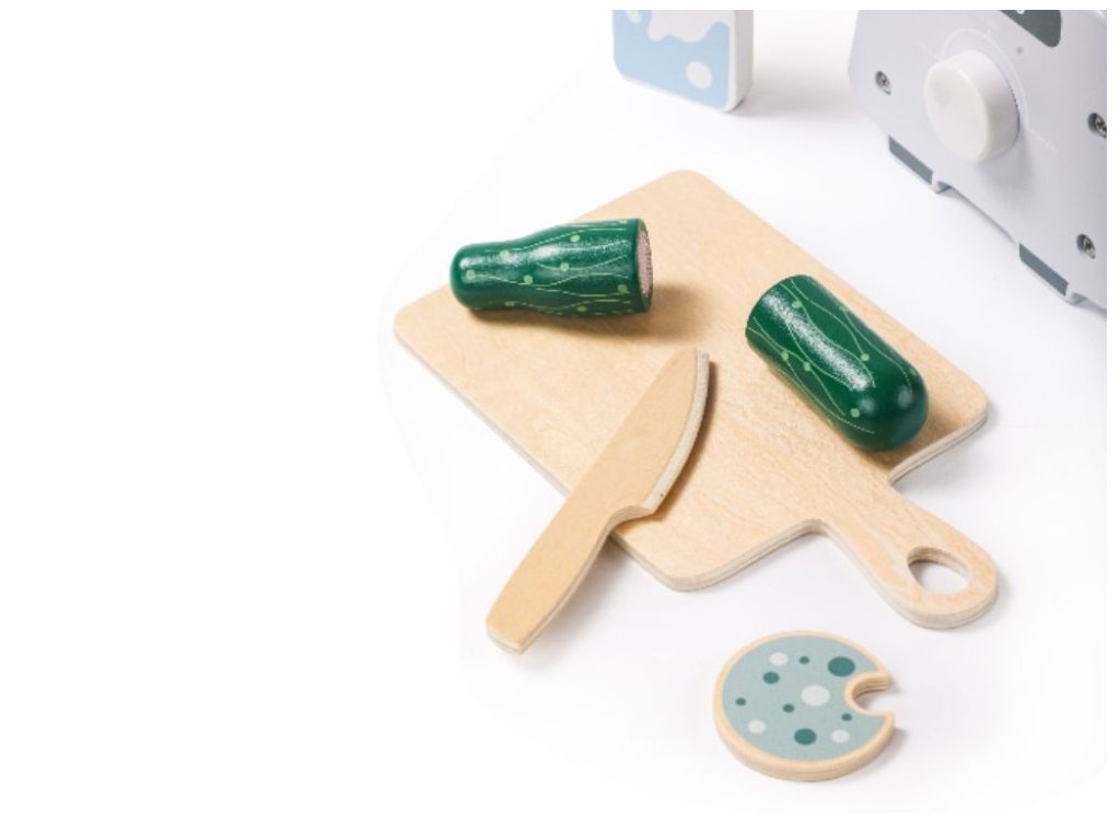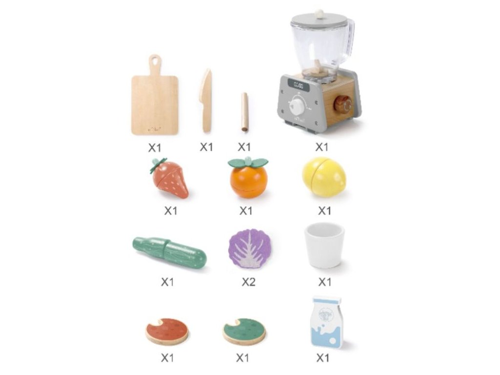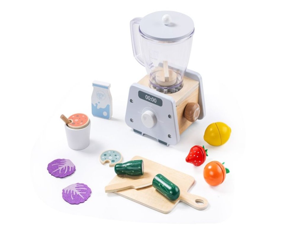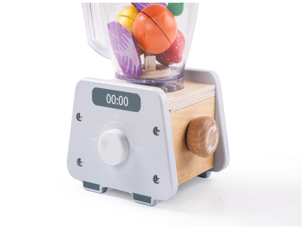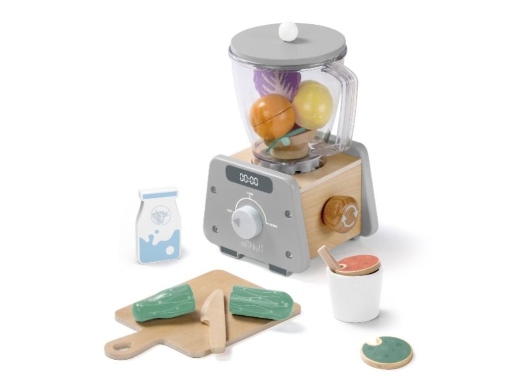 Štýlový detský mixér na prípravu smoothie z kvalitného dreva nemôže chýbať v žiadnej detskej kuchynke. Je ideálnym pomocníkom pre všetkých malých kuchárov a kuchárky, ktorí sa chcú zahrať na kaviareň, obchodík alebo pohostiť návštevu osviežujúcim a lahodným nápojom. Vďaka tejto edukatívnej hračke si deti bezpečne osvoja schopnosti (mixovanie, porciovanie a servírovanie) z každodenného života. Súčasťou sady je ovocie a zelenina z dvoch častí, ktoré sú spojené suchým zipsom, perfektné na nácvik krájania s dreveným nožíkom. Prečo vybrať tento drevený mixér: Kvalitná výroba - vyrobený z prírodného dreva. Príjemné farby - realistické farby a elegantný dizajn dodávajú hračke lákavý vzhľad. Set mixér + príslušenstvo - v sete deti nájdu parádny drevený mixér, mlieko, nádobku so slamkou, dva miešané smoothie, dosku na krájanie, nôž, ovocie a zeleninu. Edukatívna hračka - mixér umožní deťom vyskúšať si prácu s kuchynským robotom bezpečným detským spôsobom a krájanie ovocia a zeleniny naučí deti prácu s nožom. Hra aj zdokonaľovanie schopností - pri hre deti napodobňujú dospelácke činnosti a to je veľká zábava, zdokonaľujú motorické schopnosti, koordináciu očí a rúk, rozvíjajú svoju fantáziu a kreativitu. Do kuchynky - drevený mixér by nemal chýbať v žiadnej detskej kuchynke. Bez tohto kuchynského pomocníka sa neobíde žiadna gazdinka alebo nadšený kuchárik. Technické parametre: Obsah balenia: 14ks (1x mixér, 1x doska, 1x nôž, 1x nádoba, 1x slamka, 2x smoothie, 1x mlieko, 1x jahoda, 1x pomaranč, 1x citrón, 1x uhorka, 2x kapusta). Rozmery balenia: 25,5 x 15,5 x 50 cm. Hmotnosť: 12 kg. Hmotnosť balenia: 12,5 kg. Materiál: preglejka, MDF, masívne drevo, plast. Certifikáty a normy: CE, EN71-1,2-3. Odporúčaný vek: od 3 rokov. Upozornenie: Súčasťou setu sú drevené potraviny, ktoré sú hračkou a nie sú určené na konzumáciu. eliNeli je česká značka drevených hračiek a nábytku s jedinečným farebným dizajnom a so zahraničnou výrobou. Produkty eliNeli rozvíjajú kreativitu a pohybový potenciál detí, skvele zapadnú do interiéru a vracajú sa k tradičnému materiálu - k drevu. Unikátna na značke je dizajnová kombinácia prírodných a neskorých letných až jesenných farieb, ktoré sa hodia do minimalistického scandi interiéru, a ktoré inde nenájdete. To všetko za veľmi dostupné ceny. Viac o produktoch eliNeli nájdete na: https://www.elineli.eu/sk/.