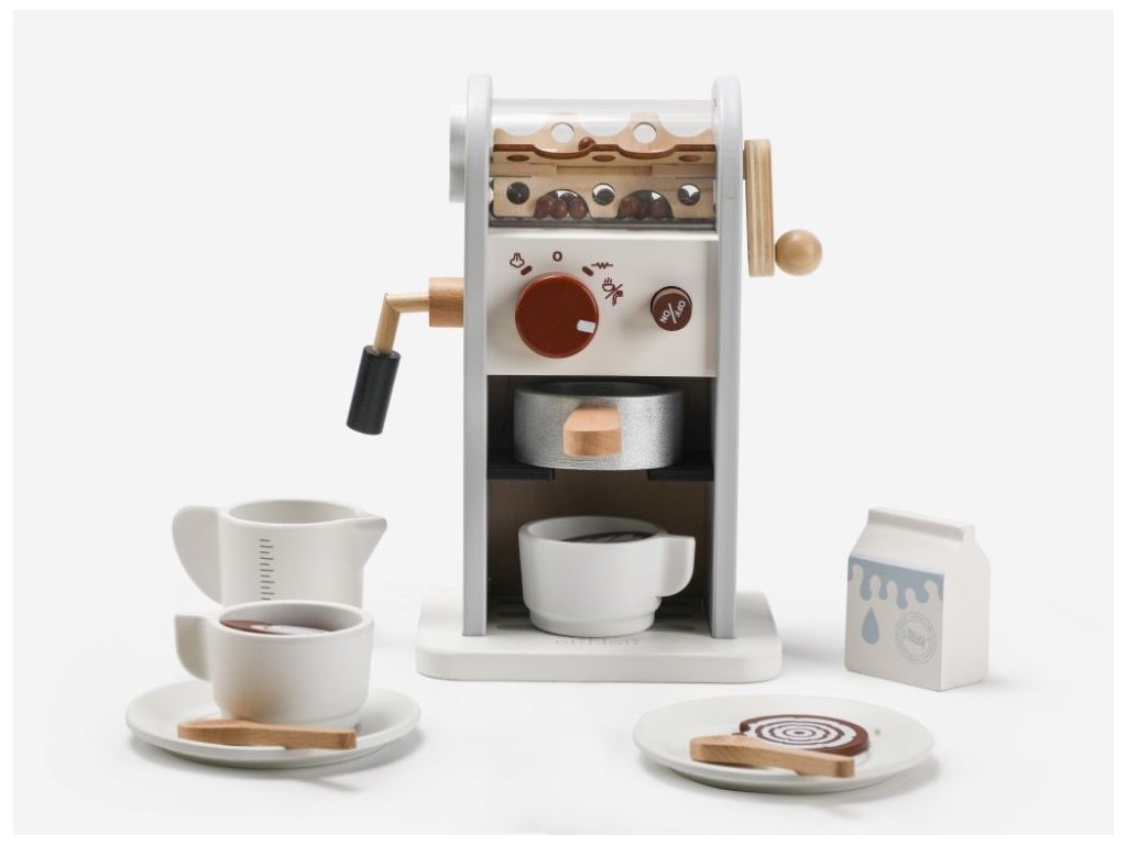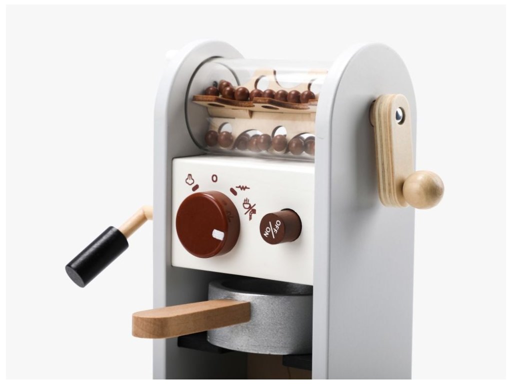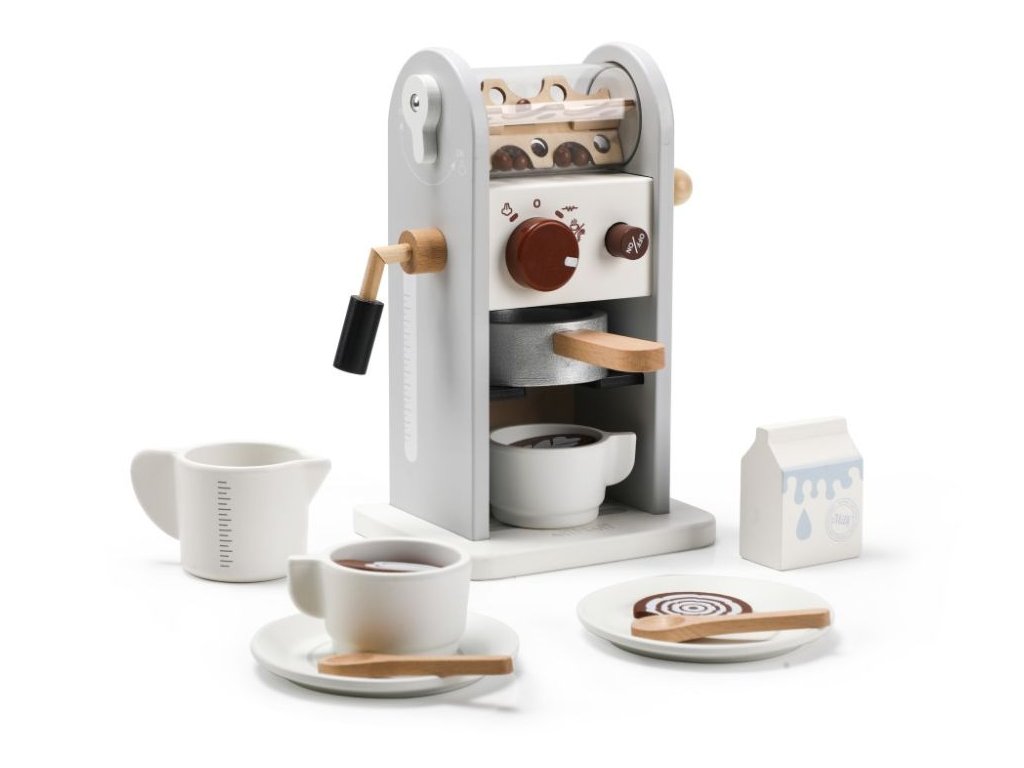 eliNeli je česká značka drevených hračiek a nábytku s jedinečným farebným designom a so zahraničnou výrobou. Produkty eliNeli rozvíjajú kreativitu a pohybový potenciál detí, skvele zapadnú do interiéru a vracajú sa k tradičnému materiálu — k drevu. Unikátna na značke je dizajnová kombinácia prírodných a neskorých letných až jesenných farieb, ktoré sa hodia do minimalistického scandi interiéru, a ktoré inde nenájdete. To všetko za veľmi dostupné ceny. Drevený detský kávovar v neutrálnej kombinácii farieb - bielej, sivej a prírodného dreva, okúzli svojim dizajnom a príslušenstvom nielen deti, ale aj dospelých. Originálny detský kávovar s mlynčekom na zrnkovú kávu, s tryskou na napenenie mlieka, s vypínačom, s ovládacími kolieskami a parádnym príslušenstvom premení detskú izbu na kaviareň, kde deti môžu denne pripravovať lahodnú kávu alebo zdobené cappuccino pre svoje bábiky, plyšové hračky, rodičov aj kamarátov. Drevený kávovar podporuje a rozvíja detské schopnosti, deti hrajú role, vyskúšajú si prípravu kávy bezpečným detským spôsobom. Nechajte sa pozvať na lahodnú kávu z čerstvo pomletých kávových zrniek, ozdobenú srdiečkom. Prečo kúpiť tento detský kávovar: Drevený - kávovar je vyrobený z kvalitného prírodného dreva. Originálny - súčasťou kávovaru je priehľadný mlynček na kávu aj ďalšie originálne vychytávky a príslušenstvo, ktoré hre s kávovarom dodajú reálny nádych. Krásny dizajn - kombinácia neutrálnych farieb a moderný dizajn dodávajú kávovaru lákavý vzhľad. Neutrálne farebné prevedenie - vďaka kombinácii farieb bielej, sivej a prírodného dreva je kávovar vhodný pre dievčatká aj chlapcov. Bohaté príslušenstvo - v balení detského kávovaru nájdete drevené šálky aj s podšálkami, lyžičky, kanvičku na mlieko, mlieko, zdobenie. Zdokonaľuje schopnosti - hra s kávovarom rozvíja jemnú motoriku, zdokonaľuje koordináciu očí a rúk, manuálnu zručnosť, podporuje detskú fantáziu a kreativitu, budovanie sociálnych väzieb, hranie rolí. Hračka bezpečná pre deti - vyrobená z prírodných materiálov, natretá bezpečnými, netoxickými, vodou riediteľnými farbami. Technické parametre: Rozmer balenia: 22,1 x 23,8 x 24 cm. Materiál: javorové drevo, preglejka, MDF. Certifikáty: CE, 2009/48/ES, EN 71-1, EN 71-2 a EN 71-3. Odporúčaný vek: od 3 rokov. Upozornenie: Kávovar aj jeho príslušenstvo sú drevené hračky, nejedná sa o potraviny určené na konzumáciu. Viac o produktoch eliNeli nájdete na: https://www.elineli.eu/sk/. Často kladené otázky: Je hračka bezpečná pre deti? Hračka detský kávovar eliNeli je testovaná, vhodná a bezpečná pre deti a vydrží vašim deťom dlho. Spĺňa požiadavky smernice o bezpečnosti hračiek 2009/48/ES a normy o nezávadnosti a bezpečnosti hračiek EN 71-1, 2, 3, kedy sa testujú mechanické a fyzikálne vlastnosti, horľavosť aj migrácia určitých látok. Drevený kávovar otestoval a Certifikát o zhode (Osvedčenie o zhode - CE) udelil technický a skúšobný ústav. U hračky Detský kávovar na zrnkovú kávu eliNeli máte istotu, že je pre vaše deti vhodná a bezpečná, je testovaná, na náter sú použité netoxické, zdravotne nezávadné laky a farby.Dodatočné parametre