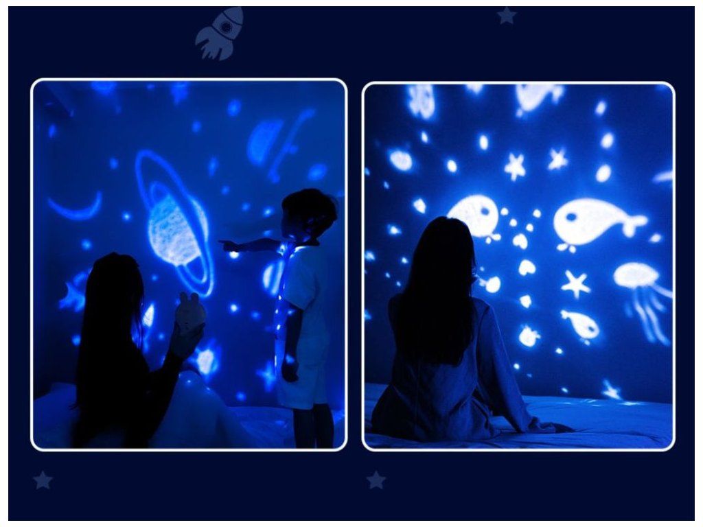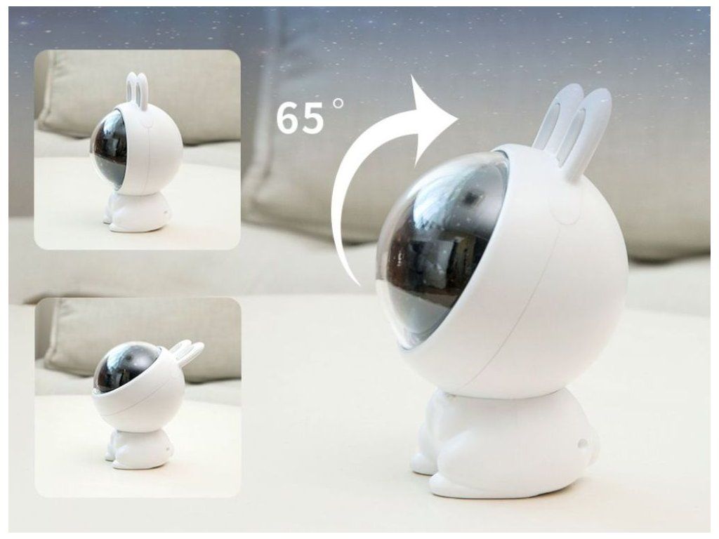 Možnosti premietania a atmosféra Projektor Baby Rabbit je vybavený tromi vymeniteľnými filmami, vďaka ktorým môžete ľahko meniť témy premietania a premeniť každý večer na nový zážitok. Nastaviteľný jas a možnosť výberu medzi režimami teplého bieleho svetla a RGB umožňujú vytvoriť dokonalú atmosféru - či už na pokojný spánok, relaxáciu alebo zábavnú párty. Bezproblémové dobíjanie a odolnosť Projektor je vybavený nabíjaním cez USB, čo znamená, že ho môžete pohodlne a rýchlo nabíjať zo štandardných zdrojov. To zaručuje menej starostí s výmenou batérie a dlhšiu životnosť batérie. S kapacitou batérie 1200 mAh poskytuje až 24 hodín prevádzky na jedno nabitie. Táto dlhá výdrž batérie je ideálna na celonočné premietanie alebo víkendové výlety. Interaktívne funkcie a ovládanie Hudobný projektor Rabbit ponúka plynulé stmievanie a premietanie, takže môžete ľahko meniť atmosféru miestnosti. Intuitívne ovládanie je vhodné aj pre deti. Zmena farieb, otáčanie projekcie, prehrávanie hudby, 3 projekčné fólie a plynulé stmievanie. Kombinácia svetla a zvuku vytvára pohlcujúci a interaktívny zážitok pre každého používateľa. Bezpečný a priateľský dizajn Projektor je vyrobený z odolných a bezpečných materiálov (ABS, PC, PVC), ktoré sú ideálne na používanie deťmi. Je ľahký a ľahko prenosný, takže si ho deti môžu vziať kamkoľvek na cesty alebo do svojej izby. Roztomilý motív zajačika zvyšuje príťažlivosť pre deti, zatiaľ čo jednoduché ovládanie umožňuje samostatnú hru a interaktívne zážitky bez potreby pomoci dospelého. Technické parametre Rozmery 15,6 x 9,5 x 9,6 cm Rozmery balenia 15,9 x 9,8 x 9,9 cm Hmotnosť Približne 300 g Materiál ABS, PC, PVC, elektronické komponenty Vstupné napätie/prúd 5 V - 1000 mA Maximálny výkon 4,1W Batéria Li-ion Rozmery batérie Φ18,25*65,96 (mm) Menovité napätie 3,7 V / 1200 mAh / 4,44 Wh Kapacita batérie 1200 mAh Hmotnosť batérie 35,490 g Hmotnostná hustota energie 125,11 Wh/kg Čas nabíjania/používania Približne 2,5 hodiny / 2-24 hodín Funkcie Zmena farby, otáčanie projekcie, prehrávanie hudby, 3 filmy na projekciu, plynulé stmievanie Certifikáty CE-EMC / ROHS Odporúčaný vek Od 3 rokov Upozornenie Používajte iba nabíjačku s maximálnym výstupným napätím 5 V / 1000 mA. Použitie nabíjačky s vyšším napätím môže spôsobiť nevratné poškodenie výrobku. Na závady spôsobené nesprávnym napájaním sa nevzťahujú záručné nároky. Výhody výrobku Projektor ponúka tri vymeniteľné fólie a možnosť voľby režimu mäkkého svetla a RGB. Plynulé stmievanie a otočná hlava zajačika umožňujú nastaviť ideálnu atmosféru na ukolísanie, relaxáciu alebo zábavu detí. Je vyrobený z odolných a bezpečných materiálov ABS, PC a PVC, je ľahký a ľahko sa prenáša. Nabíjanie cez USB a jednoduché ovládanie zabezpečujú pohodlné používanie doma alebo na cestách, zatiaľ čo motív zajačika deti zabaví a zaujme. Výhody výrobku Vymeniteľné premietacie fólie Tri rôzne motívy premietania umožňujú ľahko meniť prostredie podľa nálady. Nastaviteľný jas a farby Prispôsobte si atmosféru miestnosti pomocou režimov teplého svetla alebo RGB. Nabíjanie cez USB Praktické a jednoduché dobíjanie zo štandardných zdrojov USB zaručuje bezproblémovú prevádzku. Dlhá životnosť batérie S kapacitou 1200 mAh ponúka až 24 hodín prevádzky. Bezpečný dizajn pre deti Vyrobené z bezpečných materiálov ABS, PC a PVC, vhodné pre deti od 3 rokov. Prehrávanie hudby Integrovaná funkcia prehrávania hudby dodáva ďalšiu vrstvu zábavy a relaxácie. Koľko rôznych motívov premietania je k dispozícii? Projektor ponúka tri vymeniteľné premietacie listy s rôznymi motívmi. Ako dlho vydrží batéria na jedno nabitie? Batéria vydrží na jedno nabitie až 24 hodín nepretržitej prevádzky. Je projektor vhodný pre deti? Áno, projektor je bezpečný pre deti od 3 rokov. Ako sa projektor nabíja? Projektor sa dobíja pomocou USB kábla.Dodatočné parametre