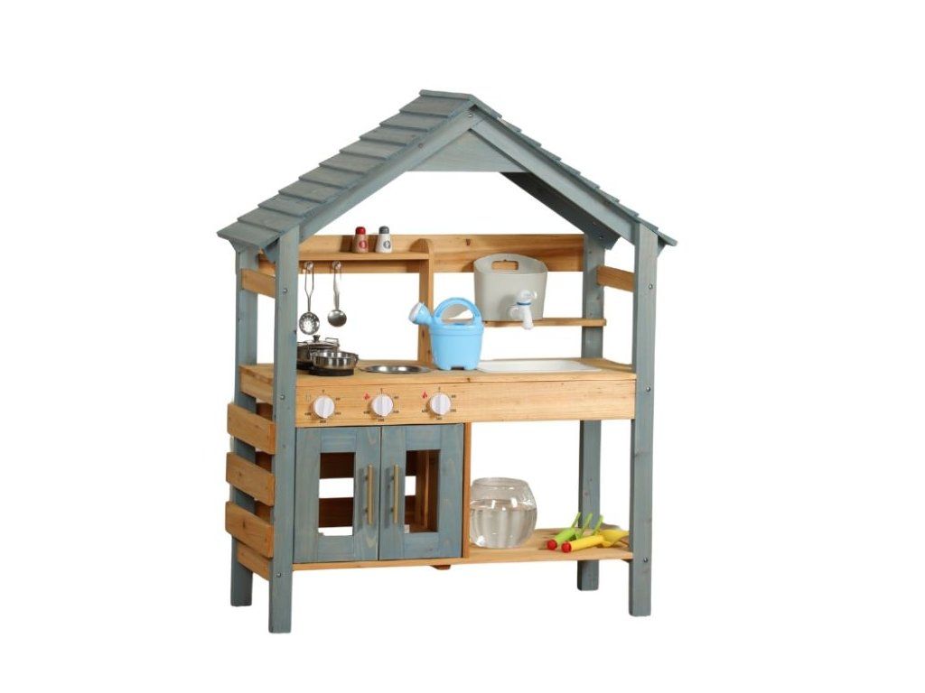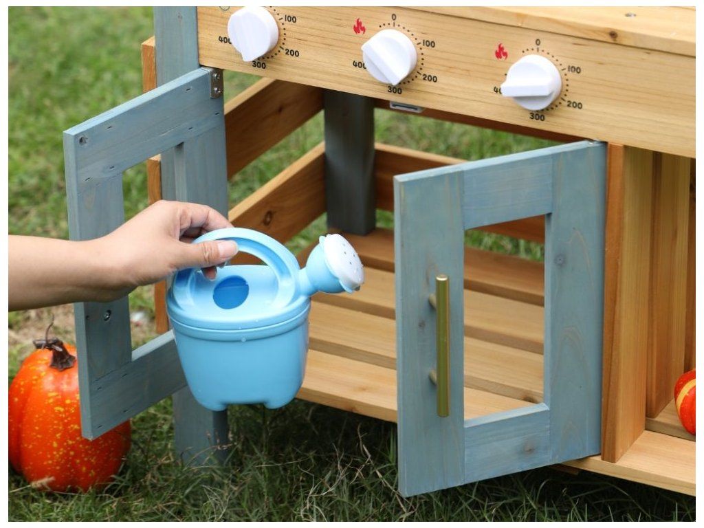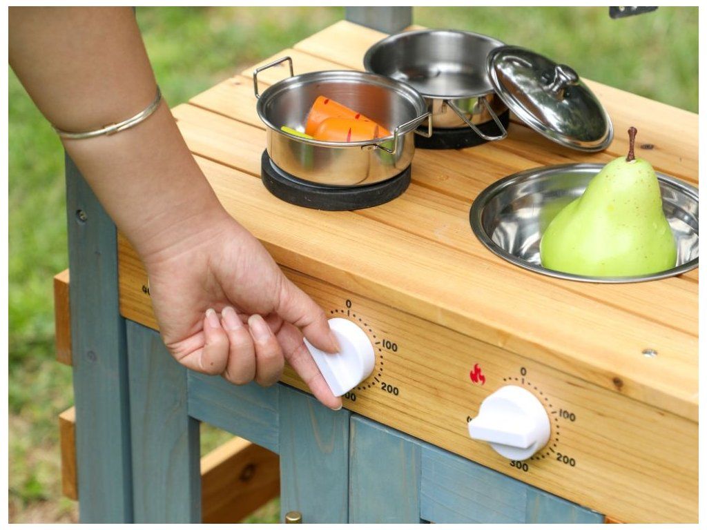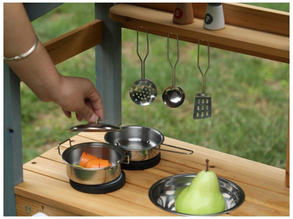 Zábava vonku pre deti Prečo je kuchynka skvelou voľbou Detská vonkajšia kuchynka v podobe domčeka na hranie vytvára pre deti vlastný priestor na hranie a varenie vonku. Konštrukcia z masívneho jedľového dreva zaručuje stabilitu, pevnosť a dlhú životnosť aj pri pravidelnom používaní v exteriéri. Poskytuje bezpečný základ na každodenné hry v záhrade, na terase alebo na dvore. Dve varné platne, skrinka, ktorá slúži ako rúra, drez s nádobou na vodu a bohaté príslušenstvo umožňujú realistickú hru na kuchára. Kvalitné materiály a spracovanie Bezpečnosť na prvom mieste Kuchynka je vyrobená z prírodného dreva, ktoré je nielen ekologické, ale zaručuje aj odolnosť a dlhú životnosť. Každý detail je starostlivo vyrobený tak, aby spĺňal prísne bezpečnostné normy. Drevo je hladko obrúsené a ošetrené, aby sa zabránilo vzniku nežiaducich triesok. Kuchynka je navrhnutá tak, aby bola stabilná a bezpečná aj počas intenzívnej hry, čo rodičom poskytuje pokoj a istotu. Rozvíja zručnosti a predstavivosť Vonkajšia kuchynka prirodzene spája hru a učenie. Deti si pri manipulácii s náčiním precvičujú jemnú a hrubú motoriku, učia sa samostatnosti a pri spoločnej hre rozvíjajú komunikáciu a spoluprácu. Kuchynka tiež podporuje predstavivosť - deti môžu ľahko prevziať úlohu kuchára, pripravovať jedlá pre rodinu a priateľov a vytvárať vlastné scenáre hry, čím sa posilňuje kreativita a sociálne zručnosti. Rozvíjajú si predstavivosť, motorické zručnosti a samostatnosť a dokážu sa zabaviť na dlhý čas bez potreby ďalších hračiek. Technické parametre Podrobné špecifikácie Rozmery 105 x 31 x 88 cm Rozmery balenia 20 x 36,7 x 88 cm Hmotnosť 9 kg Hmotnosť balenia 10 kg Materiál Masívne jedľové drevo, MDF Certifikáty EN71-1,2,3, CE Odporúčaný vek od 3 rokov, 36m+ Výhody produktu Prečo si vybrať túto kuchynku Masívne drevo zaručuje stabilitu, odolnosť a dlhú životnosť pri vonkajšom používaní, takže kuchynka vydrží každodennú hru detí. Bohaté vybavenie podporuje prirodzené hranie rolí, pri ktorom si deti rozvíjajú kreativitu, samostatnosť a jemnú motoriku. Realistická hra navyše deti zabaví dlhšie ako bežné hračky - varia, napodobňujú dospelých a prirodzene sa učia spolupráci a praktickým zručnostiam. Výhody výrobku Ekologický materiál Prírodné drevo je ekologické a odolné, čo zaručuje dlhú životnosť a bezpečnú hru. Podporuje kreativitu Kuchynka rozvíja detskú predstavivosť a kreativitu pri príprave imaginárnych jedál. Zábava vonku Ideálna do záhrady alebo na terasu, kde sa deti môžu hrať a učiť vonku. Rozvoj motoriky Hračka pomáha rozvíjať jemnú a hrubú motoriku, ktorá je pre vývoj detí kľúčová. Bezpečný dizajn Hladko obrúsené hrany a stabilná konštrukcia poskytujú deťom bezpečné prostredie. My v spoločnosti ELIS DESIGN sme sami rodičia detí rôzneho veku a záleží nám na tom, s čím sa hrajú. Preto pre vaše deti vytvárame a vyberáme aj zmysluplné hračky z kvalitných, najlepšie prírodných materiálov inšpirovaných metódou Montessori, ktoré nielen zabávajú, ale aj rozvíjajú. Je kuchynka vhodná na používanie vonku? Áno, kuchynka je navrhnutá špeciálne na vonkajšie použitie v záhrade alebo na terase. Odporúčame ju však udržiavať v suchu, aby sa predĺžila jej životnosť. Z akého materiálu je kuchynka vyrobená? Kuchynka je vyrobená z kvalitného prírodného dreva, ktoré je ekologické a odolné. Je kuchynka bezpečná pre malé deti? Áno, kuchynka má hladko obrúsené hrany a stabilnú konštrukciu na bezpečnú hru pre deti od 3 rokov. Podporuje kuchynka rozvoj zručností? Áno, rozvíja jemnú a hrubú motoriku a podporuje detskú tvorivosť a predstavivosť. Viac o produktoch eliNeli https://www.elineli.eu/cz/