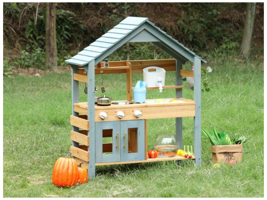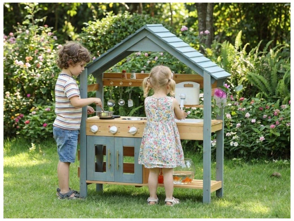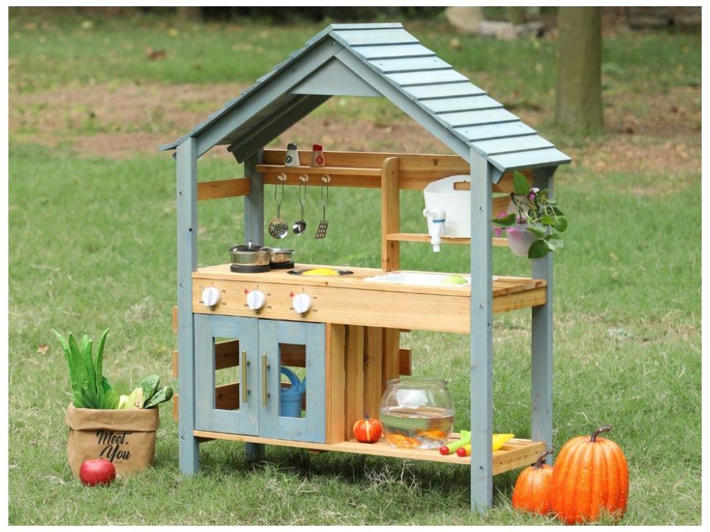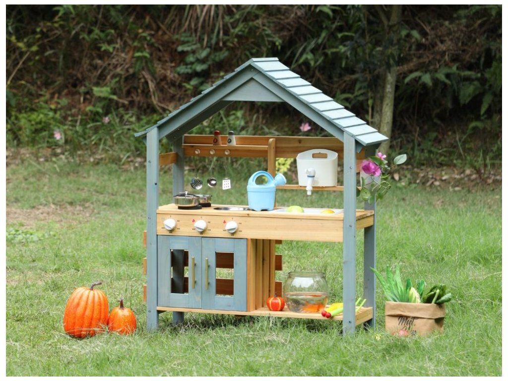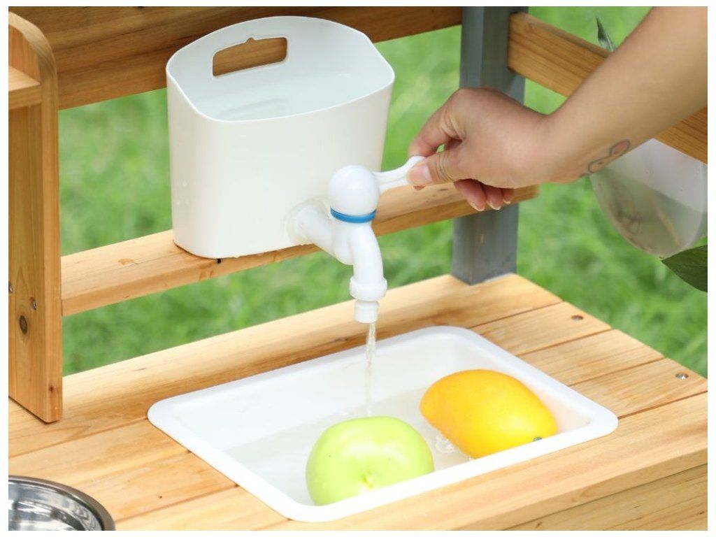 Zábava vonku pre deti Prečo je kuchynka skvelou voľbou Detská vonkajšia kuchynka v podobe domčeka na hranie vytvára pre deti vlastný priestor na hranie a varenie vonku. Konštrukcia z masívneho jedľového dreva zaručuje stabilitu, pevnosť a dlhú životnosť aj pri pravidelnom používaní v exteriéri. Poskytuje bezpečný základ na každodenné hry v záhrade, na terase alebo na dvore. Dve varné platne, skrinka, ktorá slúži ako rúra, drez s nádobou na vodu a bohaté príslušenstvo umožňujú realistickú hru na kuchára. Kvalitné materiály a spracovanie Bezpečnosť na prvom mieste Kuchynka je vyrobená z prírodného dreva, ktoré je nielen ekologické, ale zaručuje aj odolnosť a dlhú životnosť. Každý detail je starostlivo vyrobený tak, aby spĺňal prísne bezpečnostné normy. Drevo je hladko obrúsené a ošetrené, aby sa zabránilo vzniku nežiaducich triesok. Kuchynka je navrhnutá tak, aby bola stabilná a bezpečná aj počas intenzívnej hry, čo rodičom poskytuje pokoj a istotu. Rozvíja zručnosti a predstavivosť Vonkajšia kuchynka prirodzene spája hru a učenie. Deti si pri manipulácii s náčiním precvičujú jemnú a hrubú motoriku, učia sa samostatnosti a pri spoločnej hre rozvíjajú komunikáciu a spoluprácu. Kuchynka tiež podporuje predstavivosť - deti môžu ľahko prevziať úlohu kuchára, pripravovať jedlá pre rodinu a priateľov a vytvárať vlastné scenáre hry, čím sa posilňuje kreativita a sociálne zručnosti. Rozvíjajú si predstavivosť, motorické zručnosti a samostatnosť a dokážu sa zabaviť na dlhý čas bez potreby ďalších hračiek. Technické parametre Podrobné špecifikácie Rozmery 105 x 31 x 88 cm Rozmery balenia 20 x 36,7 x 88 cm Hmotnosť 9 kg Hmotnosť balenia 10 kg Materiál Masívne jedľové drevo, MDF Certifikáty EN71-1,2,3, CE Odporúčaný vek od 3 rokov, 36m+ Výhody produktu Prečo si vybrať túto kuchynku Masívne drevo zaručuje stabilitu, odolnosť a dlhú životnosť pri vonkajšom používaní, takže kuchynka vydrží každodennú hru detí. Bohaté vybavenie podporuje prirodzené hranie rolí, pri ktorom si deti rozvíjajú kreativitu, samostatnosť a jemnú motoriku. Realistická hra navyše deti zabaví dlhšie ako bežné hračky - varia, napodobňujú dospelých a prirodzene sa učia spolupráci a praktickým zručnostiam. Výhody výrobku Ekologický materiál Prírodné drevo je ekologické a odolné, čo zaručuje dlhú životnosť a bezpečnú hru. Podporuje kreativitu Kuchynka rozvíja detskú predstavivosť a kreativitu pri príprave imaginárnych jedál. Zábava vonku Ideálna do záhrady alebo na terasu, kde sa deti môžu hrať a učiť vonku. Rozvoj motoriky Hračka pomáha rozvíjať jemnú a hrubú motoriku, ktorá je pre vývoj detí kľúčová. Bezpečný dizajn Hladko obrúsené hrany a stabilná konštrukcia poskytujú deťom bezpečné prostredie. My v spoločnosti ELIS DESIGN sme sami rodičia detí rôzneho veku a záleží nám na tom, s čím sa hrajú. Preto pre vaše deti vytvárame a vyberáme aj zmysluplné hračky z kvalitných, najlepšie prírodných materiálov inšpirovaných metódou Montessori, ktoré nielen zabávajú, ale aj rozvíjajú. Je kuchynka vhodná na používanie vonku? Áno, kuchynka je navrhnutá špeciálne na vonkajšie použitie v záhrade alebo na terase. Odporúčame ju však udržiavať v suchu, aby sa predĺžila jej životnosť. Z akého materiálu je kuchynka vyrobená? Kuchynka je vyrobená z kvalitného prírodného dreva, ktoré je ekologické a odolné. Je kuchynka bezpečná pre malé deti? Áno, kuchynka má hladko obrúsené hrany a stabilnú konštrukciu na bezpečnú hru pre deti od 3 rokov. Podporuje kuchynka rozvoj zručností? Áno, rozvíja jemnú a hrubú motoriku a podporuje detskú tvorivosť a predstavivosť. Viac o produktoch eliNeli https://www.elineli.eu/cz/