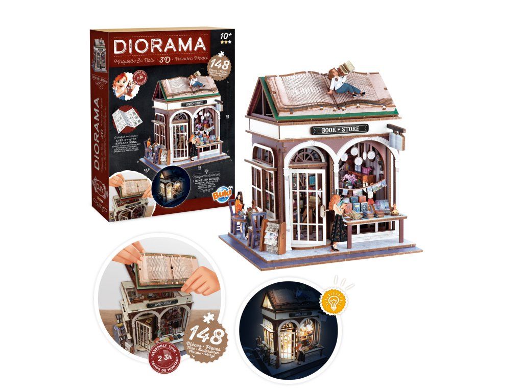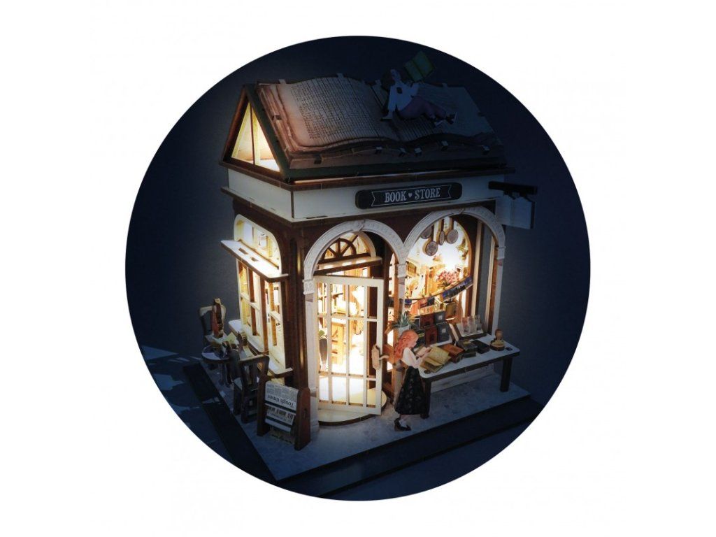 Zostavte drevené diely a postavte si vlastné miniatúrne kníhkupectvo. Vytvorte si útulnú a pokojnú atmosféru plnú kníh pomocou detailne spracovaných prvkov – lepte, strihajte a umiestňujte nábytok, doplnky, rastliny aj knihy presne podľa vašej predstavy.