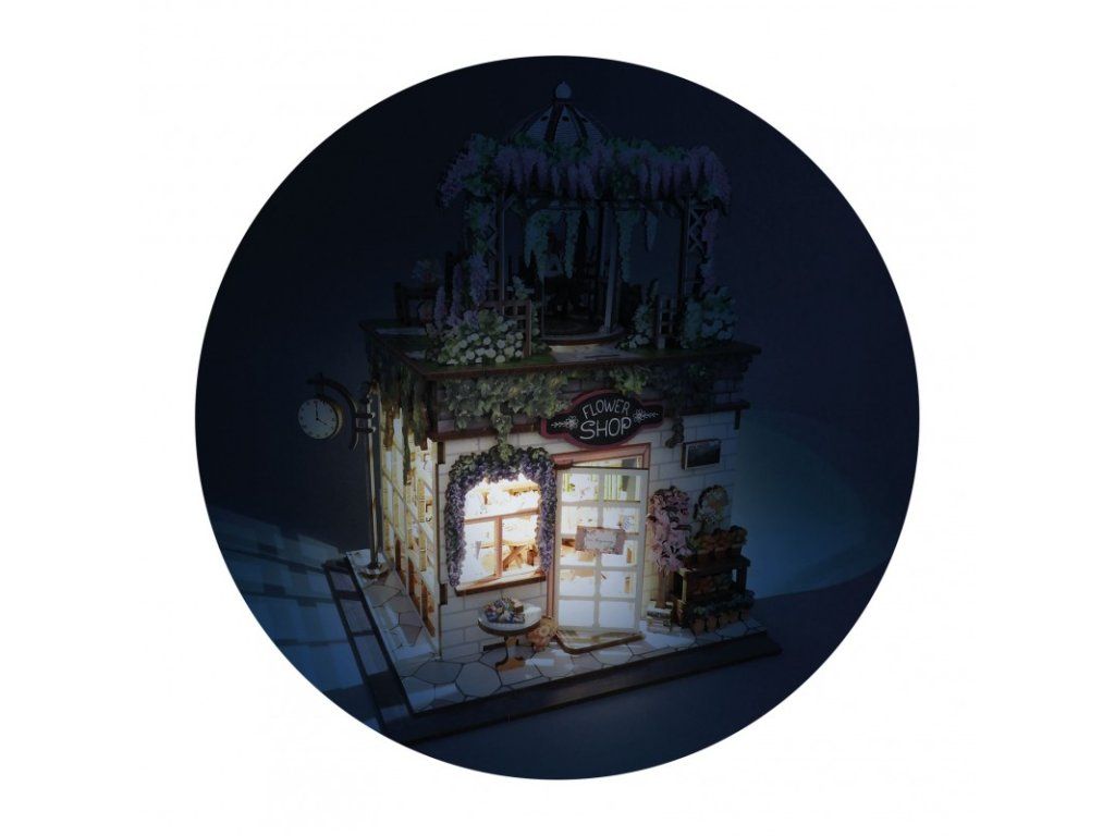 Zostavte drevené diely a postavte si vlastné miniatúrne kvetinárstvo. Vytvorte si príjemnú a sviežu atmosféru plnú farieb pomocou detailne spracovaných prvkov – lepte, strihajte a umiestňujte nábytok, doplnky, rastliny aj kvety presne podľa vašej predstavy. Vďaka očíslovaným dielom a prehľadnému návodu je skladanie jednoduché a zábavné.
