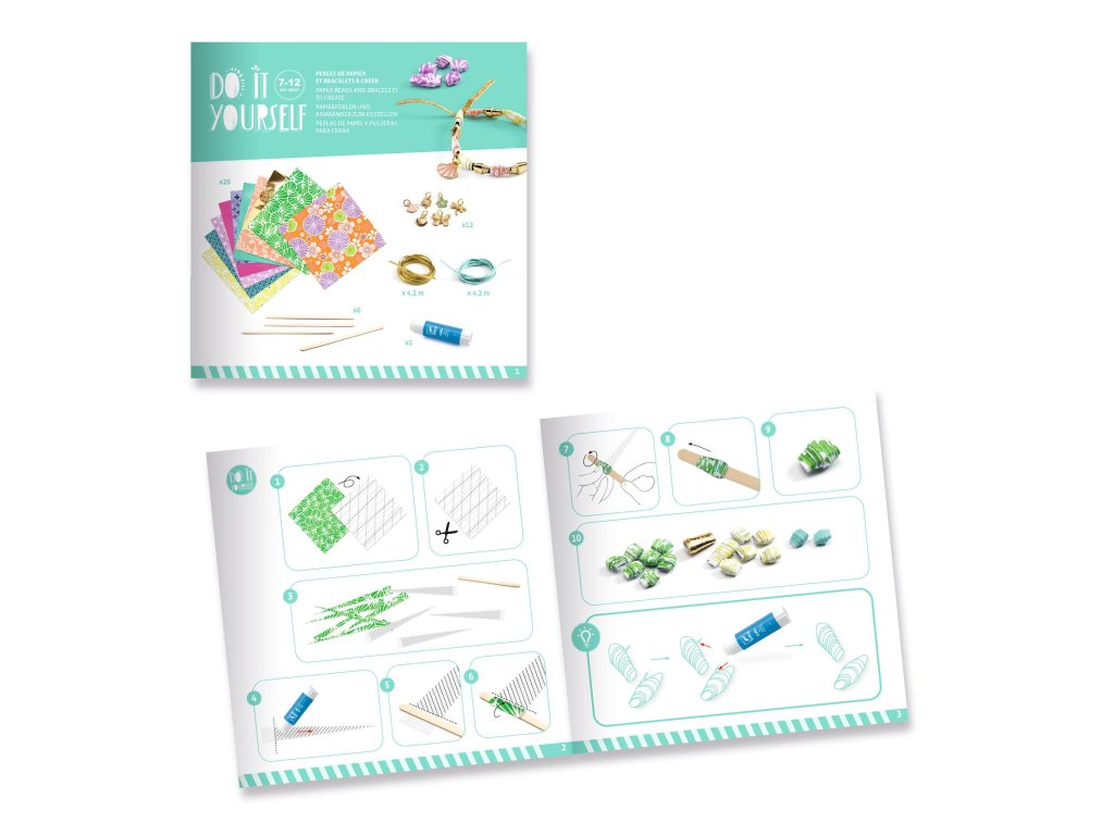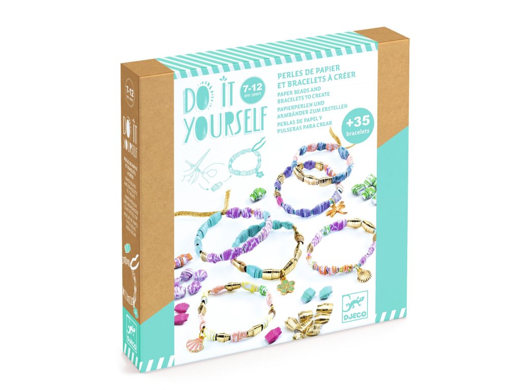 DIY – Vytvor si sám: Štýlové a zlaté náramky a papierové korálkyKreatívna DIY sada na výrobu farebných náramkov pre detiDIY – Štýlové a zlaté náramky je originálna kreatívna sada značky Djeco, ktorá umožní deťom vytvoriť si vlastné farebné a zlaté papierové náramky pomocou korálok z papiera. Súprava obsahuje všetko potrebné – farebné papiere, šnúrky, prívesky aj návod – aby si deti mohli pripraviť množstvo krásnych doplnkov podľa svojej fantázie.Prečo si vybrať túto kreatívnu sadu od Djecovhodná pre deti od 7 rokovveľa farebných papierových prúžkov na výrobu korálokzlaté a farebné prívesky na ozdobenie náramkovpodporuje kreativitu a vlastnú tvorbu doplnkovznačka Djeco so starostlivo navrhnutým dizajnomČo sada rozvíja u detíjemnú motoriku pri tvorbe a navliekaní korálokkreatívne a estetické cítenietrpezlivosť a sústredenieradosť z vlastnoručnej tvorbypriestorovú predstavivosť pri kombinovaní fariebKolekcia DIY (Vytvor si sám) má blízko k úžitkovému umeniu a umožňuje deťom zhotoviť si umelecké výrobky, ktoré si môžu nielen hrdo vystaviť, ale ich aj používať.Obsah balenia20 papierových hárkov (na viac než 400 korálok)6 drevených paličiek na rolovanie korálokmodrá a zlatá elastická šnúra (gumička)12 zlatých príveskov rôznych tvarov (motýle, vážky, mušle, kvety a iné)tyčinkové lepidloobrázkový návod krok za krokomDodatočné parametre