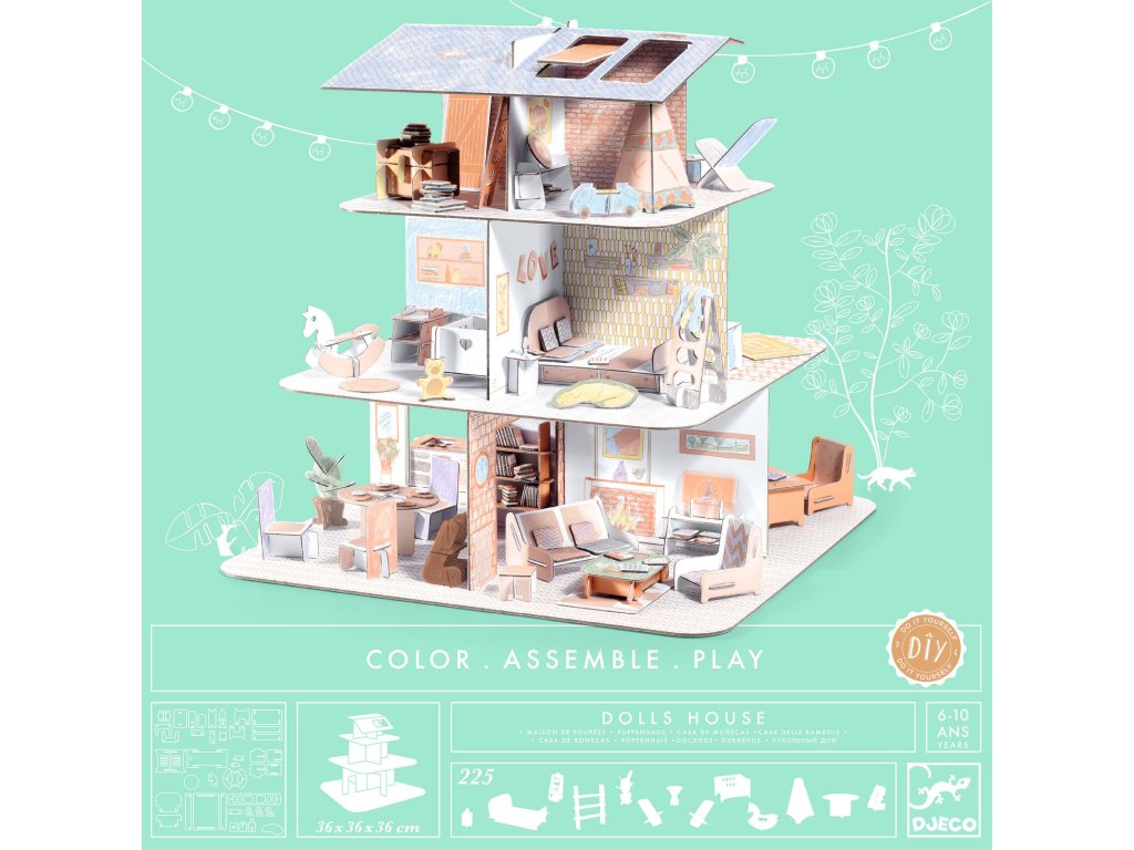 DIY Kreatívna sada Dom pre bábiky Vlastný domček do hry: poskladaj dom pre bábiky a dotvor ho ako malý architektDIY Kreatívna sada Dom pre bábiky je tvorenie, ktoré sa okamžite mení na hru. Deti si zostavia domček pre bábiky, dotvoria ho dekoráciami a potom ho môžu používať pri každodenných príbehoch. Dom je vhodný na hranie s figúrkami do 8 cm.Rýchly prehľad výsledok: domček do hry odporúčaný vek: od 6 rokov rozvíja: priestorové vnímanie, jemnú motoriku, kreativitu vhodné: pre deti, ktoré milujú bábiky a stavanieAko sa s tým tvorí Priprav diely a zorad ich podľa návodu. Poskladaj konštrukciu domčeka a upevni detaily. Dotvor dekorácie a začni sa hrať.Obsah balenia 1× domček (na zostavenie) 288× dielik nábytku a doplnkov 1× návod (s predlohami na vyfarbovanie)Technické parametre typ: DIY 3D model/domček použitie: hra a dekoráciaDodatočné parametre