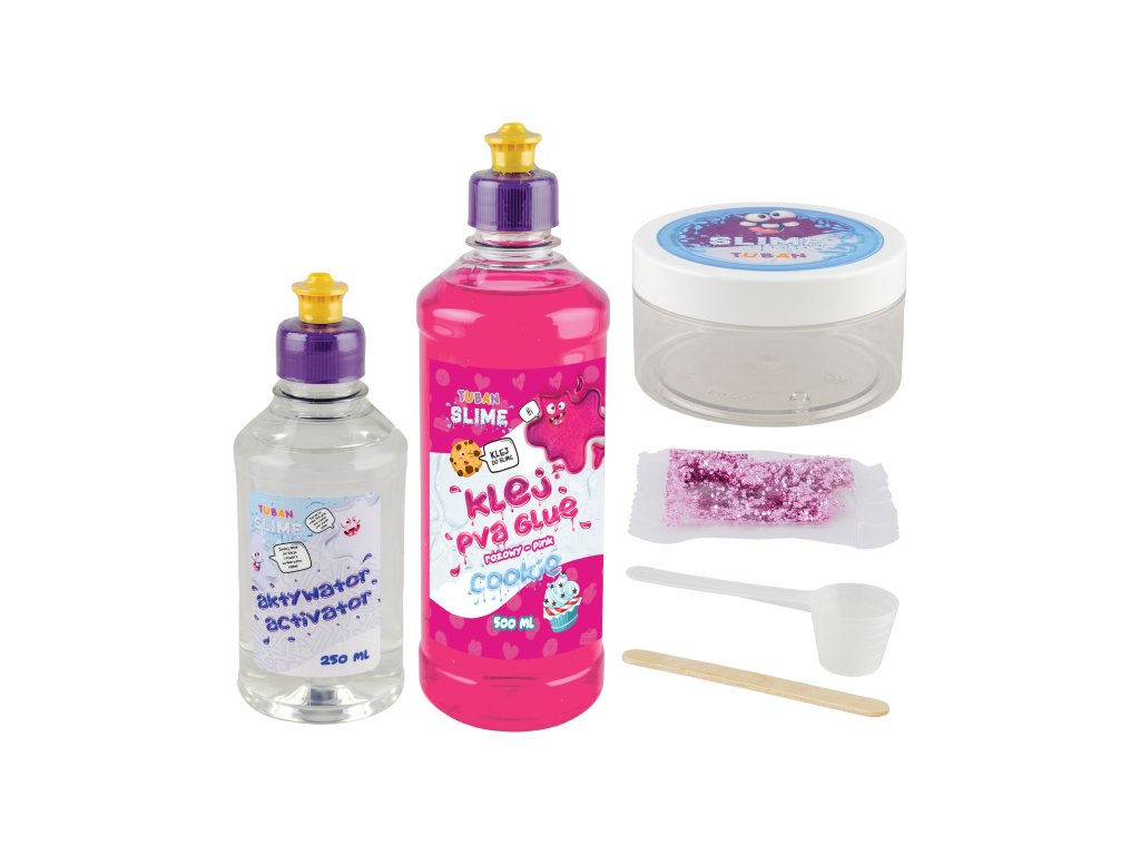 DIY Slime Sada na výrobu slizu Cookie XL XL sada pre ešte väčšie množstvo voňavého slizu Skvelá aktivita pre deti, ktoré radi experimentujú. V tejto sade nájdete všetko, čo na výrobu kvalitného slizu potrebujete. Všetko ešte vo väčších množstvách! Využite sadu na hranie pre viac detí alebo si vytvorte sliz viackrát. Vďaka vanilkovej aróme to bude najvoňavejší set so slizom, aký ste kedy mali. Hra so slizom je ideálna na rozvoj jemnej motoriky, zmyslového vnímania a podporuje u detí kreativitu.Sada obsahuje:500 ml ružového PVA lepidla,250 ml aktivátora,2,5 g ružových minerálnych trblietok,špachtľu,odmerku,nádobu.Zábavný, edukačný, aj relaxačný Pre deti môže byť manipulácia so slizom upokojujúca a relaxačná. Je to skvelý spôsob, ako si oddýchnuť a znížiť stres po náročnom dni. Objavte všetky DIY slizy a hotové Jiggly slimes rôznych farieb a vôní.Sliz je vyrobený z bezpečných a netoxických materiálov, ktoré sú šetrné k životnému prostrediu, neobsahujú borax. Po hre odporúčame sliz uložiť do priloženej nádobky a dobre uzavrieť.Senzorická hra umožňuje deťom objavovať svet okolo seba prostredníctvom zmyslov Hranie s rôznymi textúrami, farbami a vôňami nielenže stimuluje ich zmyslové vnímanie, ale taktiež podporuje ich kognitívny vývoj, jemnú motoriku a emocionálnu inteligenciu. S produktmi značky Tuban môžu deti preskúmavať rôzne senzorické podnety a objavovať nové spôsoby učenia a zábavy.Dodatočné parametre