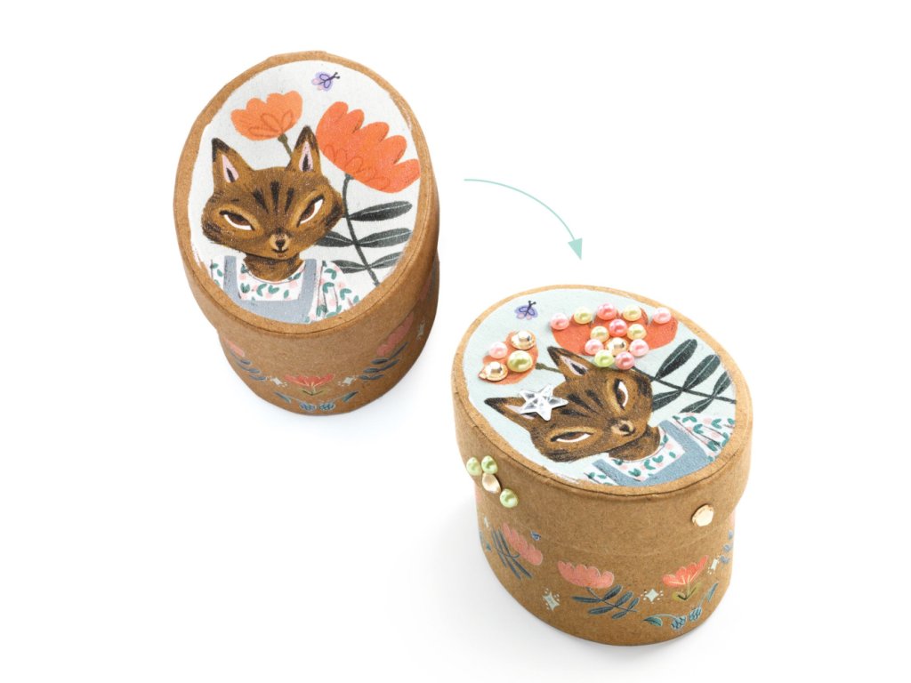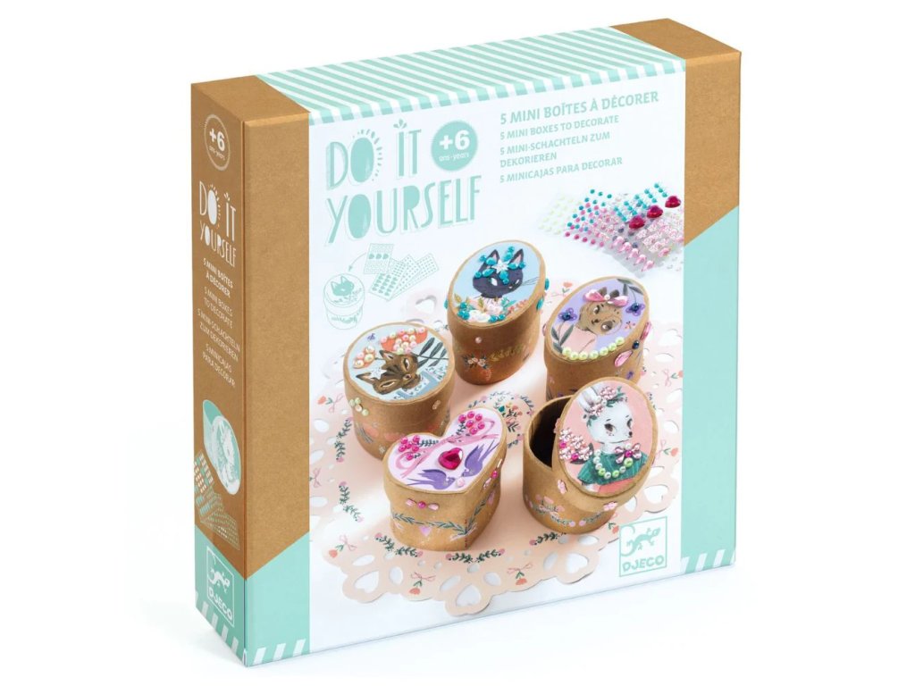 DIY Vyrob si sám Krabičky na poklady Kreatívna sada 5 mini škatuliek na ozdobenie diamantíkmiPonorte sa do sveta kreativity a vlastnoručne si vyrobte 5 nádherných mini krabičiek, ktoré sa stanú dokonalým úložiskom pre všetky vaše malé poklady. Každá škatuľka je skvostne ilustrovaná a deti si môžu ozdobiť veko samolepiacimi lesklými a perleťovými drahokamami, ktoré jej dodajú nádherný trblietavý efekt. Vďaka jednoduchému obrázkovému návodu je tvorba čistá, rýchla a zábavná, takže sa dieťa môže sústrediť na svoju fantáziu a kreativitu. Hotové krabičky nie sú len krásnou dekoráciou – môžu slúžiť ako praktické úložisko pre drobné poklady, šperky, drobné hračky alebo tajomstvá, ktoré chce dieťa uchovať. Súčasťou sady je aj papierová ozdobná dečka, ktorá môže slúžiť ako štýlová podložka, aby krabičky vyzerali ako súčasť malej pokladnice alebo umeleckej vitríny. Sada je vyrobená z kvalitného papiera a lepenky s ekologickým certifikátom FSC®, takže tvorenie je nielen zábavné, ale aj šetrné k prírode. Kolekcia DIY – Vytvor si sám umožňuje deťom spojiť umelecké vyjadrenie s úžitkovým účelom, a tak vznikajú výrobky, ktoré môžu nielen hrdo vystaviť, ale aj prakticky používať vo svojom každodennom živote. Obsah sady: 5 mini škatuliek z lepenky 4 hárky samolepiacich lesklých a perleťových drahokamov 1 papierová ozdobná dečka 1 obrázkový návod krok za krokom S touto sadou deti získajú hodiny kreatívnej zábavy, naučia sa trpezlivosti, jemnej motorike a estetickému cíteniu. Každá mini krabička sa stane unikátnym pokladom, ktorý odráža ich vlastnú fantáziu a tvorivý štýl.Dodatočné parametre