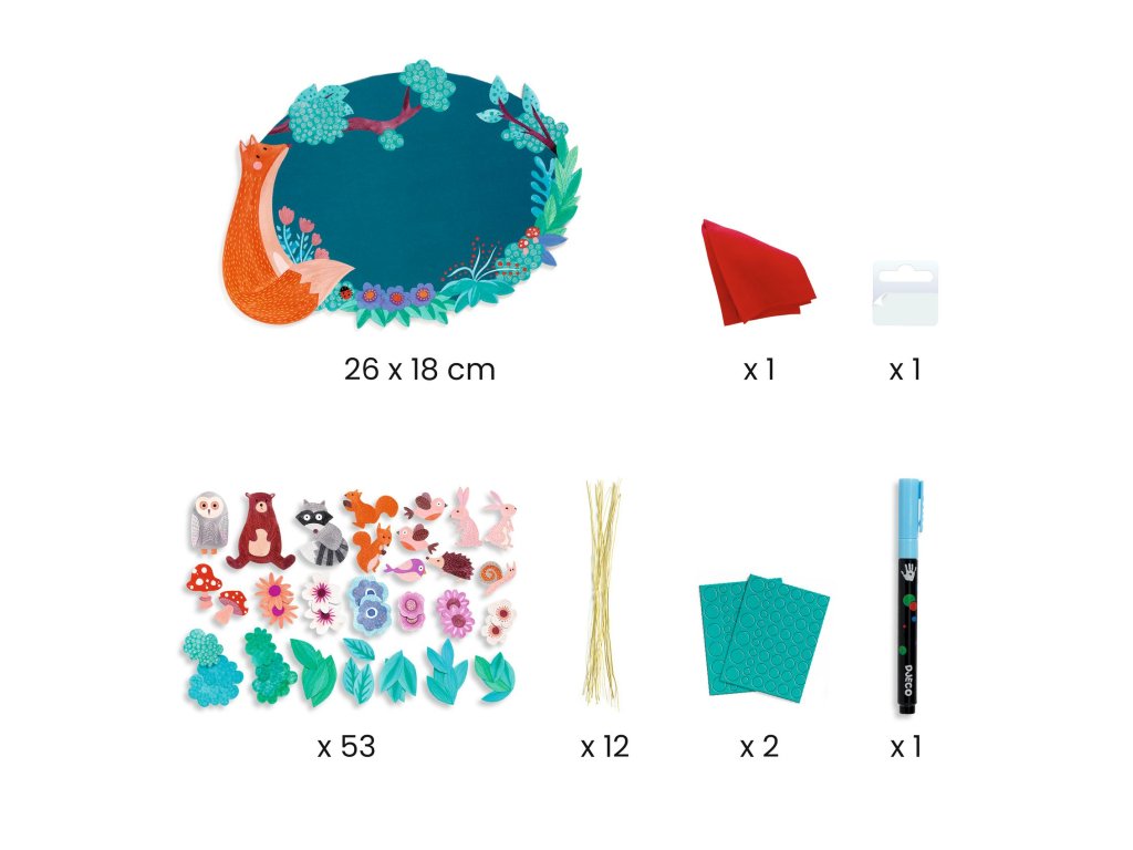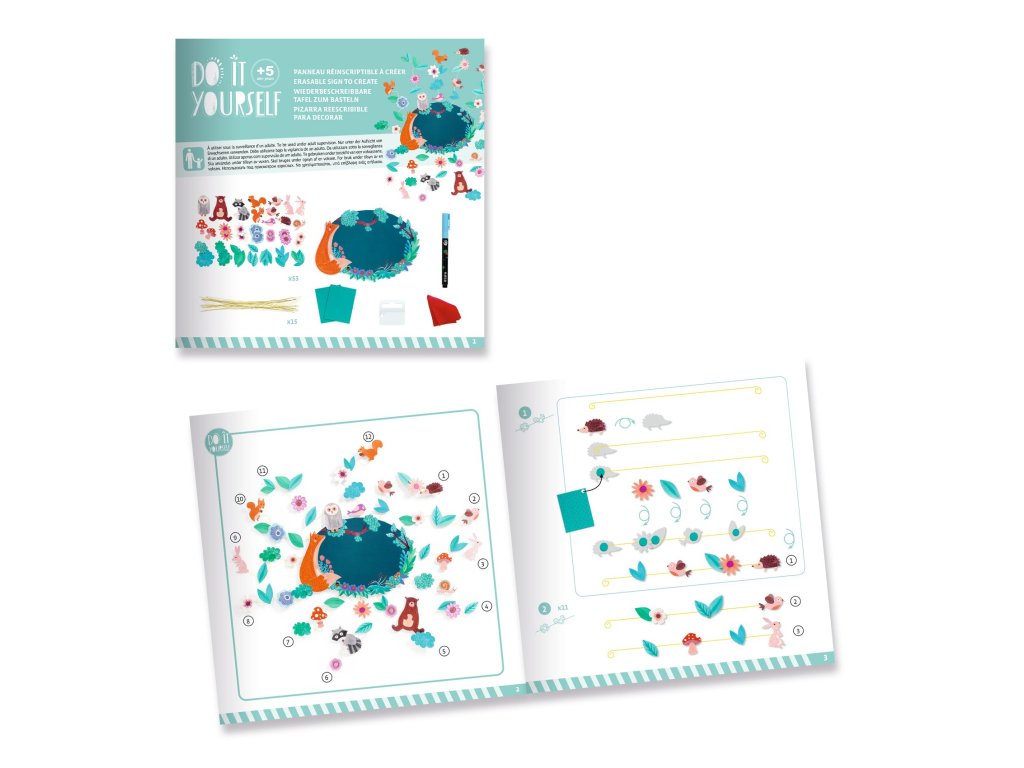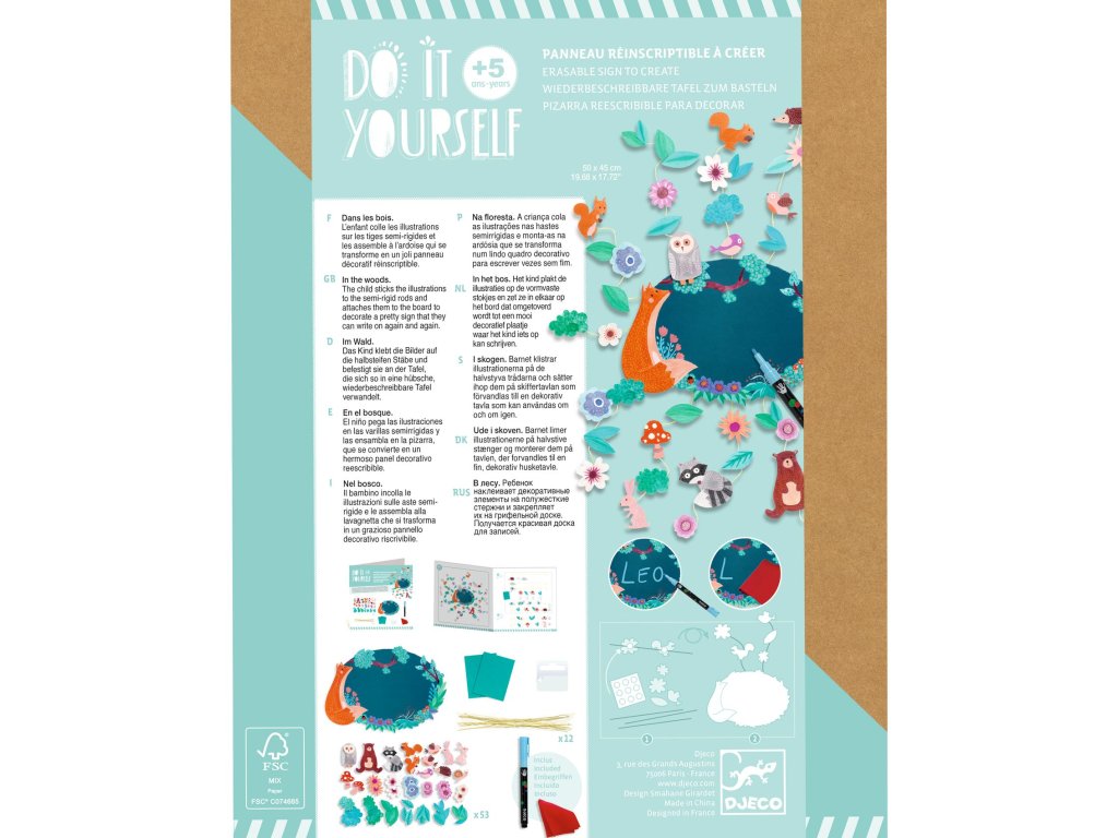 DIY Vyrob si sám Zotierateľná tabuľka V lese Lesné odkazy stále dookola: ozdob tabuľku zvieratkami a lístkami na drôtikoch a píš kriedovým popisovačomZotierateľná tabuľka V lese je kreatívna sada, v ktorej si deti vyrobia originálnu dekoráciu do izby aj praktickú tabuľku na odkazy.Pomocou hrubých penových samolepiek nalepia lesné dekorácie na farebné polotuhé drôtiky a tie potom pripevnia po okrajoch tabuľky – vznikne krásny „lesný rám“.Hotová tabuľka sa dá popisovať kriedovým popisovačom a jednoducho zotierať priloženou handričkou.Písacia plocha má úpravu proti poškriabaniu, takže je pripravená na nekonečné odkazy: menovka na dvere, pripomienky, „dnešný program“ alebo milé odkazy pre rodinu.Rýchly prehľad odporúčaný vek: od 5 rokov rozvíja: jemnú motoriku, kreativitu, trpezlivosť, priestorové vnímanie v balení: tabuľka, 15 drôtikov, 50+ dekorácií, 2 hárky hrubých samolepiek, háčik, popisovač, handrička, návodPrečo si ju deti zamilujú najprv tvoríš, potom používaš – dekorácia aj praktická tabuľka 3D efekt vďaka penovým samolepkám odkazy sa dajú meniť – píšeš a mažeš stále dookola lesné motívy (zvieratká, listy, kvety) pôsobia jemne a útulneAko to funguje Vyber dekorácie a pomocou hrubých penových samolepiek ich prilep na drôtiky. Ozdobené drôtiky pripevni k tabuľke podľa návodu – vytvoria lesný rám. Na stenu nalep samolepiaci háčik a tabuľku zaves. Napíš odkaz kriedovým popisovačom a zotri ho handričkou, keď chceš nový.Obsah balenia 1× zotierateľná tabuľka na ozdobenie 15× farebný polotuhý drôtik 50+ predvyrezaných dekorácií s lesnými motívmi 2× hárok hrubých a pevných samolepiek (penový efekt) 1× samolepiaci háčik na zavesenie 1× kriedový popisovač zotierateľný nasucho 1× handrička 1× obrázkový návod krok za krokomTechnické parametre materiál: papier a kartón (FSC), plastový popisovač, textilná handrička rozmery hotovej tabuľky: cca 45 × 50 × 1 cm rozmery balenia: cca 20 × 26 × 5 cm povrch: úprava proti poškriabaniuDodatočné parametre