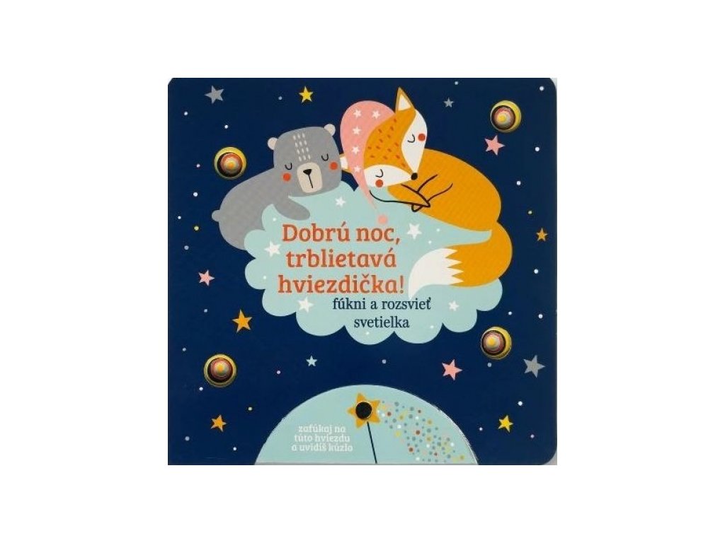 Dobrú noc, trblietavá hviezdička!Príbeh, ktorý rozžiari detskú fantáziuDobrú noc, trblietavá hviezdička! je interaktívne leporelo pre deti, ktoré prináša príbeh líštičky, medvedíka a ďalších zvieratiek. Deti sa môžu tešiť na svetielka, ktoré rozžiaria oblohu a vytvoria kúzelnú atmosféru večera. Leporelo spája zábavu a učenie, podporuje zmyslové vnímanie, jemnú motoriku a predstavivosť detí. Príbehy o zvieratkách učia empatii, priateľstvu a starostlivosti o druhých. Perfektné ako darček na večerné čítanie alebo na zmyslové objavovanie pre najmenšie deti.