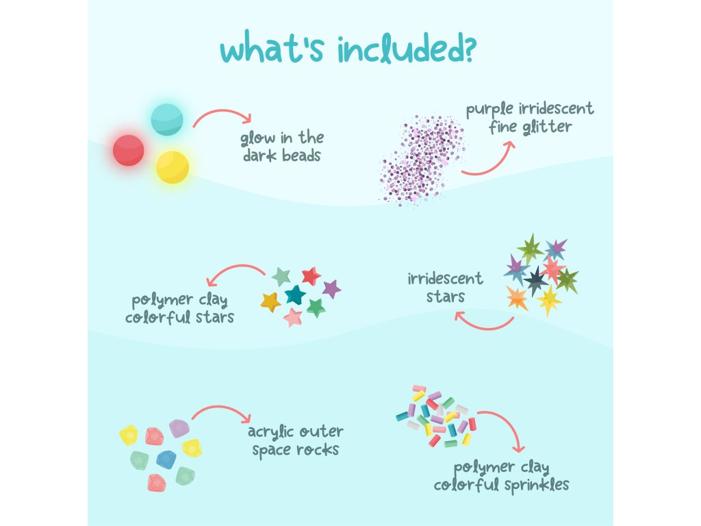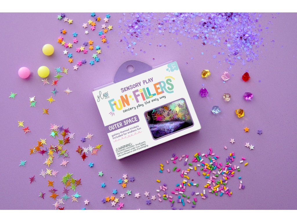 Doplnky do senzorickej fľaše SpaceMagické doplnky pre ešte kreatívnejšiu senzorickú hru Objavte čaro Space sveta s Doplnkami do senzorickej fľaše Space, ktoré premenia každú senzorickú aktivitu na hravé dobrodružstvo plné farieb, textúr a pohybu. Táto tematická sada obsahuje starostlivo vybrané prvky, ktoré v okamihu oživia Glo Pals senzorické fľaše, ale aj hry s vodou, ryžou, plastelínou, slizom či akoukoľvek senzorickou misou. Space doplnky podporujú kreativitu, zmyslové objavovanie a jemnú motoriku. Deti môžu vytvárať príbehy, skúmať predmety, sledovať ich pohyb a rozvíjať predstavivosť. Stačí len pridať malé množstvo – a z obyčajnej hry sa stane úplne nový zážitok. Tip: Na použitie stačí naozaj málo. Zvyšok si odložte na ďalšie dni plné objavovania. Ako sa o Fun Fillers starať: Po hre odstráňte všetky doplnky zo senzorickej nádoby alebo vody. Nenechávajte ich vo vode dlhšie ako 24 hodín, aby si zachovali kvalitu.Dodatočné parametre