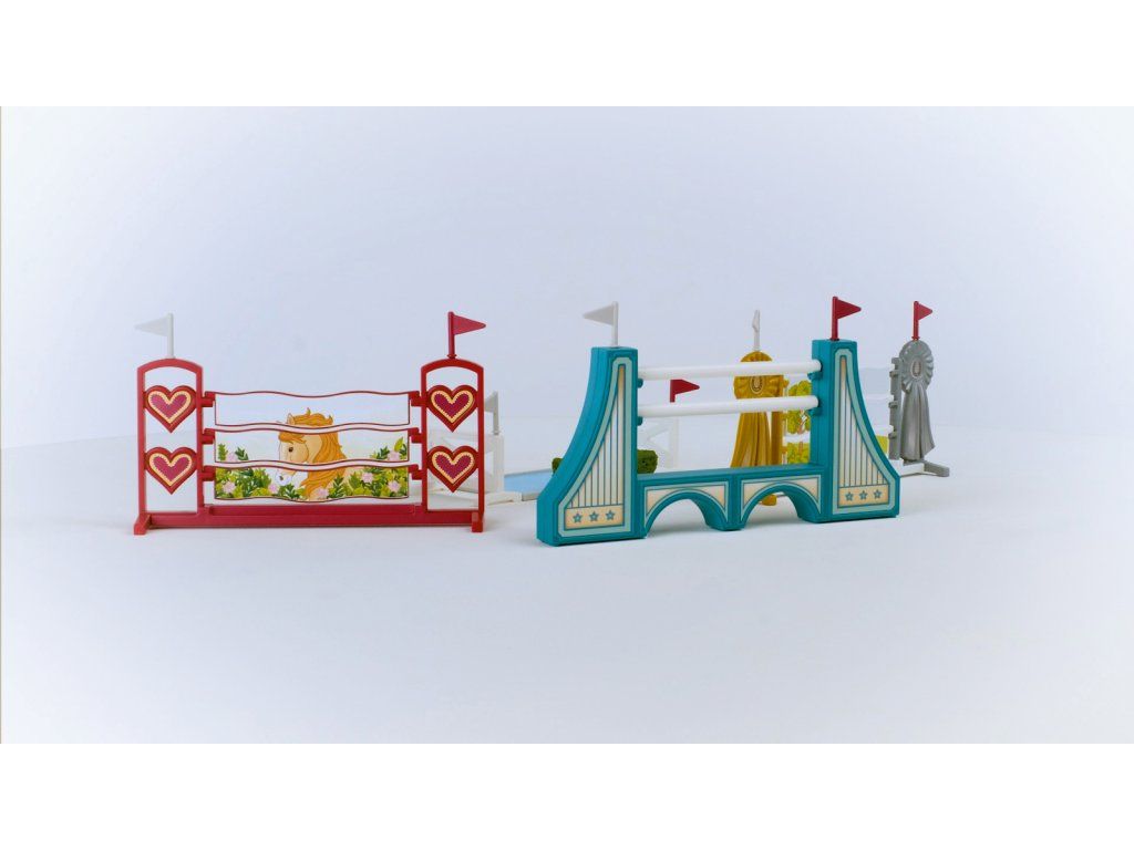 Tréning je zábava, ale víťazstvo na súťaži v skokoch cez prekážky je ešte lepšie! S prekážkami z kolekcie HORSE CLUB od schleich® zvládneš so svojím koňom oboje. Aby bol tréning čo najefektívnejší, môžeš výšku prekážok postupne zvyšovať. Takto môžeš svojho koňa pomaly zoznamovať so skokmi podľa toho, čo zvládne, a postupne zlepšovať jeho techniku. Až bude pripravený, môžete sa vydať na skutočnú prehliadku. Je tu dokonca priekopa a živý plot, pred ktorým je nádrž s vodou. Ešte, že ste pred tým toľko trénovali! Rozmery: 19x15x6cm. Vhodné pre deti od 3 rokov.Dodatočné parametre