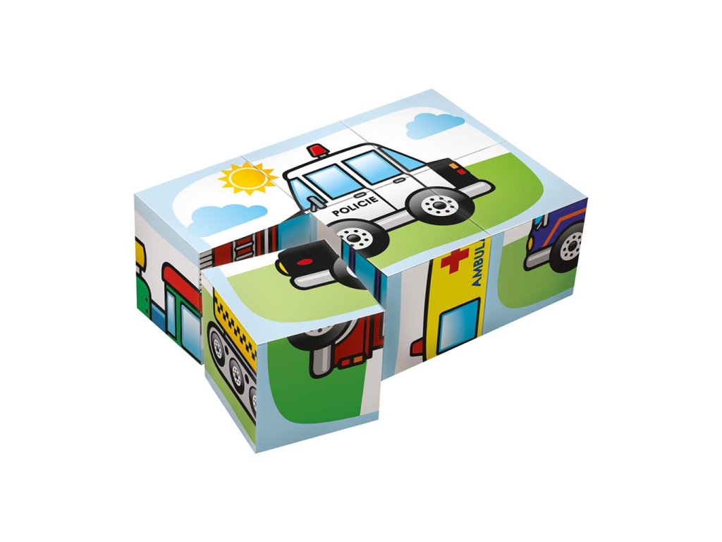 Detské drevené kocky, z ktorých je možné zostaviť 6 rôznych obrázkov. Balenie obsahuje 6 kociek. Vek: 3+Dodatočné parametre