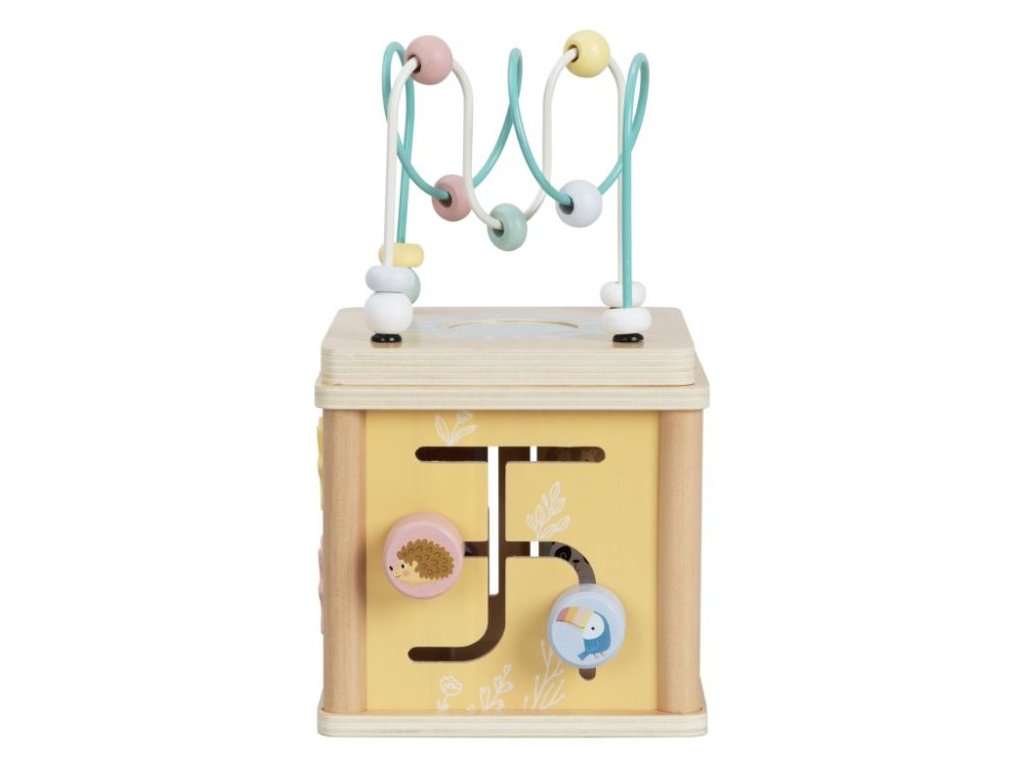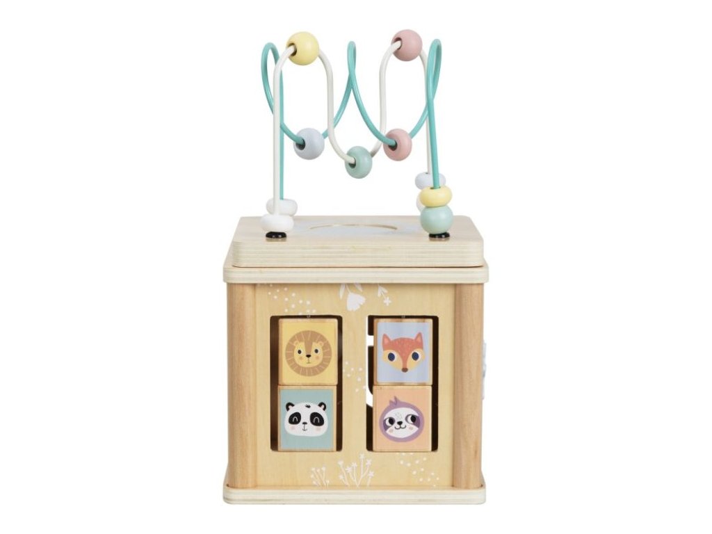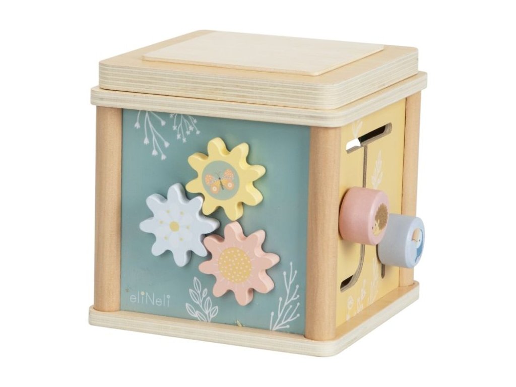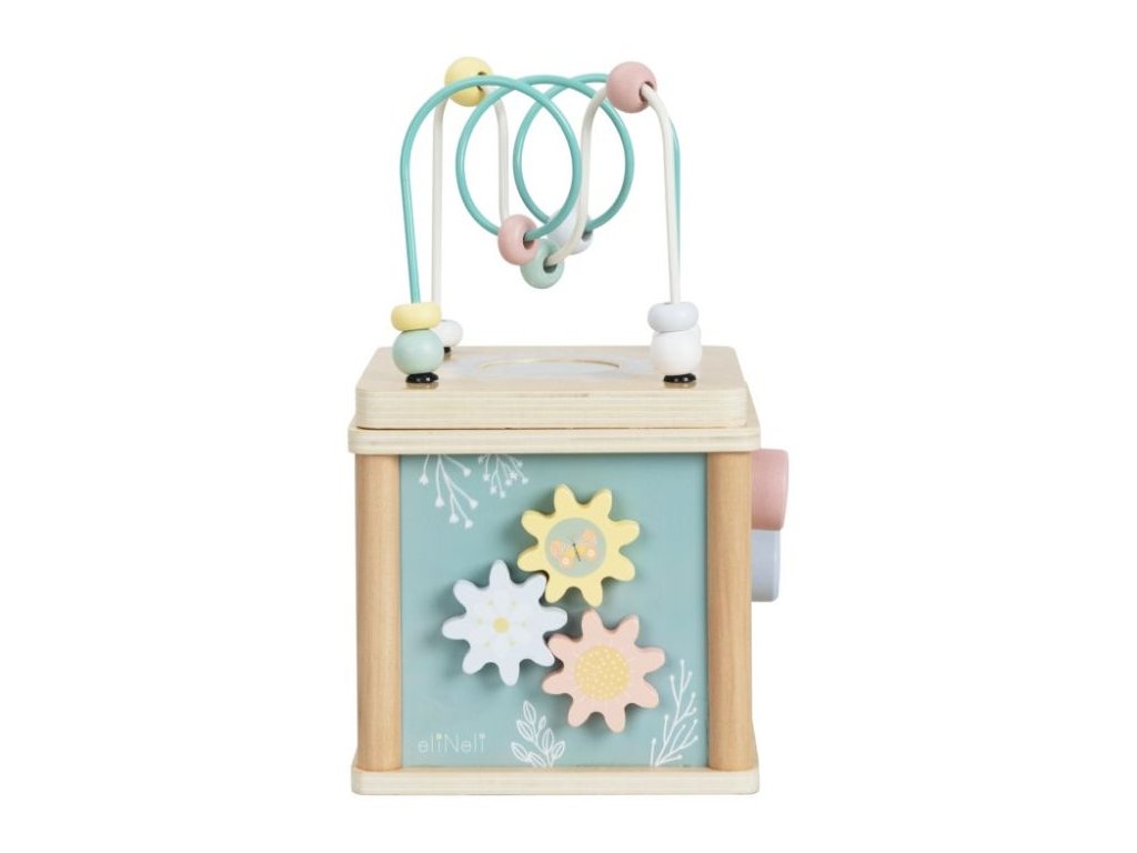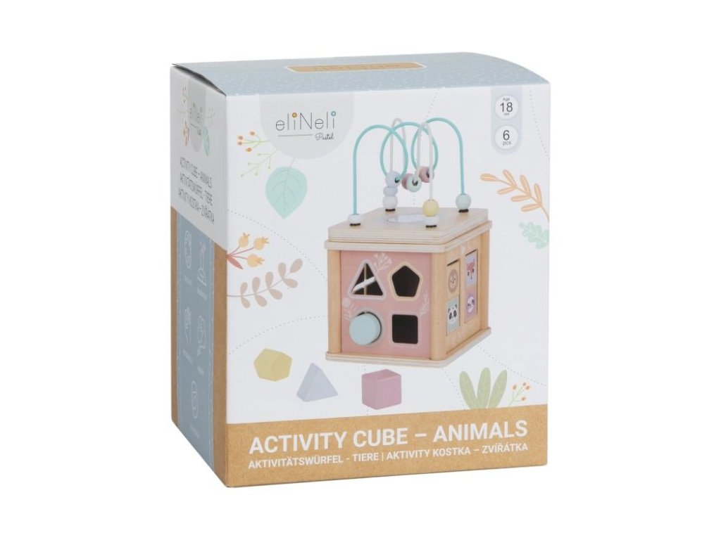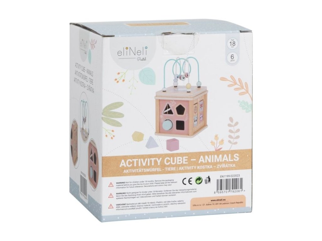 eliNeli je česká značka drevených hračiek a nábytku s jedinečným farebným dizajnom a so zahraničnou výrobou. Produkty eliNeli rozvíjajú kreativitu a pohybový potenciál detí, skvele zapadnú do interiéru a vracajú sa k tradičnému materiálu — k drevu. Unikátna na značke je dizajnová kombinácia prírodných a neskorých letných až jesenných farieb, ktoré sa hodia do minimalistického scandi interiéru, a ktoré inde nenájdete. To všetko za veľmi dostupné ceny. Drevená activity cube (kocka) so zvieratkami si pre deti pripravila množstvo aktivít, ktoré potrénujú a zdokonalia detské schopnosti. Aktivity kocka vyrobená z masívneho dreva, preglejky a MDF ponúka množstvo možností na hranie. Samotné veko (hornú stranu) drevenej kocky predstavuje zábavné bludisko v pastelových farbách, ktoré deťom so svojimi zakrútenými drôtikmi a drevenými korálkami trochu zamotá hlavu. Jedna zo strán je vkladačkou, druhá bludiskom, tretia rozkvitnutou lúkou s kvetinami v podobe ozubených koliesok a štvrtá zábavnou hrou s otočnými doštičkami. Každá strana kocky je originálna a prináša iné dobrodružstvo, napriek tomu všetky majú niečo spoločné - zdokonaľujú jemnú motoriku, koordináciu očí a rúk, logické myslenie, priestorovú predstavivosť, manuálnu zručnosť, učia sa samostatnej hre, sústrediť sa a trpezlivosti. Prečo vybrať túto activity kocku: Kvalitná výroba - kocka je vyrobená prevažne z prírodných materiálov, z dreva. Hračka aj vzdelávacia pomôcka - kocka s aktivitami je hračkou aj vzdelávacou pomôckou. Pastelové farby a zvieratká - hracie prvky, farebné prevedenie a zvieratká zo ZOO aj z lesa upútajú pozornosť každého dieťaťa. Každá strana nové dobrodružstvo - každá strana drevenej kocky obsahuje iné hracie prvky, pre zdokonalenie rôznych schopností, ktoré umožnia zábavnú hru malým aj väčším deťom. Drôtikové bludisko - na hornej strane aktivity kocky nájdu deti drôtikové bludisko s korálkami, kde si dokonale potrénujú motorické schopnosti. Horný diel s bludiskom je možné z kocky zložiť a opäť nasadiť alebo zasunúť do kocky. Vkladačka - jedna zo strán drevenej kocky je vkladačkou so 4 otvormi pre 4 vkladacie prvky rôznych geometrických tvarov. Otočné doštičky - zvieratká z lesa aj zo ZOO si pre deti pripravili zábavnú hru. Čo ukrývajú doštičky s levom, s líškou, pandou a leňochom na zadnej strane? Ozubené kolieska - farebné ozubené kolieska, predstavujúce kvetiny, sú vzájomne prepojenými prvkami. Stačí otáčať jedným z koliesok a do pohybu sa dajú hneď všetky tri. Bludisko - vydajte sa na prechádzku s levom alebo tukanom bludiskom. Táto hra dokonale potrénuje detské schopnosti. Zdokonaľuje a rozvíja - prirodzeným spôsobom, pomocou hry, deti rozvíjajú svoje zručnosti, schopnosti, kreativitu, fantáziu. Jednoduchá manipulovateľnosť - interaktívnu hračku si deti samé prenesú tam, kde sa chcú hrať. Bezpečná hračka pre deti - všetky hrany sú zaoblené a dohladka obrúsené. Na náter sa používajú vodou riediteľné farby, vhodné a bezpečné pre deti. Technické parametre: Rozmery: 28,7 x 15,8 x 15,8 cm. Materiál: borové drevo, preglejka, MDF, kov. Certifikáty: CE, 2009/48/ES, EN 71-1, EN 71-2 a EN 71-3. Odporúčaný vek: od 18 mesiacov, 18m+. Viac o produktoch eliNeli nájdete na: https://www.elineli.eu/sk/. Často kladené otázky: Je hračka bezpečná pre deti? Drevená kocka eliNeli je testovaná, vhodná a bezpečná pre deti a vydrží vašim deťom dlho. Spĺňa požiadavky smernice o bezpečnosti hračiek 2009/48/ES a normy o nezávadnosti a bezpečnosti hračiek EN 71-1, 2, 3, kedy sa testujú mechanické a fyzikálne vlastnosti, horľavosť aj migrácia určitých látok. Aktivity kocku otestoval a Certifikát o zhode (Osvedčenie o zhode - CE) udelil technický a skúšobný ústav. U activity kocky eliNeli máte istotu, že je pre vaše deti vhodná a bezpečná, je testovaná, na náter sú použité netoxické, zdravotne nezávadné laky a farby.