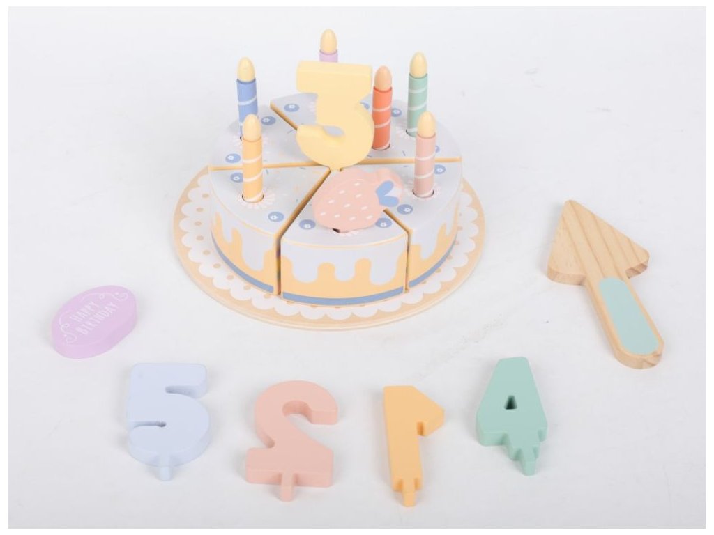 Pozrite sa na krásne spracovanie narodeninovej torty so sviečkami: Značka eliNeli prináša do detského sveta moderný dizajn v spojení s moderným európskym štýlom inšpirovaným nemeckou kvalitou a dizajnom. Prioritou pri výrobe sú prírodné materiály, prírodné drevo, čím podporuje udržateľnosť a bezpečnosť hračiek. Nové výrobky prechádzajú prísnymi bezpečnostnými testami TÜV Rheinland, čo zaisťuje bezpečnú hru deťom a pokoj rodičom. S eliNeli sa deti učia, tvoria a rastú v bezpečnom a podnetnom prostredí, ktoré nielen spĺňa, ale prekonáva ich očakávania. Drevená narodeninová torta s drevenými sviečkami a číslicami je originálnou drevenou hračkou, ktorá umožní deťom pripravovať narodeninové oslavy a oslavovať narodeniny pokojne každý deň. Ak mal včera narodeniny plyšový medvedík, je celkom možné, že zajtra bude mať narodeniny plyšový králiček alebo iný plyšák zo zbierky vášho dievčatka alebo chlapca. S drevenou tortou, ktorá je krájacia, teda už naporciovaná, bude príprava oslavy zábavnou hrou. Torta v jemných pastelových farbách je hračkou, s ktorou sa môžu hrať deti samostatne aj skvelým doplnkom do detskej kaviarne, cukrárne, obchodíka alebo detskej kuchynky. Prečo kúpiť túto tortu: Prírodný materiál - eliNeli kladie dôraz na výrobu z dreva a prírodných materiálov, čím zaisťuje ekologickú šetrnosť a bezpečnosť hračiek. Hračka aj doplnok - samotná torta je parádnou hračkou, s ktorou môžu deti oslavovať narodeniny pokojne každý deň. Zároveň je skvelým doplnkom do detskej kuchynky, obchodíka, cukrárne alebo kaviarne, kde deti môžu predávať tortu už naporciovanú. Zdokonaľuje schopnosti - pri hre s narodeninovou tortou deti zdokonaľujú motorické schopnosti, koordináciu očí a rúk, manuálnu zručnosť, hrajú role, rozvíjajú komunikačné schopnosti, budujú sociálne väzby. Vysoké bezpečnostné štandardy - hračka prešla prísnymi nemeckými bezpečnostnými testami TÜV Rheinland, čo zaručuje maximálnu bezpečnosť pre vaše deti. Neutrálne farby - vďaka neutrálnym pastelovým farbám je narodeninová torta vhodným darčekom pre dievčatká aj chlapcov. Hračka bezpečná pre deti - drevená torta je vyrobená prevažne z prírodných materiálov, na náter sa používajú vodou riediteľné laky a farby, netoxické, vhodné a bezpečné pre deti. Technické parametre: Rozmer: 17 x 17 x 10,5 cm. Rozmer balenia: 41 x 20 x 37 cm. Počet dielov v balení: 21. Hmotnosť: 608 g. Materiál: borové drevo, drevo Schima, preglejka, MDF. Certifikáty a normy: CE, 2009/48/ES, TÜV Rheinland, EN 71-1, 2 a 3. Odporúčaný vek: od 18 mesiacov, 18m+. Viac o produktoch eliNeli nájdete na: https://www.elineli.eu/sk/. Často kladené otázky: Je hračka bezpečná pre deti? Drevená hračka narodeninová torta eliNeli je testovaná, vhodná a bezpečná pre deti a vydrží vašim deťom dlho. Hračka prešla prísnymi bezpečnostnými testami TÜV Rheinland. Spĺňa požiadavky smernice o bezpečnosti hračiek 2009/48/ES a normy o nezávadnosti a bezpečnosti hračiek EN 71-1, 2, 3, kedy sa testujú mechanické a fyzikálne vlastnosti, horľavosť aj migrácia určitých látok. Drevenú narodeninovú tortu otestoval a Certifikát o zhode (Osvedčenie o zhode - CE) udelil technický a skúšobný ústav. U drevenej torty pre deti eliNeli máte istotu, že je hračka pre vaše deti vhodná a bezpečná, je testovaná, na náter sú použité netoxické, zdravotne nezávadné laky a farby.