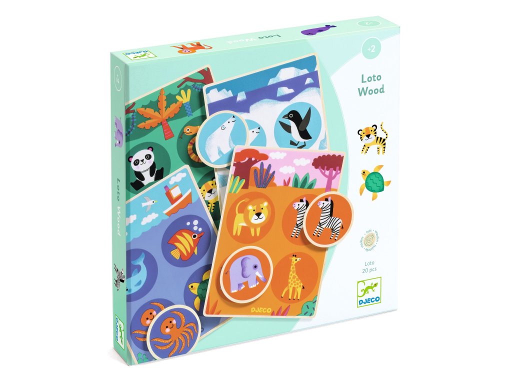 Drevená spoločenská hra: Zvieratká sveta, 20 dielovEdukačná priraďovacia a pamäťová hra s farebnými zvieratkamiDrevené loto – Zvieratká sveta od Djeco je krásne spracovaná edukačná stolová hra, ktorá deti hravou formou učí poznávať zvieratká a ich prirodzené prostredie – les, more, savanu a polárnu oblasť. Hra kombinuje priraďovanie, pamäť a pozorovanie, takže je zábavná a zároveň rozvíja dôležité zručnosti už od útleho veku.Herný postupKaždý hráč si vyberie jednu z 4 herných dosiek s farebným pozadím zobrazujúcim prostredie (napr. prales, more, savana, polárna oblasť).Hráči postupne ťahajú alebo otáčajú dieliky a snažia sa nájsť zvieratká, ktoré patria na ich dosku.Ak hráč nájde zvieratko, ktoré správne zodpovedá prostrediu jeho dosky, položí dielik na správne miesto.Vyhráva ten, kto ako prvý zaplní svoju dosku správnymi zvieratkami. Hru je možné hrať aj pamäťovo, keď si deti musia zapamätať, kde ležia jednotlivé zvieratká, čo ešte viac trénuje pozornosť a pamäťové schopnosti.Čo hra rozvíjarozpoznávanie zvierat a ich prostredífarebné rozlišovanie a vizuálne vnímaniepamäť a koncentráciuslovnú zásobu a opisovanie obrázkovjemnú motoriku pri manipulácii s dielikmiPre koho je hra určenáodporúčaný vek: od 2 rokovpočet hráčov: 1–4Obsah balenia4 herné dosky s obrázkami prostredí (les, more, savana, polárna oblasť)16 okrúhlych drevených dielikov so zvieratkaminávod na hruHra je vyrobená z kvalitného dreva s ekologickým certifikátom FSC®, čo zaručuje jej bezpečnosť, odolnosť a dlhú životnosť.Prečo si vybrať Zvieratká sveta od Djecojasná a jednoduchá hra vhodná už pre batoľatá od 2 rokovspája učenie so zábavoupomáha rozvíjať pamäť, koncentráciu a rečové zručnostifarebné ilustrácie a odolné dieliky vhodné pre malé rukyideálne pre domáce aj materské / škôlkarské aktivityDodatočné parametre