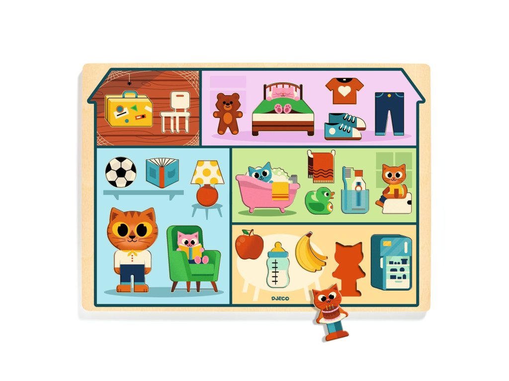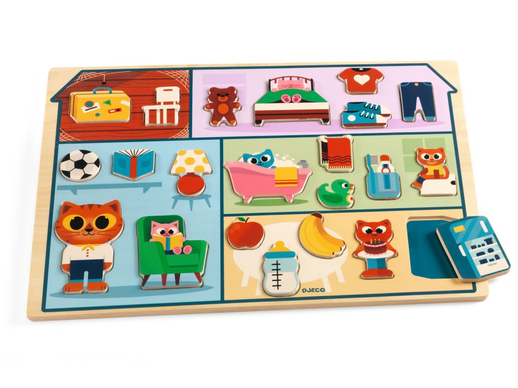 Drevené edukačné puzzle Dom Objavuj miestnosti v dome a uč sa hrouDrevené edukačné puzzle Dom je vkladacie puzzle z dreva, ktoré deťom pomáha spoznávať jednotlivé miestnosti v dome a ich využitie. Dieťa vkladá dieliky na správne miesto a postupne objavuje, čo všetko sa v dome nachádza.Každý dielik je prispôsobený malým detským rukám a ľahko sa uchopuje. Puzzle podporuje jemnú motoriku, logické myslenie a rozvíja slovnú zásobu, keď sa deti učia pomenovávať miestnosti a predmety.Pre koho sú vhodné: odporúčaný vek: od 2 rokovObsah balenia drevená puzzle doska vkladacie dielikyDodatočné parametre