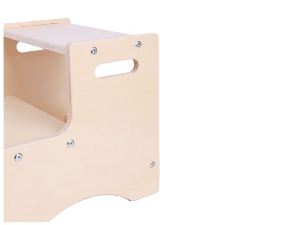 Multifunkčné schodíky pre deti Detské drevené schodíky v prírodnom prevedení sú praktickým pomocníkom do domácnosti s deťmi. Farebne vhodné pre dievčatká aj chlapcov, hodia sa do každého interiéru. Deti si môžu s ich pomocou podať obľúbenú hračku alebo knižku, pri čistení zúbkov môžu proces sledovať v zrkadle a pomoc rodičom v kuchyni tiež nebude žiadny problém. Po práci sa schodíky bez problému ujmú úlohy detskej stoličky. Deti sú vedené k samostatnosti a tým pomaly rastie aj ich sebavedomie pri plnení malých každodenných úkonov. Výrezy v bočných stranách uľahčia manipuláciu a prenášanie tohto malého, ale veľmi praktického pomocníka. Technické parametre: Rozmery: 32 x 32 x 30 cm (výška x šírka x dĺžka). Rozmery balenia: 5 x 35,5 x 31 cm (výška x šírka x dĺžka). Hmotnosť: 2,35 kg. Hmotnosť balenia: 2,7 kg. Materiál: preglejka, kov. Odporúčaný vek: od 36 mesiacov, 3+.