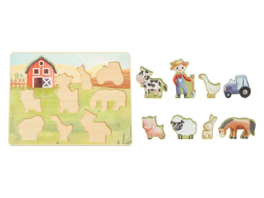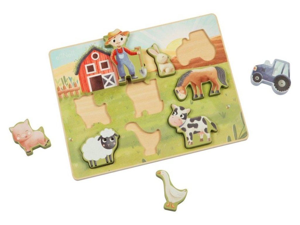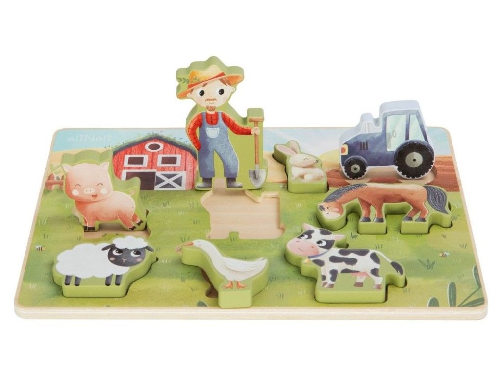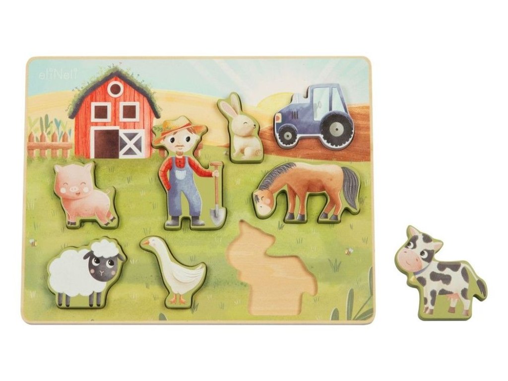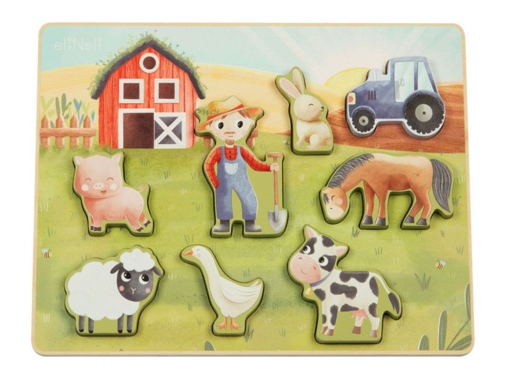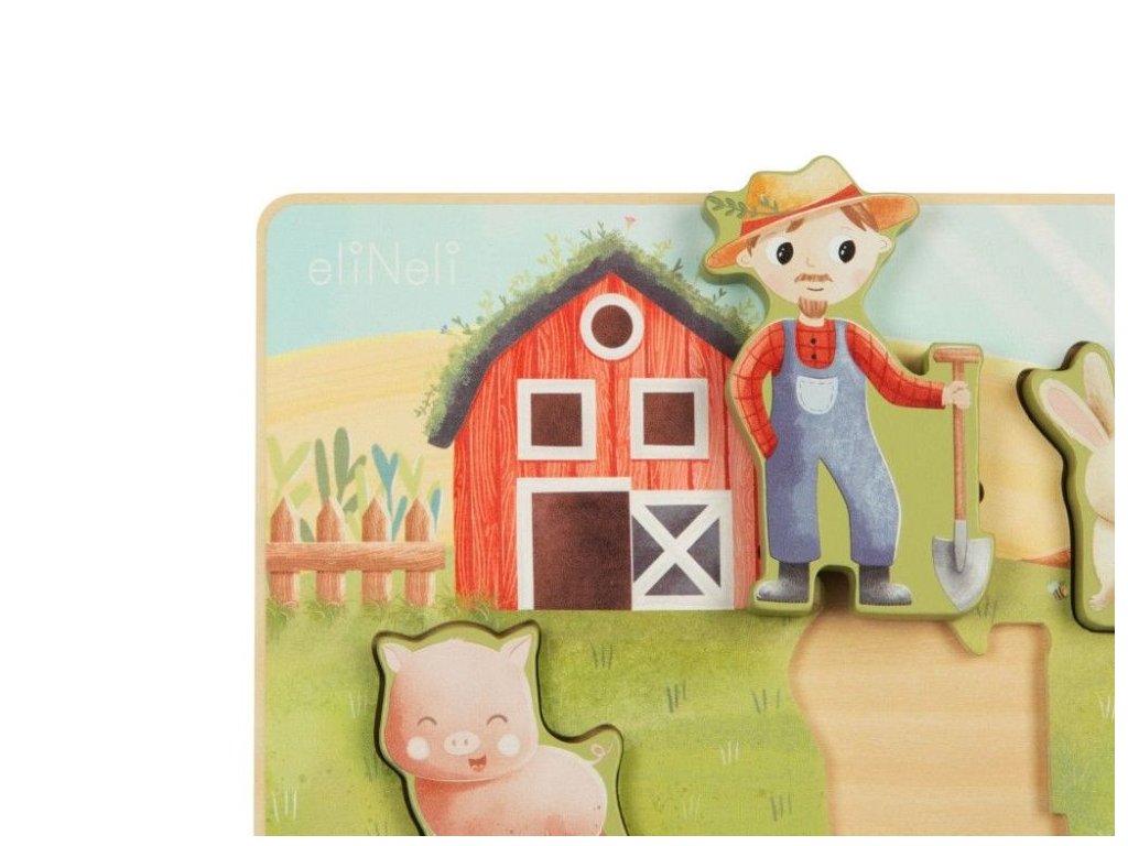 Puzzle pre deti s motívom farmy Drevené vkladacie puzzle s obľúbenými zvieratkami z farmy prináša zábavu deťom od 1 roka. Roztomilé drevené zvieratka - koník, kravička, prasiatko, ovečka, králiček a husička - zavedú deti na farmárov statok, kde si pri hre precvičia jemnú motoriku, koordináciu aj predstavivosť. Zároveň sa naučia spoznávať hospodárske zvieratká, farbičky a napríklad aj rozdiely vo veľkosti. Aby každé zvieratko správne zapadlo do svojho miesta, musia deti premýšľať, skúšať a otáčať dieliky, práve vďaka tomu sa rozvíja ich logické myslenie aj trpezlivosť. Prečo vybrať toto detské puzzle: Kvalitná výroba - vyrobené z prírodného dreva. Obľúbený motív - hracia doska s drevenými puzzle dielikmi v podobe roztomilých zvieratiek motivuje deti na hranie. Vkladacie - každý puzzle dielik predstavuje jedno z obľúbených zvieratiek z farmy, ktoré netrpezlivo čaká, až ho deti umiestnia do výbehu. Neutrálny motív a príjemné farby - puzzle bude krásnym darčekom pre dievčatká aj chlapcov. Rozvoj schopností - hra s puzzle má priaznivý vplyv na rozvoj jemnej motoriky, koordinácie očí a rúk, logického myslenia, priestorovej predstavivosti, kreativity, učí deti trpezlivosti a sústredeniu. Bezpečná hračka pre deti - puzzle je natreté bezpečnými, netoxickými, vodou riediteľnými farbami. Technické parametre: Rozmery: 29,4 x 21,9 x 1,5 cm. Materiál: preglejka, MDF. Certifikáty: CE, EN71-1,2,3. Odporúčaný vek: od 1 roka, 12m+. eliNeli je česká značka drevených hračiek a nábytku s jedinečným farebným dizajnom a so zahraničnou výrobou. Produkty eliNeli rozvíjajú kreativitu a pohybový potenciál detí, skvele zapadnú do interiéru a vracajú sa k tradičnému materiálu — k drevu. Unikátna na značke je dizajnová kombinácia prírodných a neskorých letných až jesenných farieb, ktoré sa hodia do minimalistického scandi interiéru, a ktoré inde nenájdete. To všetko za veľmi dostupné ceny. Viac o produktoch eliNeli nájdete na: https://www.elineli.eu/sk/. Často kladené otázky: Je hračka bezpečná pre deti? Drevené vkladacie puzzle eliNeli je testované, vhodné a bezpečné pre deti a vydrží vašim deťom dlho. Spĺňa požiadavky smernice o bezpečnosti hračiek 2009/48/ES a normy o nezávadnosti a bezpečnosti hračiek EN 71-1, 2, 3, kedy sa testujú mechanické a fyzikálne vlastnosti, horľavosť aj migrácia určitých látok. Detské puzzle otestoval a Certifikát o zhode (Osvedčenie o zhode - CE) udelil technický a skúšobný ústav. S dreveným vkladacím puzzle od eliNeli máte istotu, že je hračka pre vaše deti vhodná a bezpečná, je testovaná, na náter sú použité netoxické, zdravotne nezávadné laky a farby.
