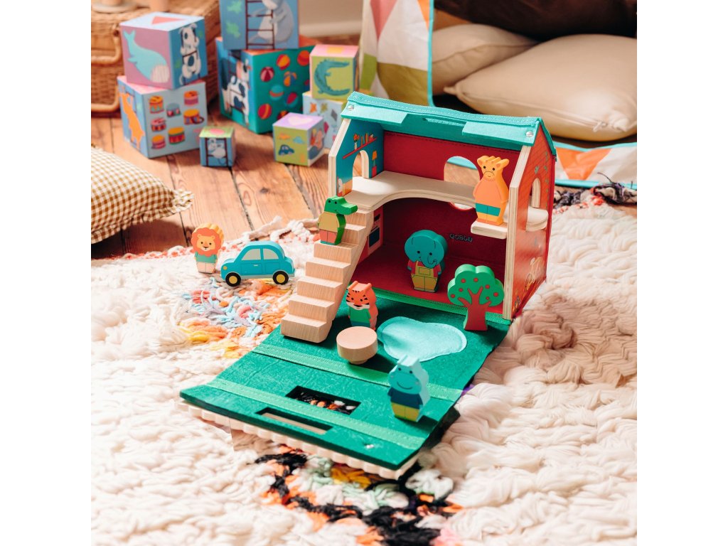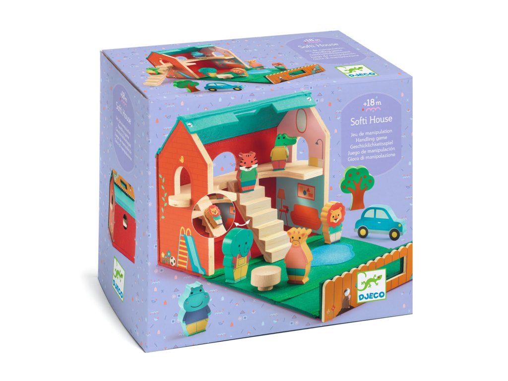 Drevený domček so zvieratkami SoftiHouse Prvý domček pre hru aj rozprávanie príbehovSoftiHouse je drevený domček so zvieratkami navrhnutý špeciálne pre najmenšie deti. Kombinuje jednoduchú manipuláciu, vkladanie figúrok a prvé rolové hry.Súčasťou domčeka sú figúrky zvieratiek, ktoré sa príjemne držia v detských rukách. Hra podporuje jemnú motoriku, koordináciu oko–ruka a rozvoj predstavivosti. Vďaka pevnému drevenému spracovaniu je domček vhodný aj na každodenné hranie.Pre koho je vhodný: odporúčaný vek: od 18 mesiacov ideálny ako prvá rolová hra vhodný na samostatnú hru aj hru s rodičomHlavné benefity drevený domček prispôsobený malým deťom rozvíja jemnú motoriku a priestorové vnímanie podporuje fantáziu a prvé príbehové hry odolné spracovanie vhodné na každodenné používanieObsah balenia drevený domček sada figúrok zvieratiekDodatočné parametre