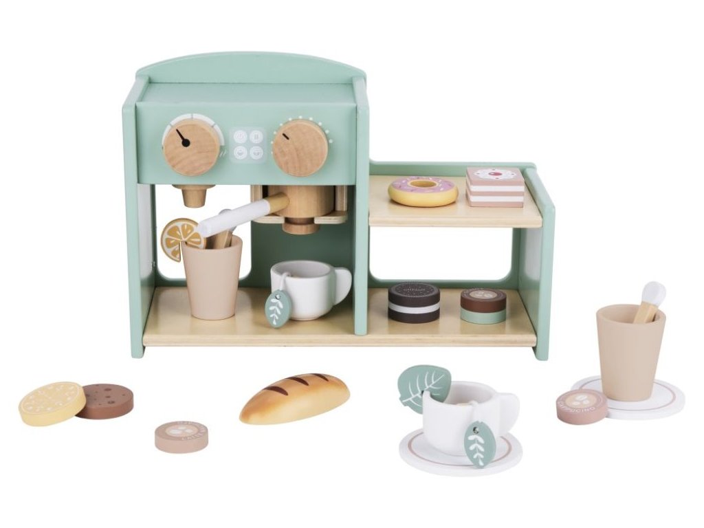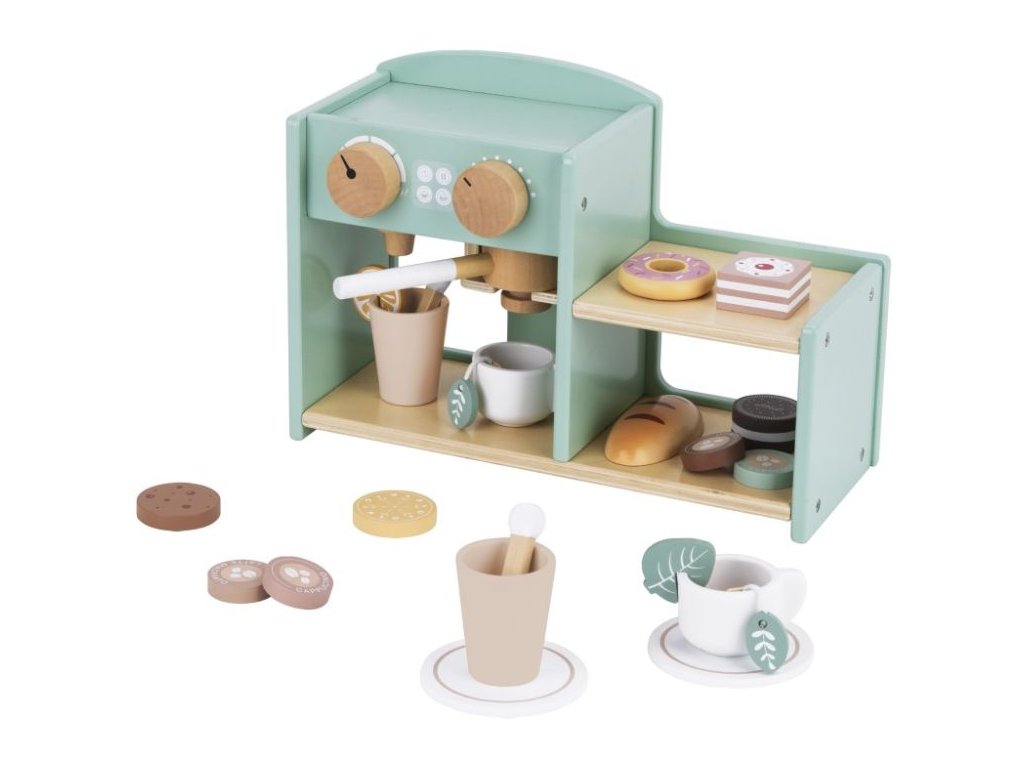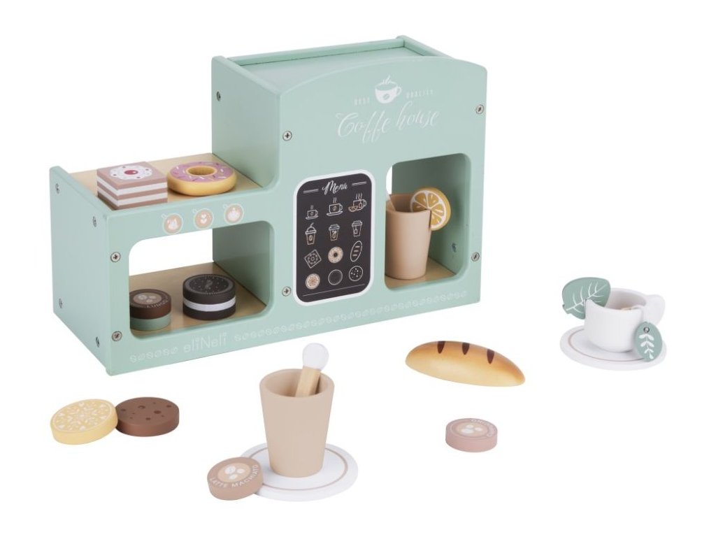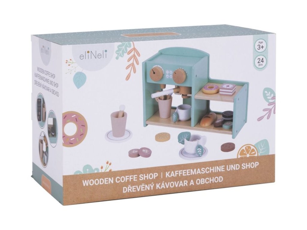 eliNeli je česká značka drevených hračiek a nábytku s jedinečným farebným dizajnom a so zahraničnou výrobou. Produkty eliNeli rozvíjajú kreativitu a pohybový potenciál detí, skvele zapadnú do interiéru a vracajú sa k tradičnému materiálu — k drevu. Unikátna na značke je dizajnová kombinácia prírodných a neskorých letných až jesenných farieb, ktoré sa hodia do minimalistického scandi interiéru, a ktoré inde nenájdete. To všetko za veľmi dostupné ceny. Parádna drevená hračka 2v1 - kávovar s obchodíkom ponúka množstvo možností na hranie. Kávovar s bohatým príslušenstvom umožní deťom aj ich kamarátom hrať role, budovať sociálne väzby, rozvíjať kreativitu, zdokonaľovať motorické schopnosti, manuálnu zručnosť, koordináciu očí a rúk a pri tom si užiť množstvo zábavy. Prečo kúpiť tento detský kávovar: Hračka 2v1 - kávovar a obchod v jednej hračke. Drevený - veľký kávovar je vyrobený z kvalitného prírodného dreva. Krásne farby a dizajn - jemné pastelové farby a moderný dizajn dodávajú drevenej hračke lákavý vzhľad. Neutrálne farebné prevedenie - vďaka jemnej svetlo modrej farbe v kombinácii s prírodným drevom je drevený kávovar s obchodíkom vhodný pre dievčatká aj chlapcov. Príslušenstvo - celá sada kávovaru s príslušenstvom sa skladá z 24 ks. Rozvíja jemnú motoriku, kreativitu, zdokonaľuje koordináciu očí a rúk, manuálnu zručnosť, deti hrajú role, budujú sociálne väzby. Hračka bezpečná pre deti - vyrobená z prírodných materiálov, natretá bezpečnými, netoxickými, vodou riediteľnými farbami. Technické parametre: Obsah balenia: Kávovar a obchod, príslušenstvo viď galéria obrázkov. Rozmery: 31,7 x 12,6 x 21 cm. Materiál: Preglejka, MDF, jalovcové drevo. Certifikáty: CE, 2009/48/ES, EN 71-1, EN 71-2 a EN 71-3. Odporúčaný vek: od 3 rokov. Upozornenie: Kávovar aj jeho príslušenstvo sú drevené hračky, nejedná sa o potraviny určené na konzumáciu. Viac o produktoch eliNeli nájdete na: https://www.elineli.eu/sk/. Často kladené otázky: Je hračka bezpečná pre deti? Kávovar eliNeli je testovaný, vhodný a bezpečný pre deti a vydrží vašim deťom dlho. Spĺňa požiadavky smernice o bezpečnosti hračiek 2009/48/ES a normy o nezávadnosti a bezpečnosti hračiek EN 71-1, 2, 3, kedy sa testujú mechanické a fyzikálne vlastnosti, horľavosť aj migrácia určitých látok. Detský kávovar a obchod otestoval a Certifikát o zhode (Osvedčenie o zhode - CE) udelil technický a skúšobný ústav. U dreveného kávovaru pre deti eliNeli máte istotu, že je hračka pre vaše deti vhodná a bezpečná, je testovaná, na náter sú použité netoxické, zdravotne nezávadné laky a farby.Dodatočné parametre