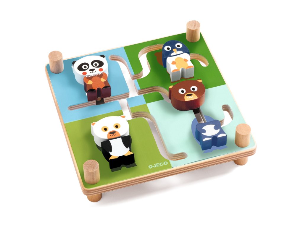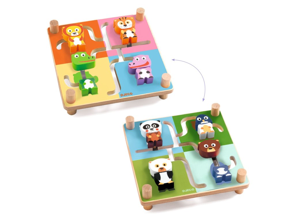 Drevený labyrint Spinamix Posuň, otoč, poskladaj: obojstranný labyrint so zvieratkamiDrevený labyrint Spinamix je drevený posuvný labyrint. Dieťa skladá zvieratká z dvoch častí – keď dokončí jednu stranu, otočí dosku a na druhej strane čakajú ďalšie výzvy.Rýchly prehľad odporúčaný vek: od 3 rokov téma: posuvný labyrint – skladanie zvieratiek z dvoch častí, obojstranne rozvíja: sústredenie, priestorové vnímanie, logiku a jemnú motorikuPrečo si ho deti zamilujú obojstranné spracovanie – viac zvieratiek a dlhšia zábava posuvné dieliky trénujú logiku a priestorové vnímanie jednoduché pravidlo: spoj dve časti zvieratka na správnom mieste pevné drevené prevedenie vhodné na časté hranieAko sa hrá Posúvajte dieliky v labyrinte tak, aby sa spojili dve časti rovnakého zvieratka. Sledujte farebné siluety, ktoré pomáhajú s umiestnením. Po dokončení otočte labyrint a skúste ďalšie zvieratká na druhej strane.Obsah balenia 1× drevený obojstranný labyrint so posuvnými dielikmiTechnické parametre materiál: drevo (FSC®) rozmer balenia: cca 23 × 23 × 4 cmDodatočné parametre
