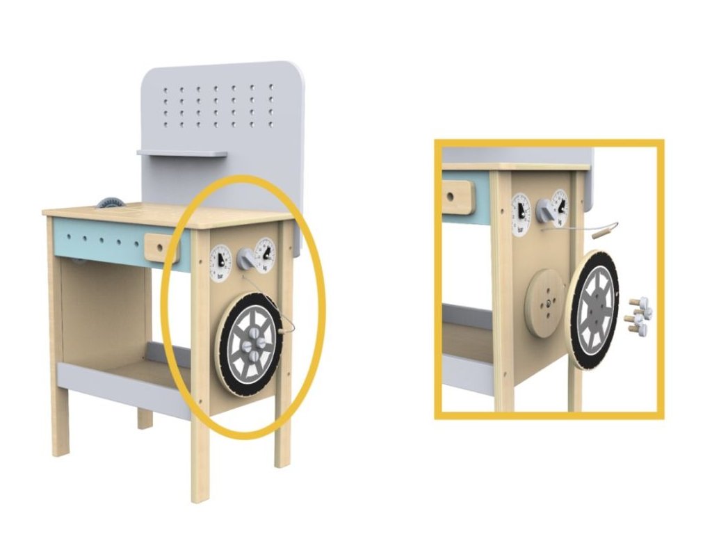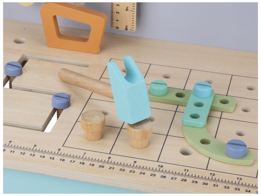 eliNeli je česká značka drevených hračiek a nábytku s jedinečným farebným dizajnom a so zahraničnou výrobou. Produkty eliNeli rozvíjajú kreativitu a pohybový potenciál detí, skvele zapadnú do interiéru a vracajú sa k tradičnému materiálu — k drevu. Unikátna na značke je dizajnová kombinácia prírodných a neskorých letných až jesenných farieb, ktoré sa hodia do minimalistického scandi interiéru, a ktoré inde nenájdete. To všetko za veľmi dostupné ceny. Detský drevený ponk v jemných pastelových farbách nadchne deti aj dospelých svojim nadštandardným vybavením. Mimo klasického majstrovského náradia je jeho súčasťou aj kotúčová píla, zverák a dokonca kompresor. Bohaté príslušenstvo a rôzne vychytávky sú zárukou zábavné hry na majstra, ktorá u deti zdokonalí ich schopnosti a naučí ich novým. Prečo vybrať tento ponk pre deti: Vyrobené z prírodného dreva. Ponk s bohatým príslušenstvom - celkom 73 ks. Samozrejmosťou sú zaoblené hrany, pre bezpečnú detskú hru. Neutrálne farby v kombinácii s prírodným drevom sú vhodné pre dievčatká aj chlapcov. Edukatívna hračka, rozvíja detské schopnosti, manuálnu zručnosť, predstavivosť, umožňuje deťom tráviť viac času s rodičmi. Súčasťou dielne je množstvo náradia, kotúčová píla, zverák, kompresor a množstvo vychytávok. Kompresor - tento zábavný doplnok umožní deťom vžiť sa do úlohy automechanika, nasadiť koleso na ponk, hrať sa na to, že koleso dofukuje a opäť koleso z ponku zložiť. Vďaka praktickým poličkám na uloženie náradia je upratovanie detskej dielne jednoduché a rýchle. Vyvŕtané otvory do ktorých deti môžu zaskrutkovať skrutky aj pripevniť náradie. Vďaka predvŕtaným otvorom pre skrutky je možné variabilné usporiadanie ozubených koliesok, náradia aj praktickej poličky na skrutky a matky. Technické parametre: Balenie obsahuje: celkom 73 ks - pracovný stôl (ponk), príslušenstvo viď galéria obrázkov. Rozmery: cca 80 x 44 x 31 cm (výška x šírka x hĺbka), výška pracovnej plochy je 50 cm. Materiál: preglejka, MDF, jalovcové drevo. Certifikáty: CE, 2009/48/ES, EN 71-1, EN 71-2 a EN 71-3. Odporúčaný vek: od 3 rokov. Viac o produktoch eliNeli nájdete na: https://www.elineli.eu/sk/. Pozrite si drevený ponk pre deti s kompresorom a vychytávkami: Často kladené otázky: Je hračka bezpečná pre deti? Hračka Drevený ponk s kompresorom eliNeli je testovaná, vhodná a bezpečná pre deti a vydrží vašim deťom dlho. Spĺňa požiadavky smernice o bezpečnosti hračiek 2009/48/ES a normy o nezávadnosti a bezpečnosti hračiek EN 71-1, 2, 3, kedy sa testujú mechanické a fyzikálne vlastnosti, horľavosť aj migrácia určitých látok. Ponk otestoval a Certifikát o zhode (Osvedčenie o zhode - CE) udelil technický a skúšobný ústav. U dreveného ponku s kompresorom eliNeli máte istotu, že je hračka pre vaše deti vhodná a bezpečná, je testovaná, na náter sú použité netoxické, zdravotne nezávadné laky a farby.Dodatočné parametre