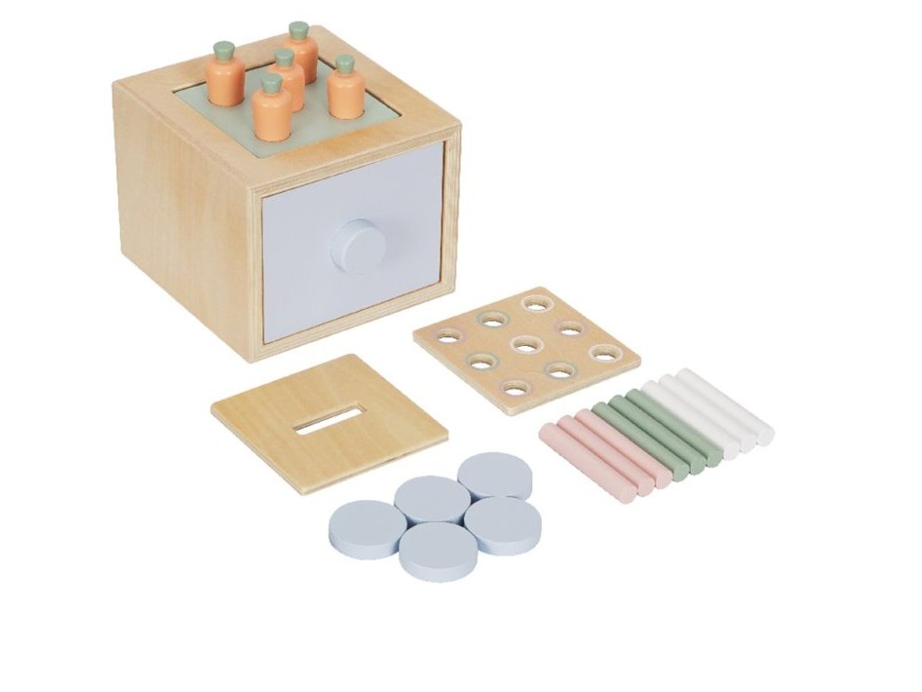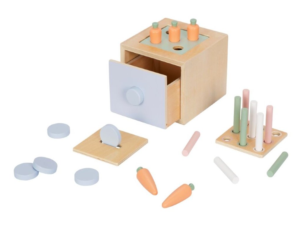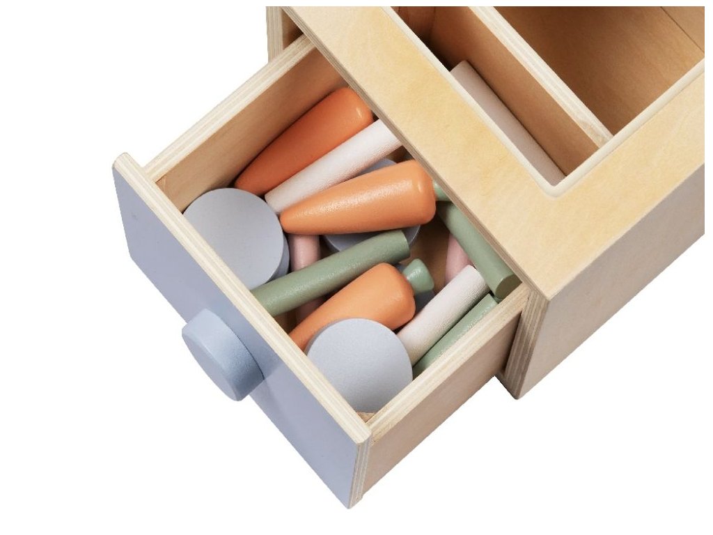 eliNeli je česká značka drevených hračiek a nábytku s jedinečným farebným dizajnom a so zahraničnou výrobou. Produkty eliNeli rozvíjajú kreativitu a pohybový potenciál detí, skvele zapadnú do interiéru a vracajú sa k tradičnému materiálu — k drevu. Unikátna na značke je dizajnová kombinácia prírodných a neskorých letných až jesenných farieb, ktoré sa hodia do minimalistického scandi interiéru, a ktoré inde nenájdete. To všetko za veľmi dostupné ceny. Montessori hračka v podobe multifunkčnej debničky (boxu) si pre deti pripravila nejedno prekvapenie. Táto vzdelávacia hračka so šuplíkom a s 3 vymeniteľnými doštičkami je vlastne hračkou 3v1. Stačí vymeniť hornú doštičku na drevenom edukačnom boxe a na deti čaká nová hračka, nové dobrodružstvo, nová zábava a nové zdokonaľovanie schopností. Drevený box so šuplíkom môže byť pokladničkou aj originálnou vkladačkou s mrkvičkami alebo farebnými valčekmi. Hra s edukačnou hračkou (boxom, debničkou) 3v1 prináša deťom zábavu, trénuje motorické schopnosti, koordináciu očí a rúk, logické myslenie, kritické myslenie, deti sa učia riešiť problémy, spoznávať farbičky a tvary. Túto multifunkčnú kocku (box) nájdete aj v Sade náučných hračiek pre deti od 1 roka (13–18 mesiacov) - edukatívnom boxe. Prečo vybrať túto edukačnú hračku: Kvalitná výroba - hračka je vyrobená z prírodných materiálov, z dreva. Hračka aj vzdelávacia pomôcka - edukačný box je hračkou aj vzdelávacou pomôckou. Multifunkčný (3v1) - 3 hračky v jednej - vkladačka s mrkvičkami, vkladačka s valčekmi, pokladnička. Pastelové farby - krásne pastelové farby v kombinácii s prírodným drevom dodávajú hračke lákavý vzhľad. Vkladačka s valčekmi - farebné valčeky a hracia doštička s farebne označenými otvormi je vzdelávacou hrou, ktorá zdokonaľuje detské schopnosti a učí deti farbičky. Vkladačka s mrkvičkami - vkladačka s mrkvičkami sa u detí teší veľkej obľube. Farebné valčeky jednoducho vystrieda obľúbená zelenina. Pokladnička - doštička s otvorom na vhadzovanie mincí umožní deťom vhadzovať do otvoru modré kolieska predstavujúce peniažky. Malý šuplík - vďaka praktickému šuplíku deti jednoducho z kocky vyjmú obsah, ktorý do nej nahádzali - farebné valčeky, modré kolieska. Hra tak nikdy nekončí. Zdokonaľuje a rozvíja - prirodzeným spôsobom, pomocou hry, deti rozvíjajú svoje motorické schopnosti, koordináciu očí a rúk, logické myslenie, kritické myslenie, deti sa učia riešiť problémy, spoznávať farbičky a tvary. Jednoduchá manipulovateľnosť - interaktívnu hračku si deti samé prenesú tam, kde sa chcú hrať. Bezpečná hračka pre deti - všetky hrany sú zaoblené a dohladka obrúsené. Na náter sa používajú vodou riediteľné farby, vhodné a bezpečné pre deti. Technické parametre: Počet dielov v balení: 24 ks. Rozmery: 12,5 x 14,4 x 12 cm. Materiál: jalovcové drevo, preglejka, MDF. Certifikáty: CE, 2009/48/ES, EN 71-1, EN 71-2 a EN 71-3. Odporúčaný vek: od 1 roka, 12m+. Upozornenie: Balenie obsahuje celkom 24 dielikov (1 box, 1 šuplík, 3 výmenné doštičky, 9 farebných valčekov, 5 žetónov, 5 mrkvičiek), nie 26, ako je uvedené na balení. Rodičovský ťahák na chytré hranie a inšpiráciu z montessori pedagogiky nájdete na webe eliPlay: https://play.elineli.eu/sk/. Viac o produktoch eliNeli nájdete na: https://www.elineli.eu/sk/. Často kladené otázky: Je hračka bezpečná pre deti? Edukačná hračka (box) 3v1 eliNeli je testovaná, vhodná a bezpečná pre deti a vydrží vašim deťom dlho. Spĺňa požiadavky smernice o bezpečnosti hračiek 2009/48/ES a normy o nezávadnosti a bezpečnosti hračiek EN 71-1, 2, 3, kedy sa testujú mechanické a fyzikálne vlastnosti, horľavosť aj migrácia určitých látok. Edukačný box otestoval a Certifikát o zhode (Osvedčenie o zhode - CE) udelil technický a skúšobný ústav. U edukačnej hračky eliNeli máte istotu, že je pre vaše deti vhodná a bezpečná, je testovaná, na náter sú použité netoxické, zdravotne nezávadné laky a farby.