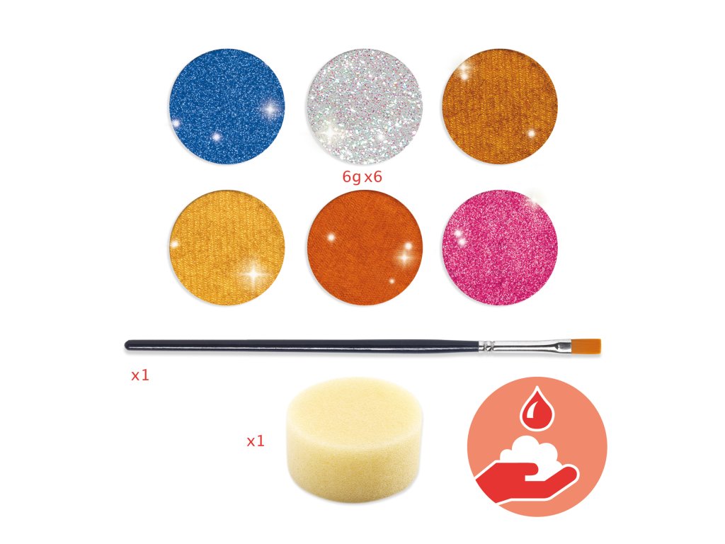 Farby na tvár: metalické farbyMetalické farby na tvár pre deti – hravé efekty pre karneval, oslavy a tvorivú zábavuMetalické farby na tvár sú zábavná a kreatívna sada určená pre deti, ktoré milujú farebnú premenu! S týmito lesklými metalickými farbami si môžu deti maľovať na tvár krásne vzory, motívy, či karnevalové dizajny plné trblietavých efektov. Farby sú ideálne na rôzne príležitosti – karnevaly, oslavy, fotenie, divadelné hry alebo jednoducho ako tvorivá rodinná zábava. Farby sa ľahko nanášajú pomocou štetca alebo prstov, rýchlo schnú a vytvárajú jemný metalický efekt, ktorý je viditeľný aj pri svetle. Po hre sa jednoducho zmyjú teplou vodou a mydlom.Pre koho je sada vhodnáDeti na karnevaly, oslavy, školské predstaveniaKreatívne rodinné aktivityVhodné pre deti od 3 rokovObsah baleniaSada farieb na tvár v rôznych odtieňochŠtetec na jednoduché nanášanie fariebVýhody metalických farieb na tvárBohato pigmentované metalické odtiene (perleťová oranžová, modrá, ružová, bronzová, zlatá, strieborná)Ľahké nanášanie pre deti aj rodičovVysoký lesk a efekt trblietavých tónovJednoducho sa zmyjú vodou a mydlomVhodné pre rôzne udalosti a oslavyDodatočné parametre