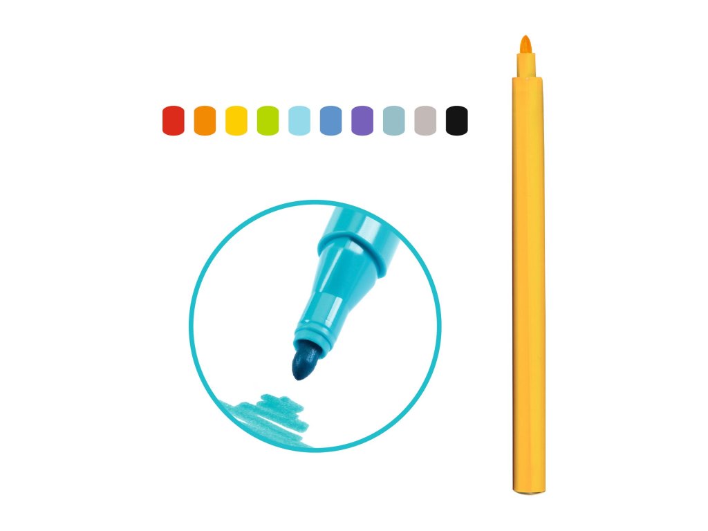 Fixky: Dúhové farby 10 ks Fixky – Dúhové farby 10 ksFarebné kreslenie s jasnými intenzívnymi farbamiFixky: Dúhové farby je sada 10 farebných fixiek určených pre deti na kreslenie, vyfarbovanie a tvorbu ilustrácií. Fixky majú tenký hrot, ktorý umožňuje precízne čiary a detaily, a farebné odtiene sa dajú ľahko kombinovať podľa vlastnej fantázie.Fixky sú navrhnuté tak, aby sa dobre držali v detskej ruke a ich ergonómia pomáha pri dlhšej tvorbe bez únavy. Intenzívna pigmentácia farieb robí kresby živé a sýte, ideálne pre rôzne výtvarné projekty doma, v škôlke či v škole.Pre koho sú vhodné: odporúčaný vek: od 6 rokovHlavné benefity 10 rôznych farieb pre tvorivé kreslenie tenký hrot pre jemné detaily aj presné línie pigmentované farby so sýtym krytím ergonomický tvar pre pohodlné držanie skvelé pre rozvoj kreativity a jemnej motorikyObsah balenia 10 fixiek v dúhových farbáchDodatočné parametre