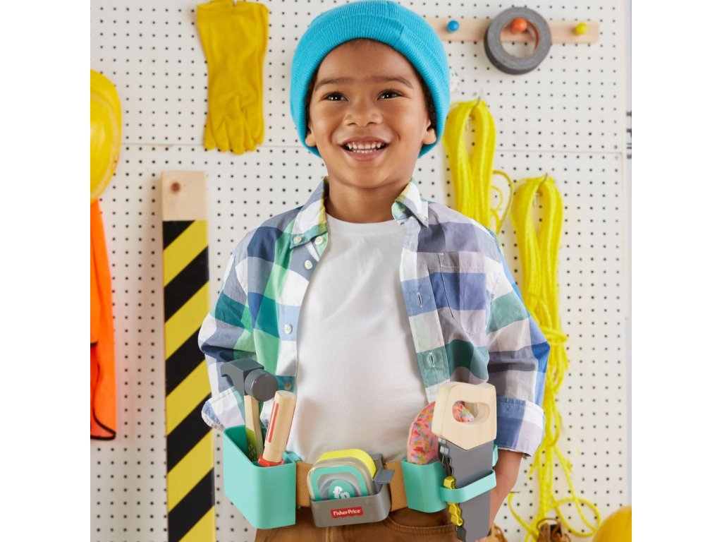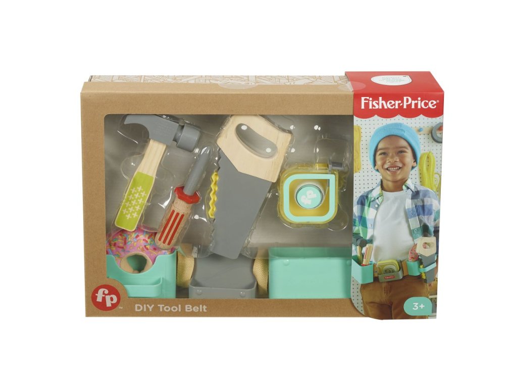 Váš malý staviteľ bude mať po dome dômyselné "opravovanie" vecí so sadou rolí na náradie Fisher-Price® DIY Tool Belt. Textilný opasok na náradie má pohodlné úložné otvory pre všetky ich nástroje, vrátane předstíracího kladivá, skrutkovača, chladné píly, ktorá vydáva zvuky pri "rezanie", a skutočne fungujúci, zaťahovací meracie pásky. Dodáva sa dokonca s látkovým šišiek, ktorý odmení vášho predškoláka za dobre odvedenú prácu. Či už si hráte v garáži alebo pracujete na projekte zlepšenie domácnosti, váš obľúbený asistent bude po vašom boku s vlastnými skvelými nástrojmi!Dodatočné parametre
