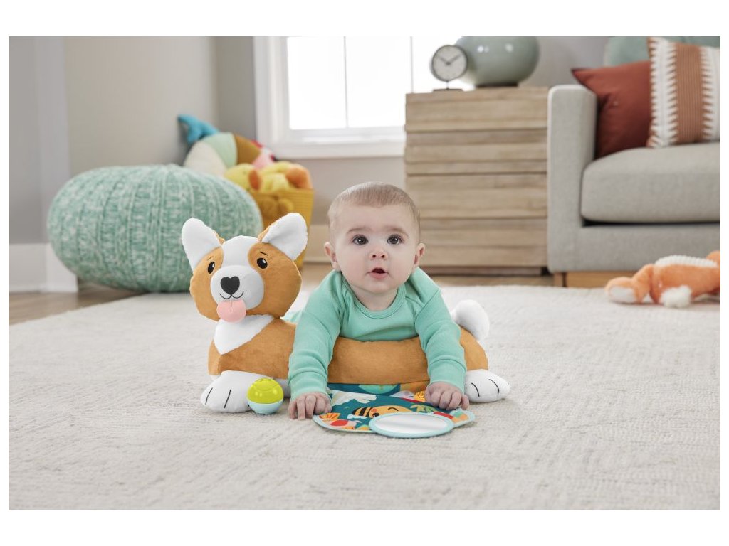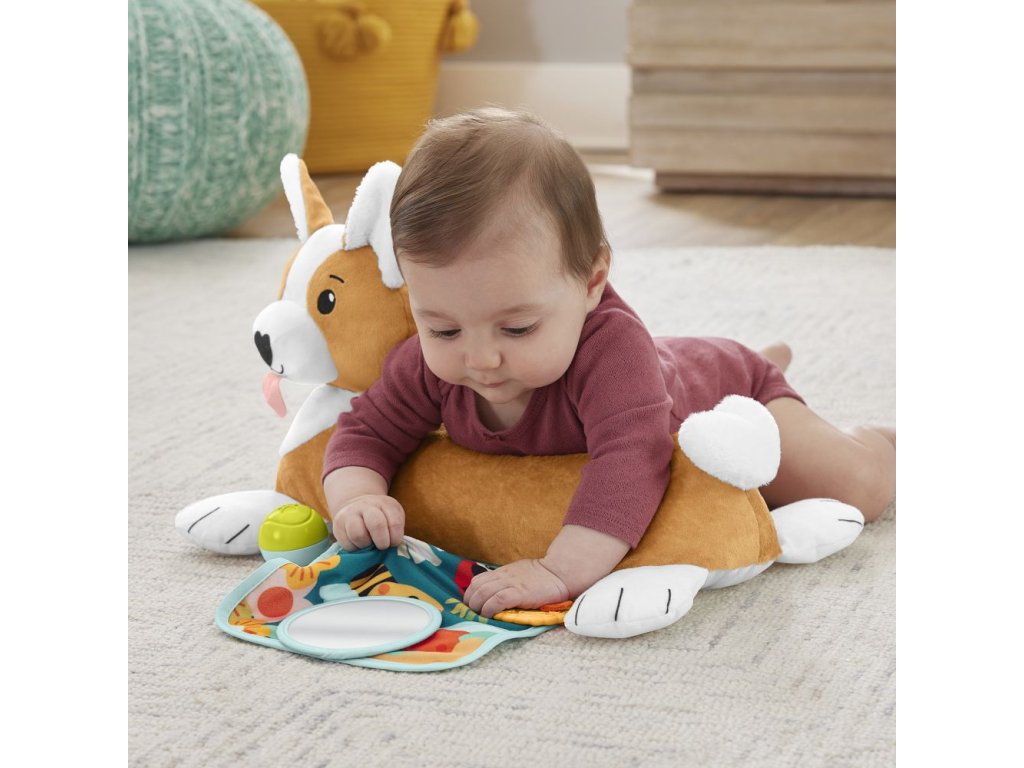 Plyšová hračka Vankúšik pod bruško psík od Fisher-Price® podporuje vaše dieťatko pri hre na brušku a rozvíja jeho fantáziu. Tri hračky vrátane hryzátka, hrkajúcej loptičky a zrkadlá pre sebapoznávanie zaistia zábavné chvíľky.Dodatočné parametre