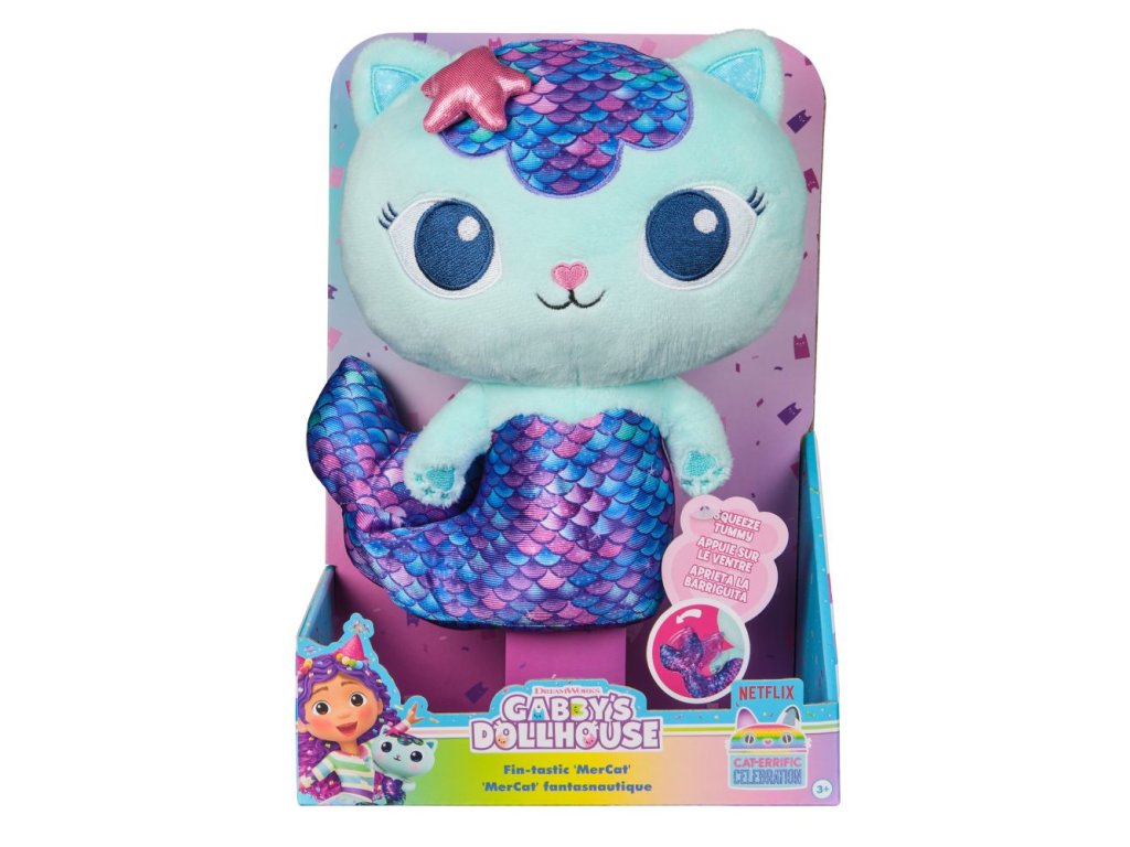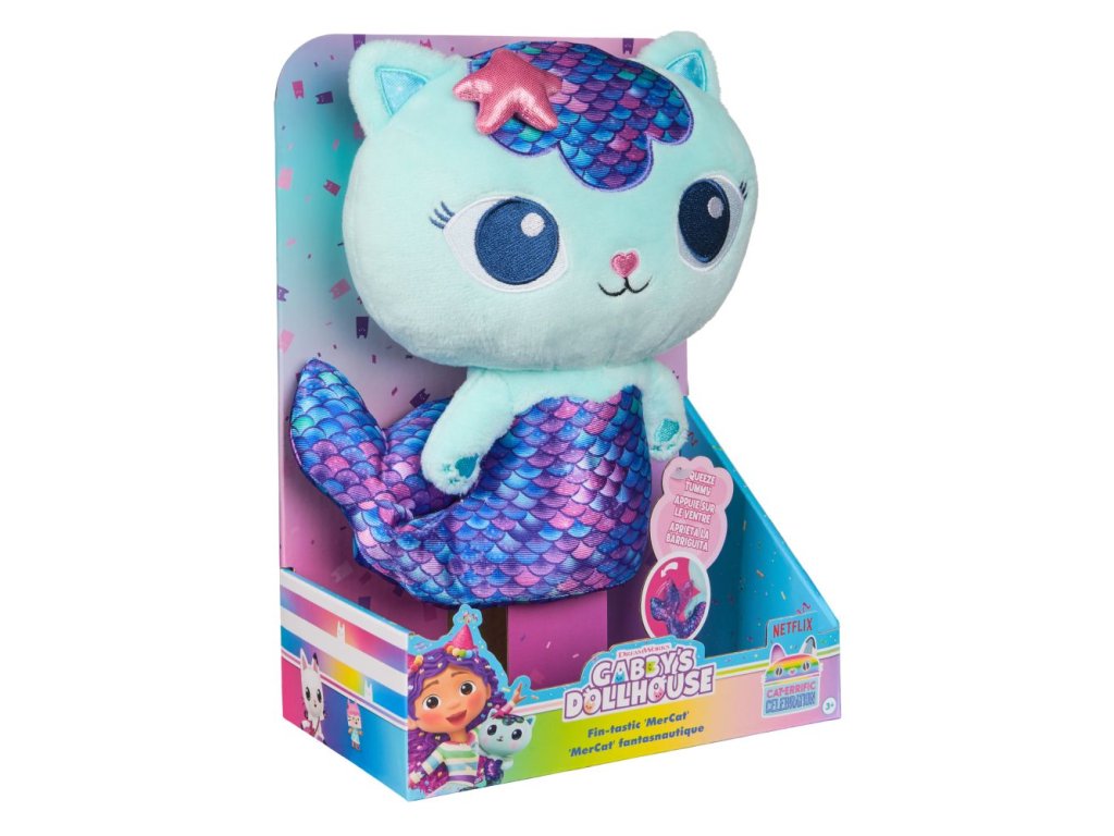Vytvorte nekonečné dobrodružstvá pri hre s Plyšovou Rybomačkou! S výškou 25 cm je mňautastická na hru na cestách alebo na pritúlenie počas spánku! Tento prémiový plyšový kamarát má aj super mäkkú kožušinku a žiarivý chvost, ktorý sa pohybuje hore a dole, keď jej stlačíte bruško, takže je vždy pripravená to roztočiť, keď je čas na párty! Aby vaše dobrodružstvá boli ešte viac perfektné, získajte fantastického plyšového kamaráta DJ-a Kocúra; jeho mávajúce ruky zaistia, že vaša zábava nikdy neskončí! Hračky zo sveta Gabininho kúzelného domčeka pre dievčatá a chlapcov sú darčeky pre deti, ktoré si radi budujú vlastné svety vo svojich domčekoch pre bábiky. Uistite sa, že váš vstup do hry s domčekom pre bábiky bude nezabudnuteľným s roztomilými figúrkami, doplnkami do domčeka pre bábiky a nábytkom do domčeka pre bábiky, ktoré môžete zbierať a upravovať! Vytvorte si svoj svet so základnými prvkami súpravy, ako sú kuchyňa alebo hudobná miestnosť a množstvom položiek na zbieranie, ako je úžasná výletná loď, bazén s motívom morskej panny a úplne nová hracia súprava Párty miestnosť – podkrovie domčeka pre bábiky s krytým skate parkom a super roztomilé balkóny na domček pre bábiky s mini antistresovými hračkami, ktoré poskytujú uspokojivú senzorickú hru a dajú sa bezproblémovo použiť s oboma verziami domčeka pre bábiky!Dodatočné parametre