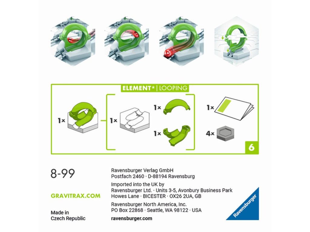 Prežeňte guľôčku Slučkou! Zapojením Slučky do štartovacej súpravy GraviTrax® bude vaša guľôčková dráha napínavejšia. Koľko energie potrebuje guľôčka k tomu, aby sa pretočila Slučkou?Dodatočné parametre