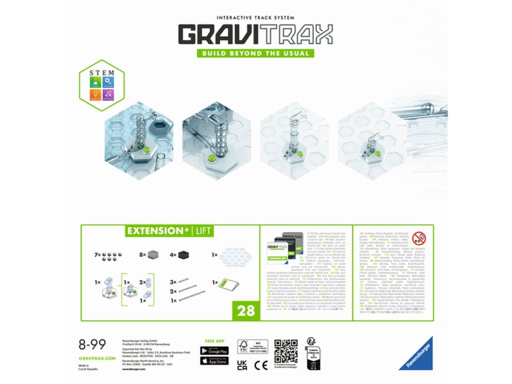 Vyvezie guľôčky naspäť hore! S touto súpravou môžete svoju guľôčkovú dráhu doslova zdvihnúť na vyššiu úroveň. Zapojte do svojej Štartovacej súpravy GraviTrax® Výťah a ďalšie stavebné diely a vaša dráha bude ešte zaujímavejšia. Koľko guľôčok dopravíte výťahom naspäť hore?Dodatočné parametre