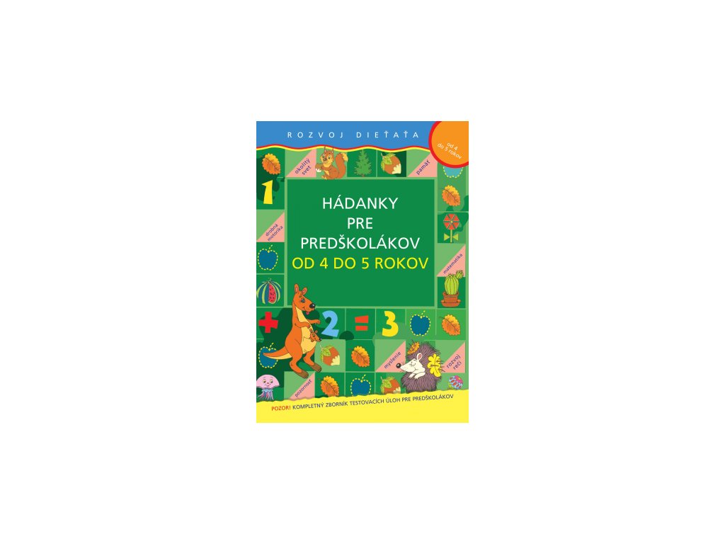 Hádanky pre predškolákov od 4 do 5 rokov Najkompletnejší zborník testovacích úloch ,ktorý pripravili profesionálni pedagogickí pracovníci a psychológovia. Prostredníctvom týchto testov ľahko zistíte úroveň rozvoja svojho dieťaťa.V tejto knihe na vás čakajú i doplňujúce úlohy, ktoré pomôžu vášmu dieťatu zdokonaliť svoje schopnosti.Dodatočné parametre