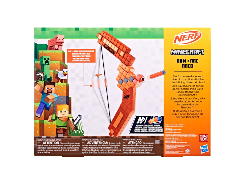 Jedinečný blaster v podobe luku Nerf inšpirovaný hrou Minecraft. Detský blaster Nerf Minecraft luk vyzýva k neúprosnému súboju a skvelej zábave. Nerf Minecraft luk čerpá inšpiráciu z luku v populárnej hre. Zažite ďalekonosnú streľbu z luku v hre v reálnom živote, keď natiahnete tetivu späť a uvoľníte ju, aby šípka letela. Nerf Minecraft luk obsahuje osem oficiálnych šípok Nerf N1, ktoré sú navrhnuté pre extrémnu presnosť, rýchlosť a vzdialenosť. Je skvelou voľbou pre akčné deti a fanúšikov Minecraftu. Vyrobené z kvalitného plastu. Pri hraní sa odporúča použiť bezpečnostné detské okuliare (nie sú súčasťou balenia). Rozmer balenia: 33,7 x 45,7 x 4,4 cm. Vek: 8+Dodatočné parametre
