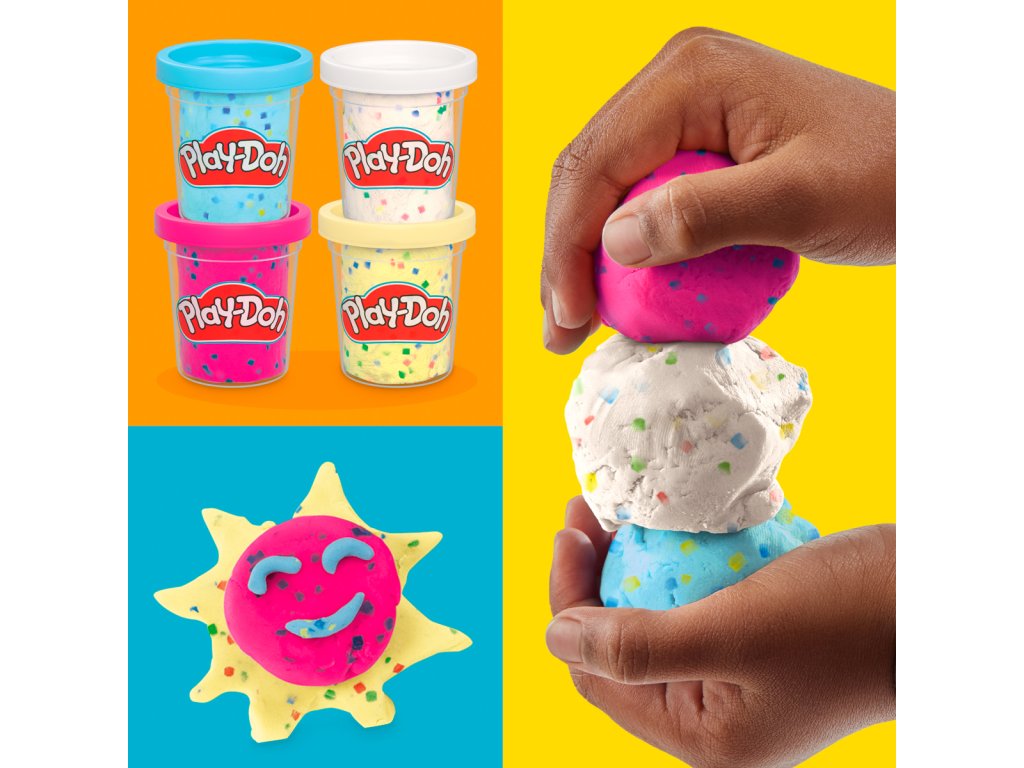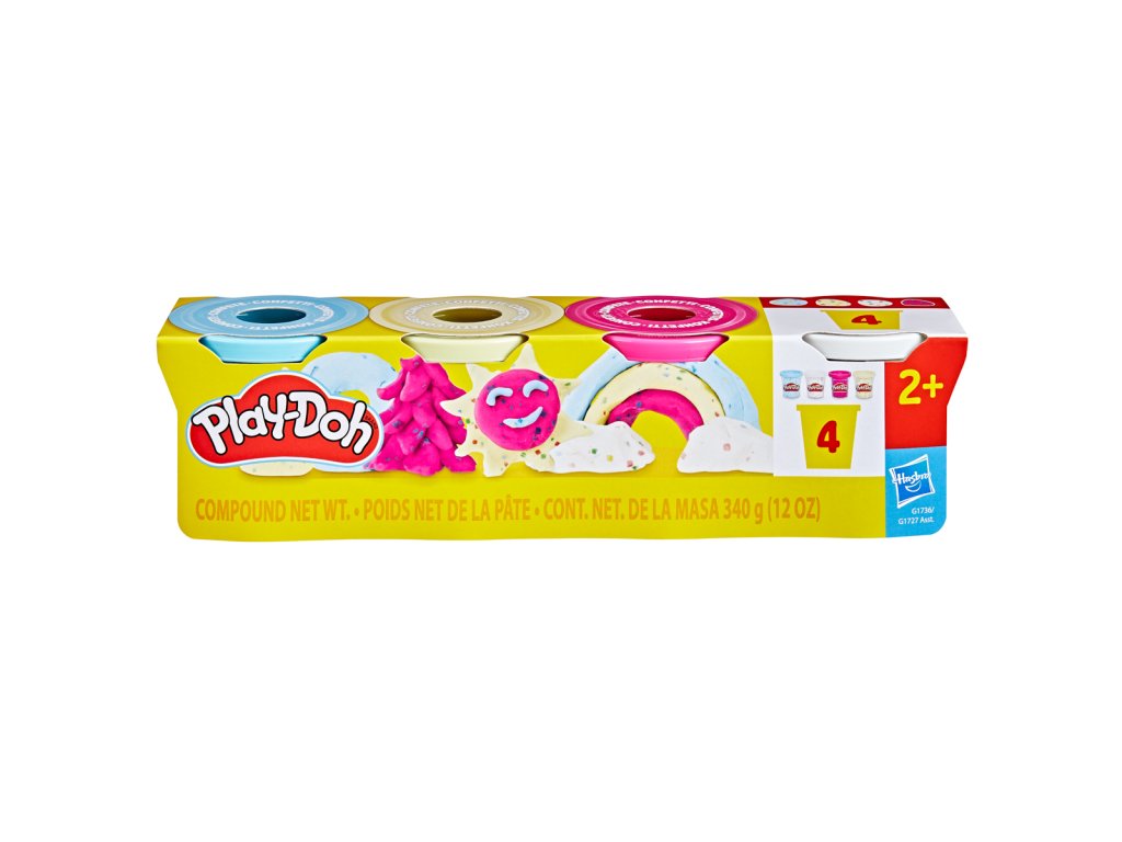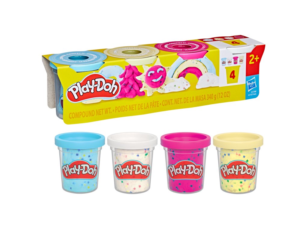 Doplňte svoju zbierku kelímkov Play-Doh farebnou sadou s konfetami a vytvárajte najrôznejšie stavby podľa ľubovôle. Pamätajte, že jediným obmedzením je vaša predstavivosť. Play-Doh s konfetami je perfektnou voľbou pre kreatívne deti, ktoré chcú svojim výtvorom dodávať slávnostný nádych. Sada Play-Doh obsahuje 4 farby. Vďaka žiarivým farbám – modrej, žltej, bielej a ružovej – inšpiruje k nápaditým majstrovským dielam. Každý kelímok obsahuje 85 g modelovacej hmoty Play-Doh, preloženej farebnými papierovými konfetami pre očarujúci zážitok s bohatou textúrou. Jedno balenie obsahuje 340 g plastelíny. Rozmery balenia: 6,7 x 25,4 x 6,4 cm. Vek: 2+Dodatočné parametre