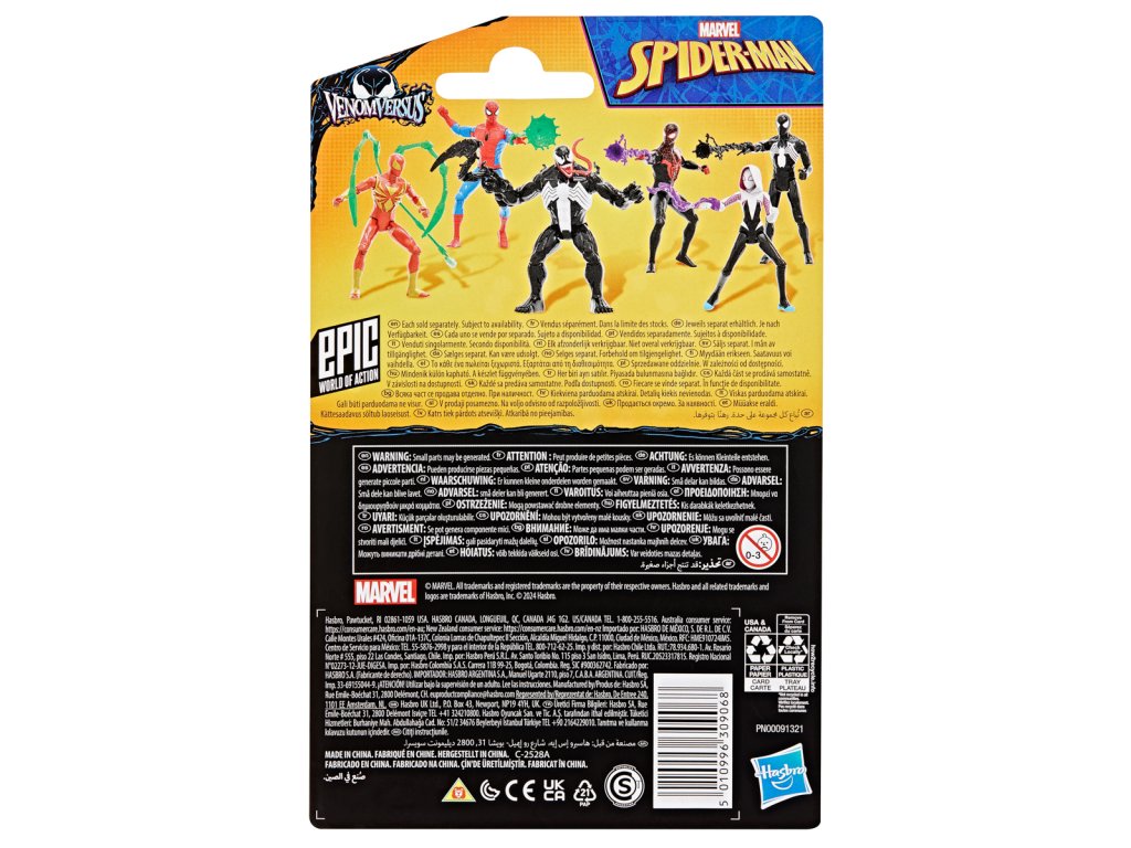 Fanúšikovia sveta Marvel, túto skvelú 10 cm vysokú figúrku Spider-Man v symbiote oblečení si zamilujete. Vďaka dôkladným detailom je figúrka Spider-Man z kolekcie Venom Versus tiež skvelým zberateľským kúskom. Skvelý tip na darček pre fanúšikov všetkých vekových kategórií. Figúrka má pohyblivé kĺbové končatiny a hlavu. Táto zberateľská akčná figúrka Marvel Spider-Man Symbiote Suit je súčasťou exkluzívnej série Epic World of Action od Hasbro a vyznačuje sa charakteristickým čierno-bielym dizajnom. Figúrky VenomVersus obsahujú aj špecifický doplnok Venomized pre dobrodružstvá poháňané symbiótmi. Vyrobené z kvalitného plastu. Balené v blistri. Rozmery balenia: 20,32 x 12,7 x 3,17 cm. Vek: 4+Dodatočné parametre